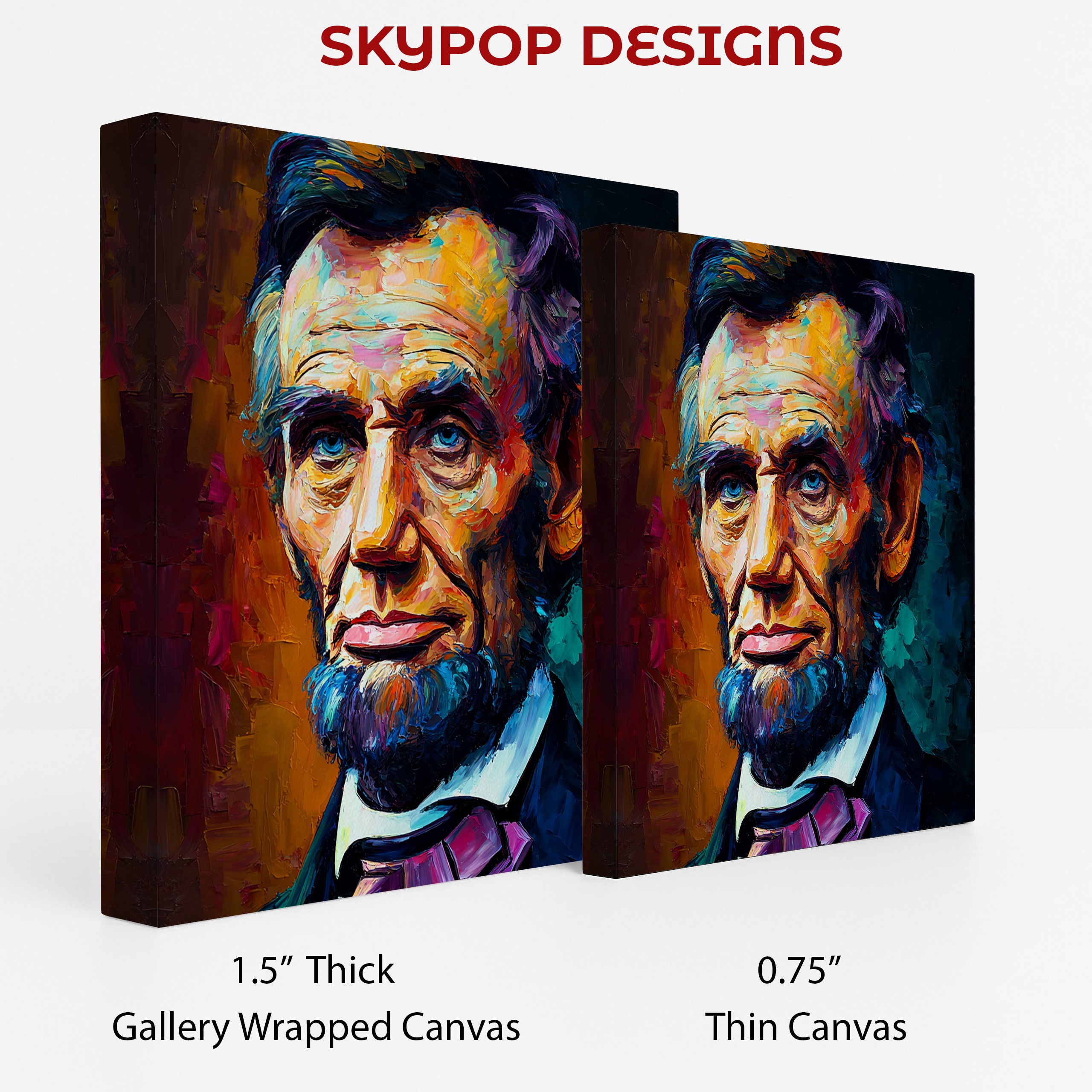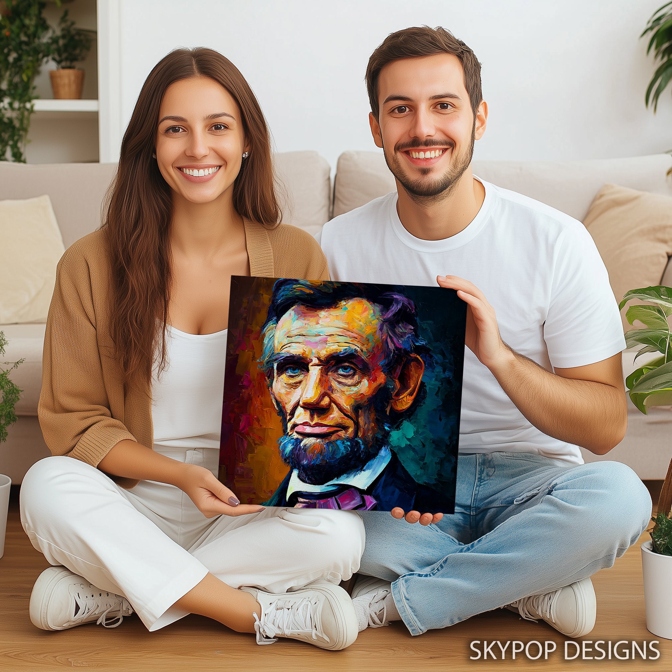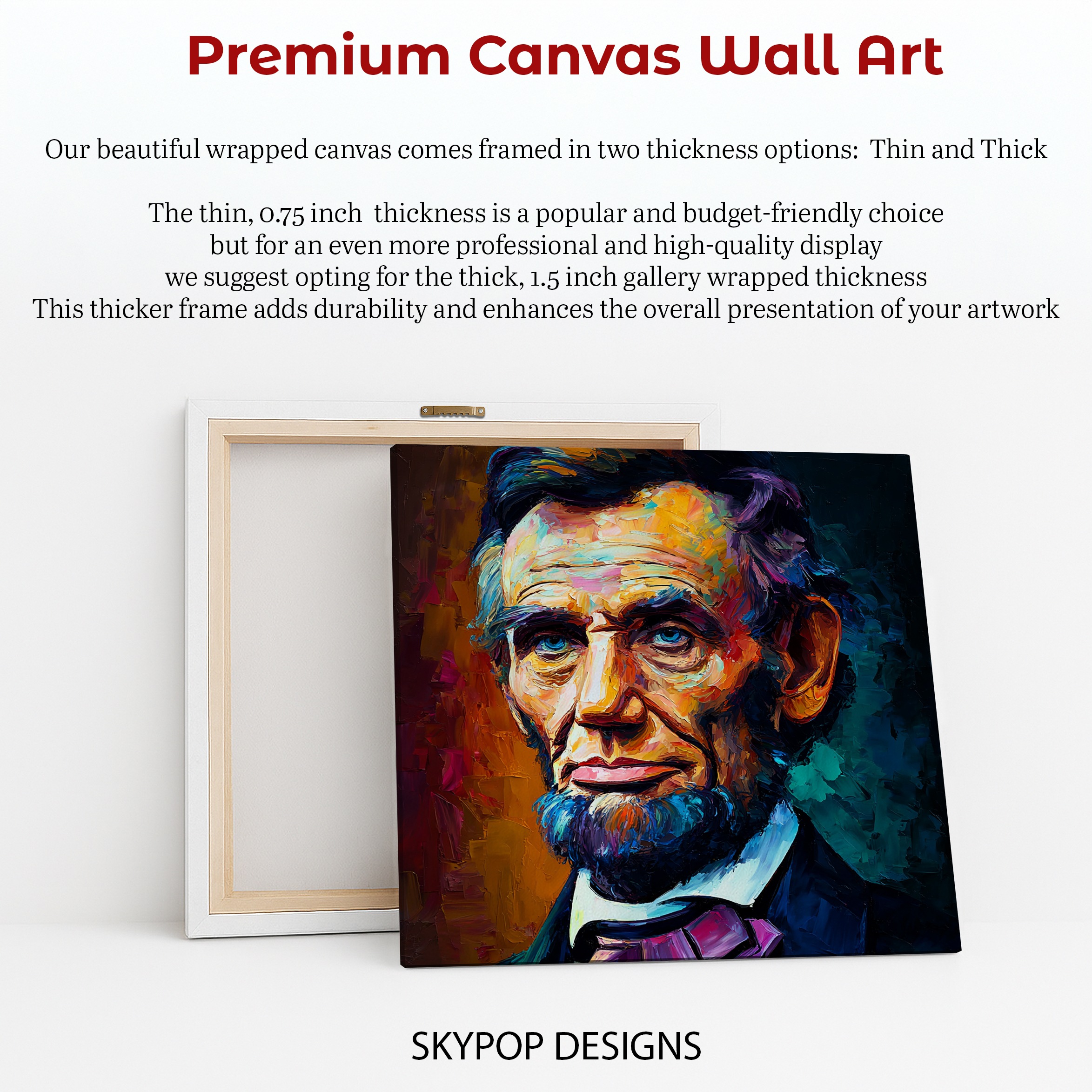 Keywords: Abraham Lincoln Wall Art, Lincoln Poster, Canvas Wall Art, Multicolor Art, Blue Art, Orange Art, Black Art, Living Room Decor, Office Decor, Library Decor, Study Room Decor, Contemporary Art, Modern Decor, Traditional Decor, Classic Art, Figurative Art, Pop Art, Historical Art, American History, Patriotic Decor, Leadership Art, Art Lover Gift, History Buff Gift, Birthday Gift, Housewarming Gift, Bold Portrait, Expressive Art, Vibrant Wall Art, Statement Piece, Iconic Figure