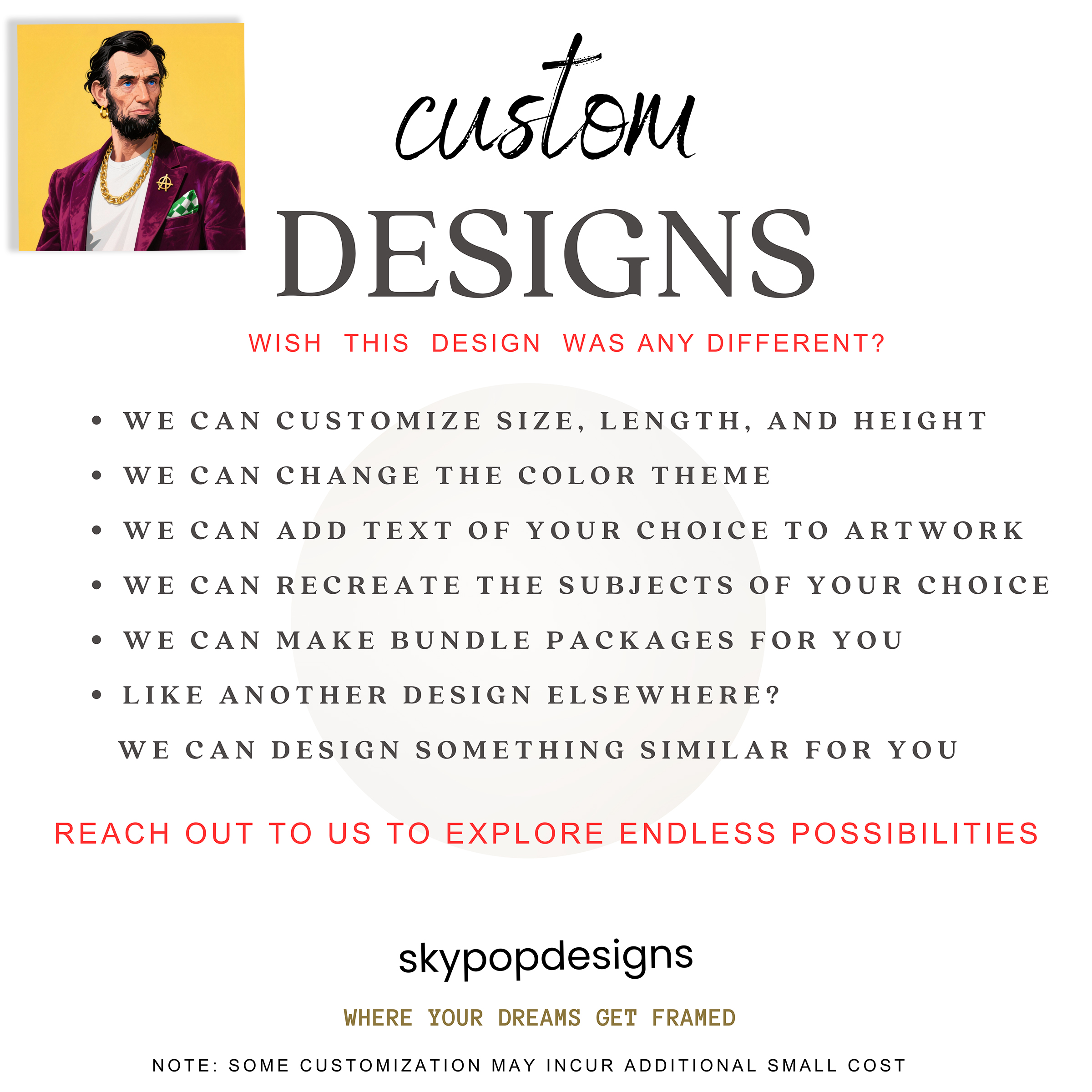 At SKYPOPDESIGNS, we specialize in high-quality canvas and poster prints designed to bring sophistication and style to your space. Please note that our designs are not created with 3D textures or as original oil, acrylic, or watercolor paintings; they are instead HD reproductions of original artwork. This approach allows us to offer these visually stunning pieces at competitive prices, ensuring you receive top-tier, maintenance-free art that’s easy to enjoy.