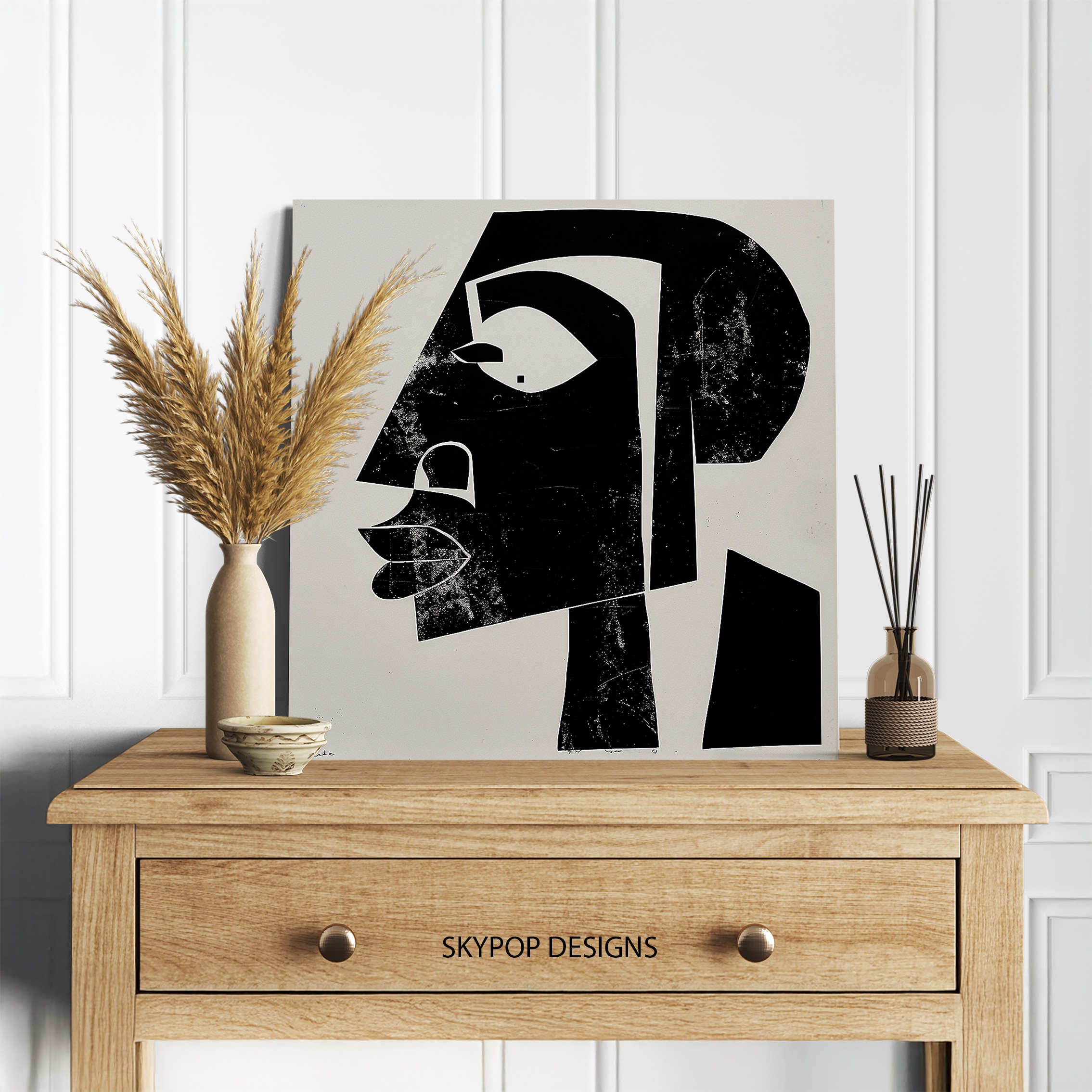 Transform your space with this striking abstract face canvas wall art, perfect for modern and minimalist interiors. This bold black and white poster features a stylized profile that combines geometric shapes to create a captivating portrait. The high-contrast design makes a powerful statement, ideal for contemporary living rooms or sleek office spaces. This unique wall art piece showcases clean lines and negative space, embodying the essence of minimalist design while adding depth and intrigue to any room. The abstract interpretation of facial features invites contemplation and sparks conversation, making it a perfect focal point for Scandinavian-inspired decor. Whether displayed as a standalone piece or as part of a gallery wall, this canvas art elevates your space with its sophisticated simplicity. The versatile black and white palette complements any color scheme, allowing it to seamlessly integrate into various interior styles. Perfect as a housewarming gift or to refresh your own decor, this abstract face art adds a touch of artistic flair to bedrooms, hallways, or living areas. The high-quality print captures every subtle texture and line, ensuring a premium look that stands the test of time. Embrace modern aesthetics and make a bold design statement with this eye-catching abstract face wall art today.