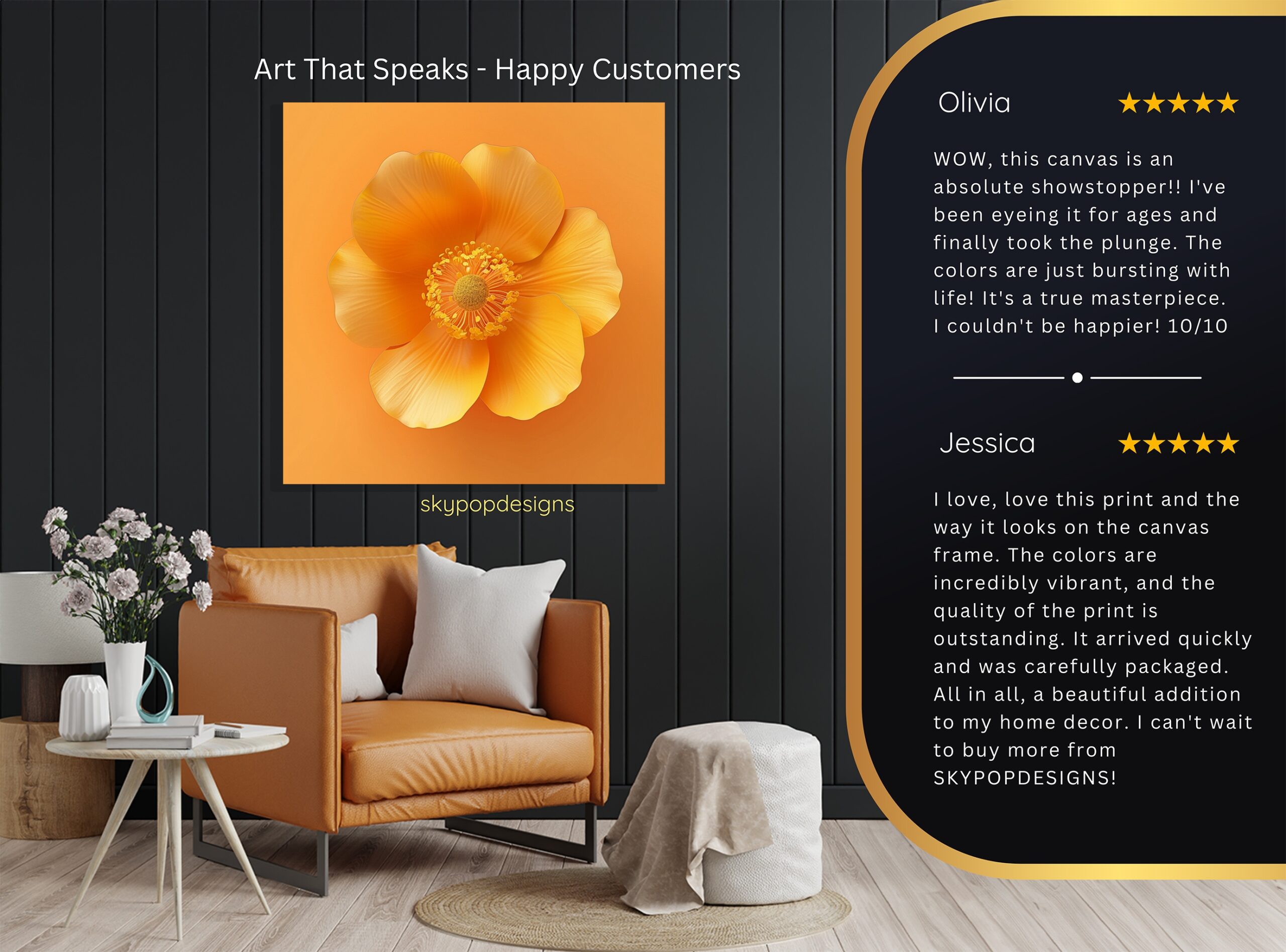 At SKYPOPDESIGNS, we specialize in high-quality canvas and poster prints designed to bring sophistication and style to your space. Please note that our designs are not created with 3D textures or as original oil, acrylic, or watercolor paintings; they are instead HD reproductions of original artwork. This approach allows us to offer these visually stunning pieces at competitive prices, ensuring you receive top-tier, maintenance-free art that’s easy to enjoy.