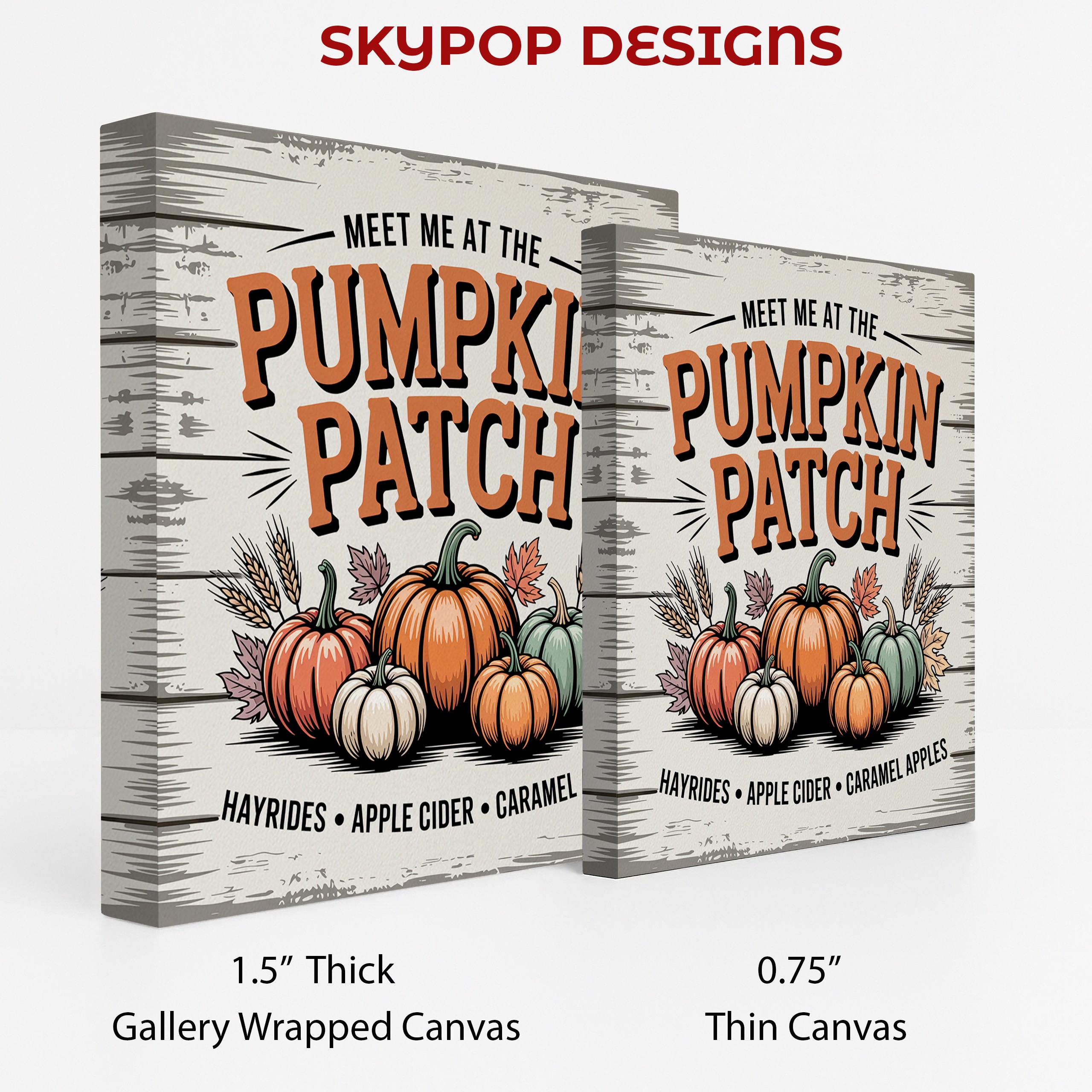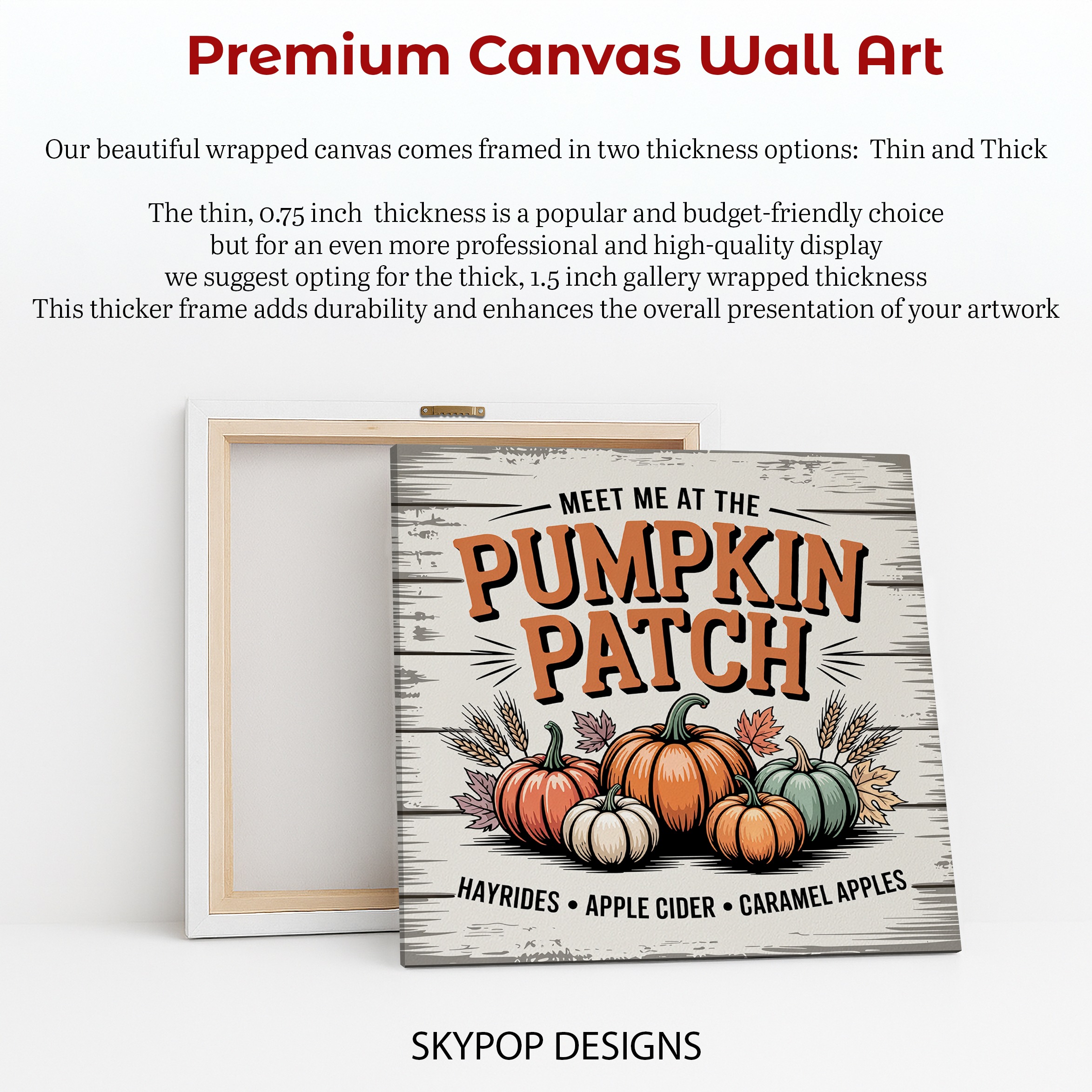 Bring the cozy charm of fall into your home with this delightful pumpkin patch canvas wall art. This vintage-inspired poster captures the essence of autumn, featuring a vibrant array of pumpkins in various sizes and colors. Perfect for farmhouse kitchens or rustic dining rooms, this eye-catching piece adds a warm, seasonal touch to any space. The bold orange text pops against the weathered wood background, creating a striking focal point that draws the eye. Ideal for those who love traditional fall decor, this canvas art celebrates the simple joys of the harvest season. The intricate details of wheat stalks and autumn leaves enhance the composition, adding depth and texture to the overall design. Use this versatile artwork to transform your entryway for autumn or as a year-round reminder of crisp fall days in your living room. The inviting message “Meet me at the Pumpkin Patch” evokes memories of hayrides, apple cider, and caramel apples, making it a perfect conversation starter for gatherings. High-quality printing ensures every detail is captured, from the textured pumpkin skins to the delicate leaf veins. Whether you’re decorating for Thanksgiving or simply love the warmth of autumn colors, this pumpkin patch wall art brings a touch of seasonal magic to your home. Elevate your fall decor today with this charming and inviting canvas that celebrates the best of the harvest season.