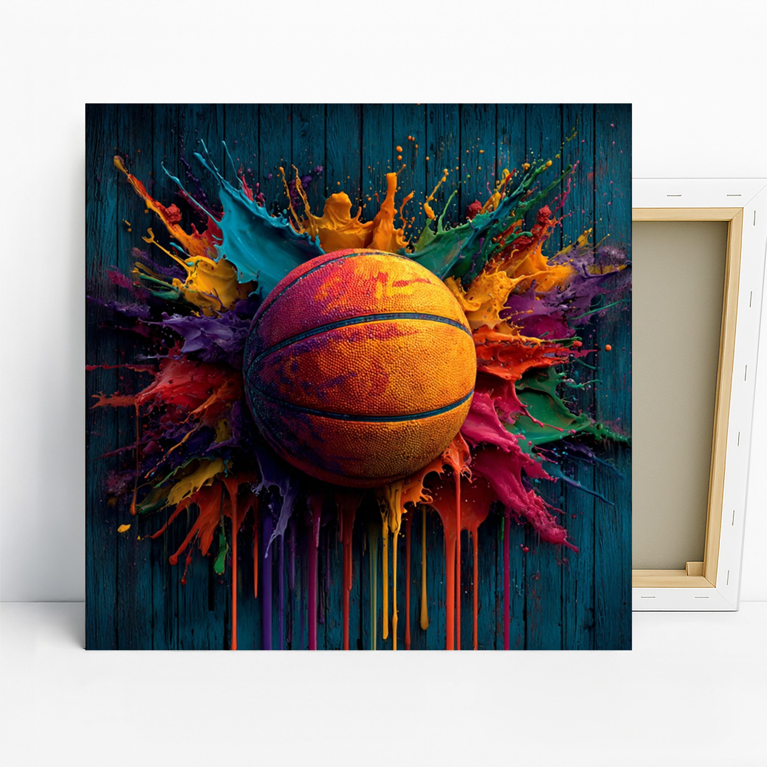 Transform your play space with vibrant basketball canvas wall art that explodes with energy and color. This striking piece showcases a dynamic paint splash effect around a basketball, making it a captivating focal point for any room. Perfect for a modern living room, a dedicated game room, or a motivational office space, this canvas wall art will elevate your decor with its bold design. The multicolored splashes of teal, orange, and purple against a dark background create a visually stunning effect that inspires action and excitement. Whether you’re a sports enthusiast or simply appreciate expressive art, this poster or canvas wall art is an ideal choice. It’s a fantastic gift for birthdays or holidays for any basketball fan, adding a splash of personality and style to their favorite space. The high-quality printing ensures the vibrant colors and intricate details of the paint splatters are brought to life, making this wall art a true statement piece. This contemporary art style blends seamlessly with modern and glam decor, enhancing the overall aesthetic of your home. Celebrate your passion for the game and add a touch of artistic flair to your walls. Elevate your home with this dynamic basketball poster and capture the spirit of the court today. It is designed to inspire and energize your environment, bringing life and character to any wall. Showcase your love for basketball with this unique and artistic canvas wall art.