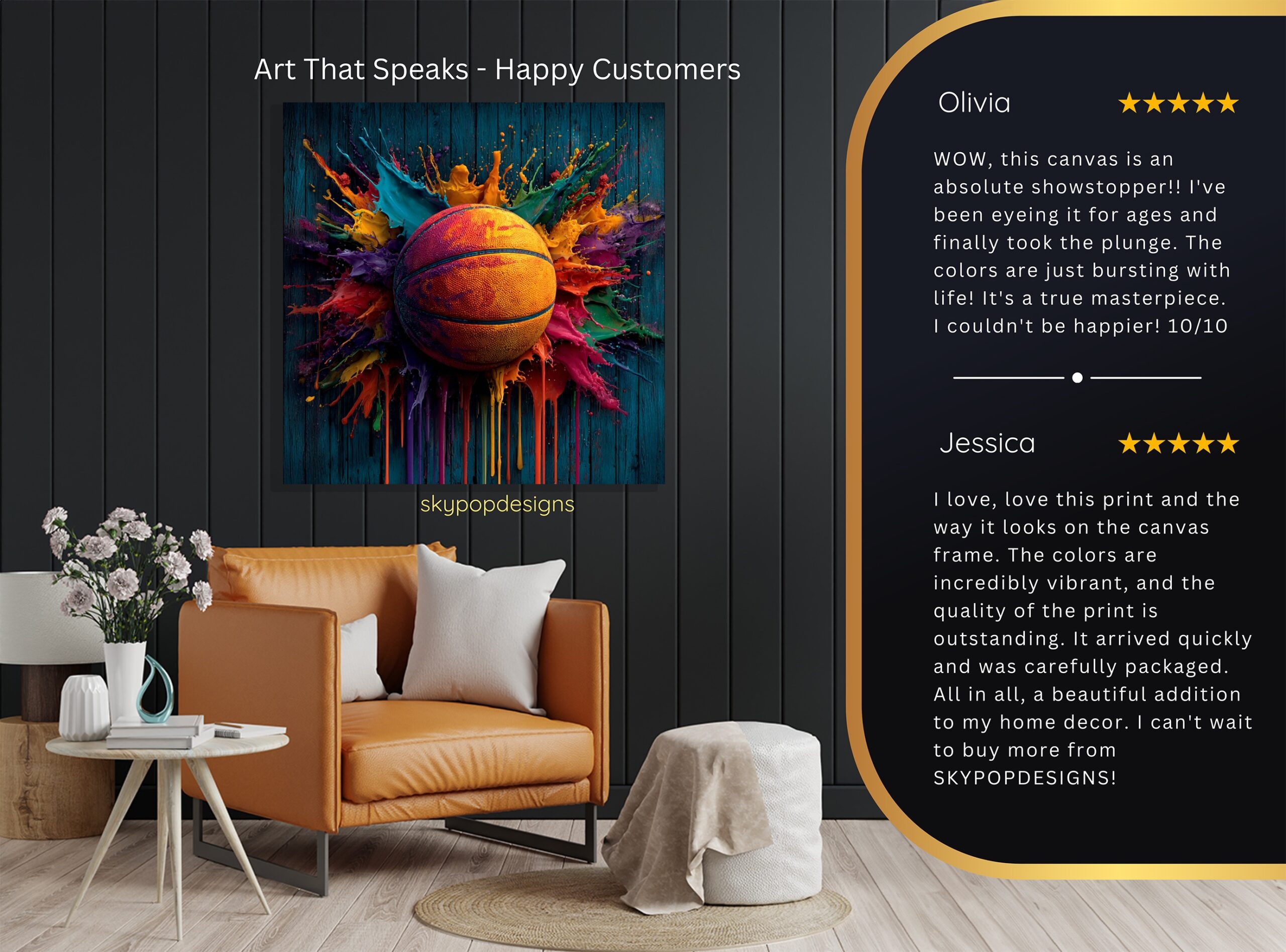 At SKYPOPDESIGNS, we specialize in high-quality canvas and poster prints designed to bring sophistication and style to your space. Please note that our designs are not created with 3D textures or as original oil, acrylic, or watercolor paintings; they are instead HD reproductions of original artwork. This approach allows us to offer these visually stunning pieces at competitive prices, ensuring you receive top-tier, maintenance-free art that’s easy to enjoy.