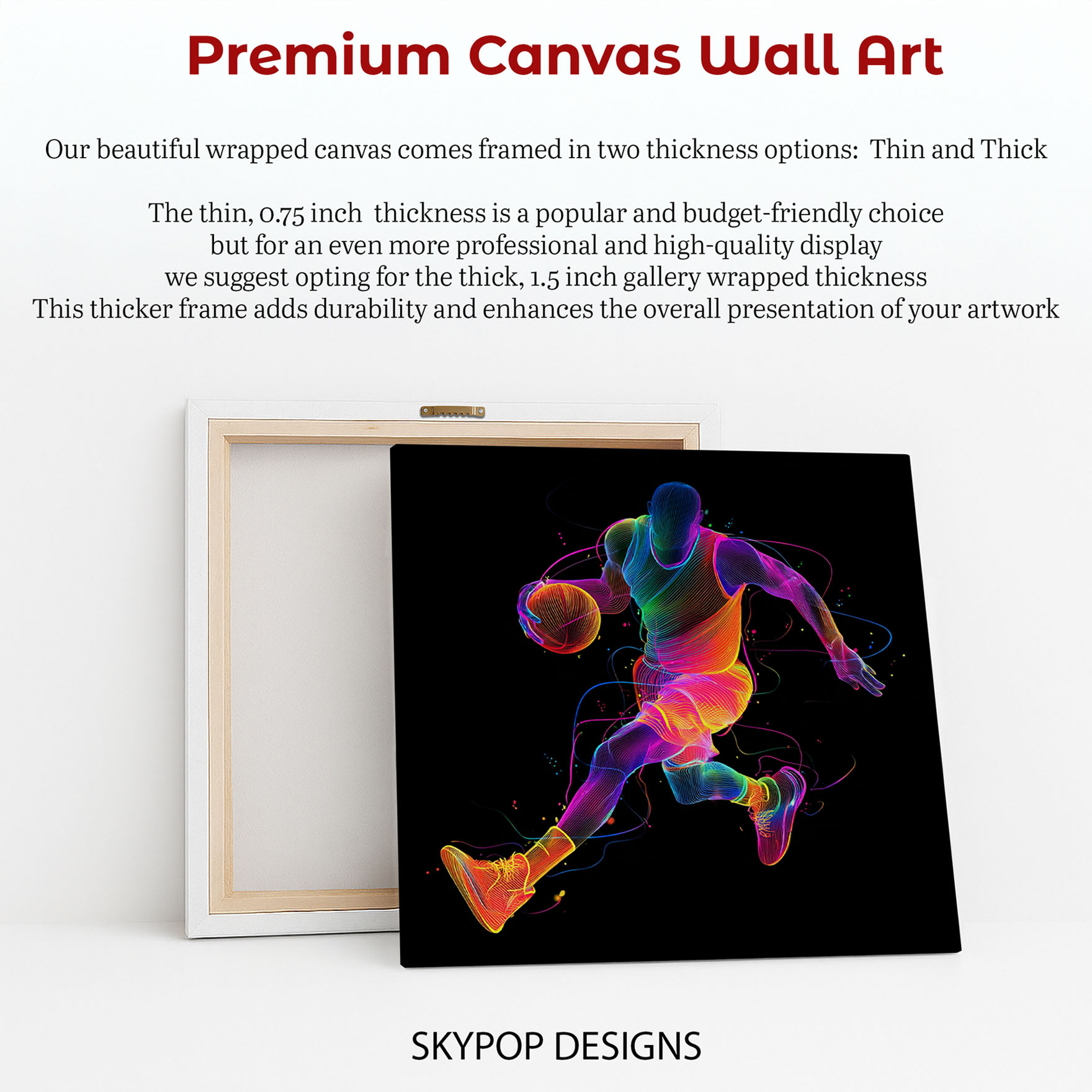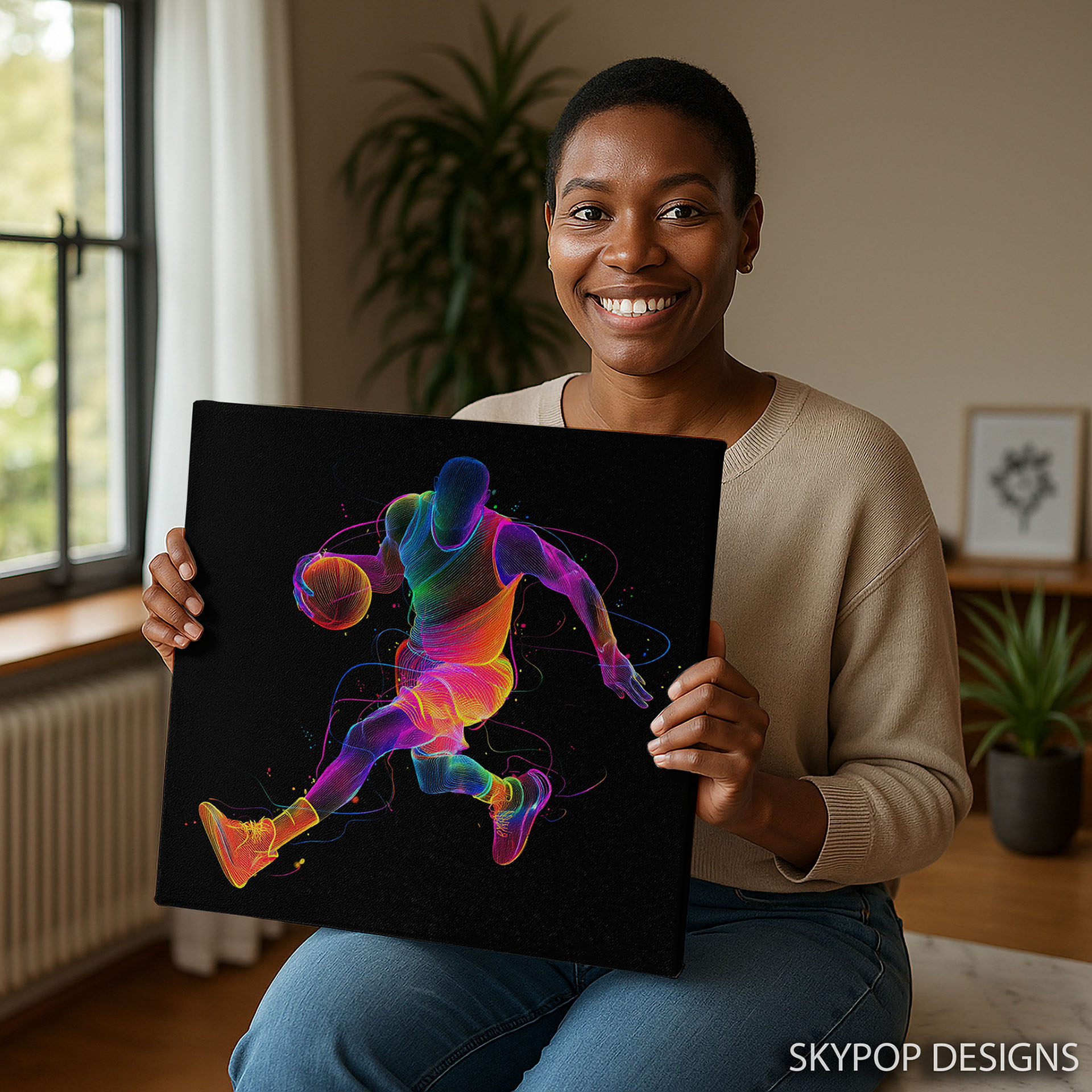 Transform your space with this electrifying basketball player canvas wall art that captures the dynamic energy of the game. This striking poster or canvas wall art is perfect for adding a vibrant touch to modern living room wall decor or creating an inspiring atmosphere in a game room or home gym. The multicolor design pops against the black background, showcasing bold lines and a fluid motion that brings the action to life. Ideal for contemporary spaces and minimalist interiors, this sports art celebrates the athleticism and excitement of basketball. The vibrant hues symbolize passion and movement, making this piece a powerful statement. High-quality printing ensures every detail, from the textured lines to the scattered color splatters, is beautifully rendered. This versatile artwork works perfectly in an office setting to boost motivation or in a teen’s bedroom for a sporty flair. It’s an ideal gift for sports enthusiasts, birthdays, or holidays, bringing lasting energy to any home. The striking color palette effortlessly complements modern decor trends, making it a standout addition to your wall art collection. Elevate your home with this dynamic basketball canvas wall art that combines modern aesthetics with the thrill of the sport. Add a burst of color and energy to your walls today with this captivating basketball poster.
