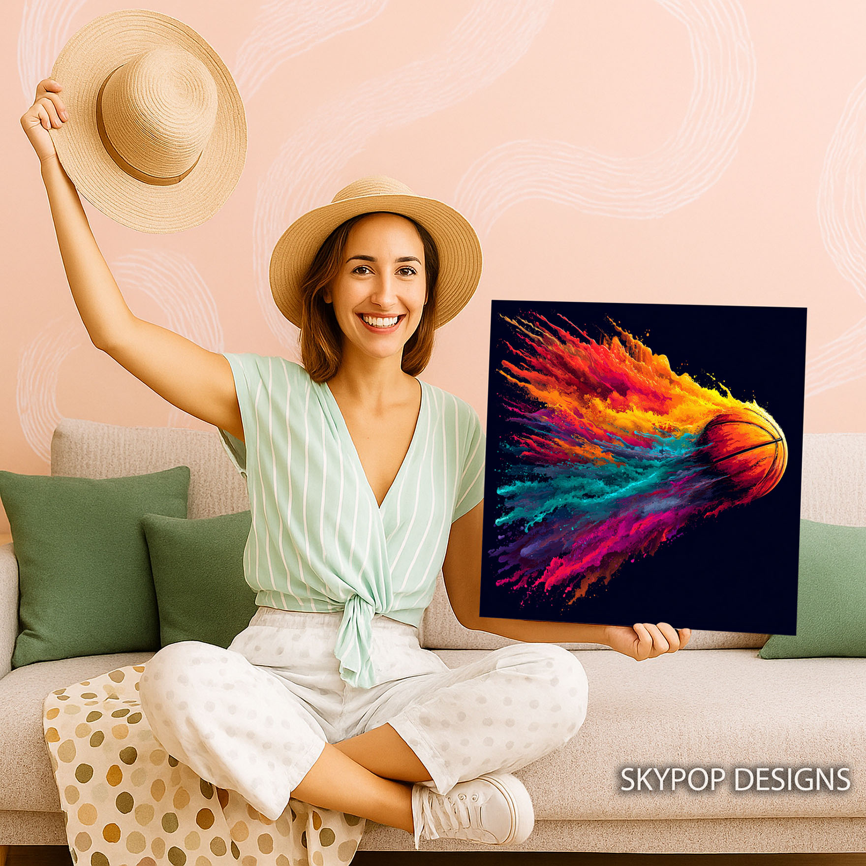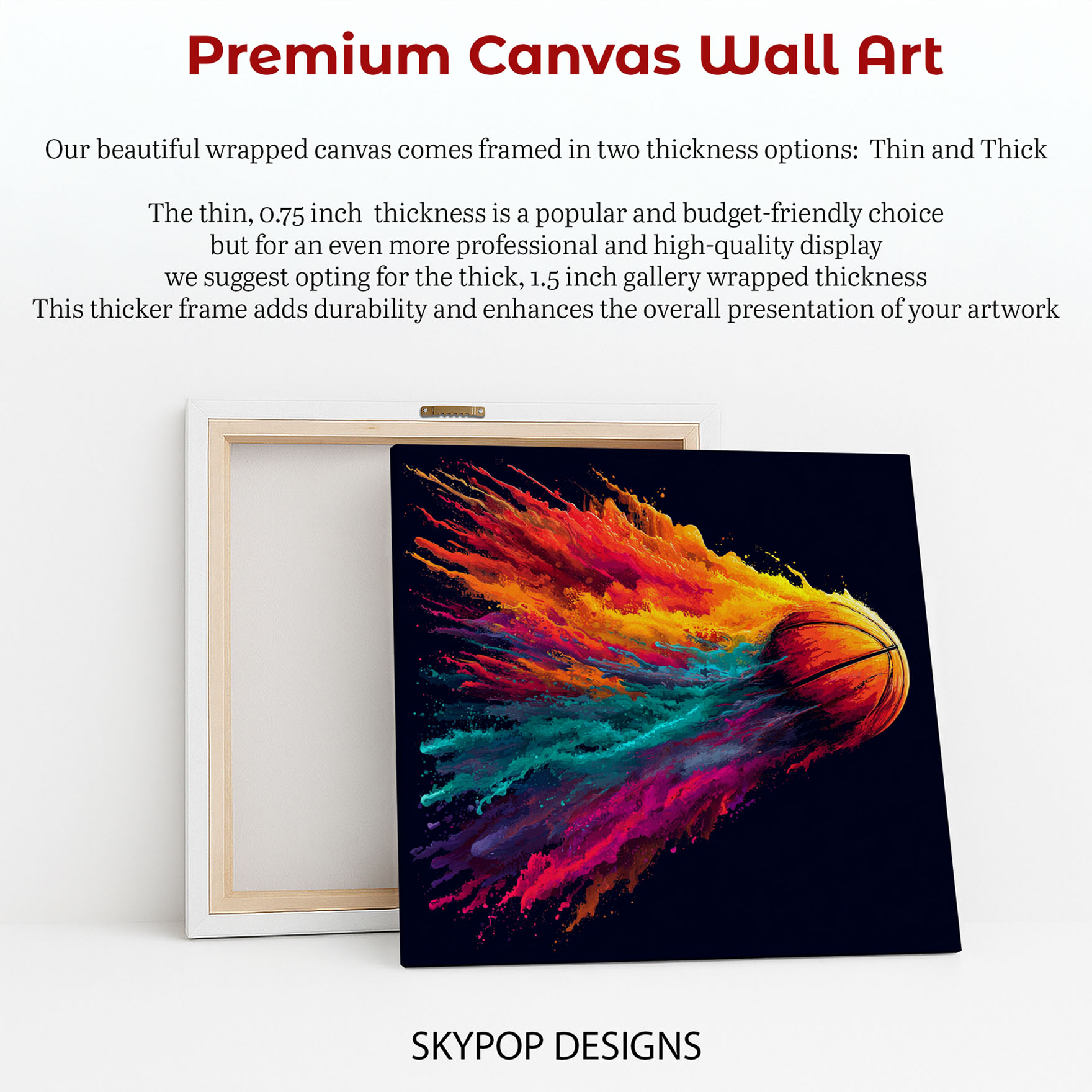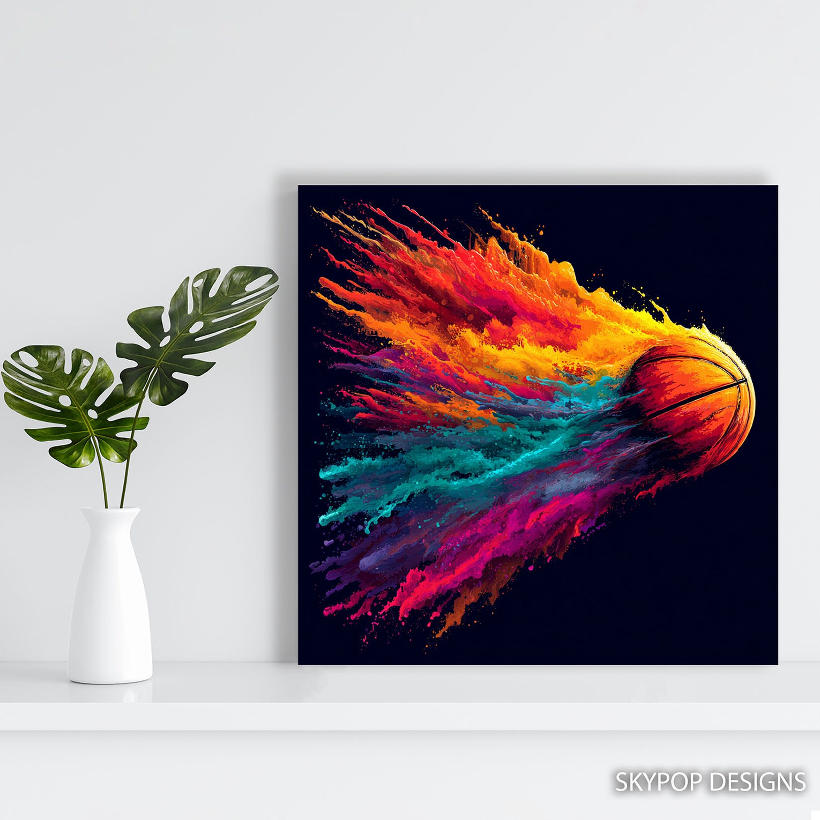 Unleash dynamic energy with this captivating basketball canvas wall art, featuring a striking splash of vibrant colors exploding from the ball. This poster or canvas wall art is perfect for transforming any modern living room or energizing a game room, office, or home gym space. The multicolor palette, dominated by fiery oranges, sunny yellows, and cool teals, creates a visually arresting centerpiece that inspires action and passion. Ideal for contemporary and modern decor styles, this sports art piece elevates spaces with its bold abstract elements and vibrant aesthetic. The artistic representation of motion and speed is expertly captured, making this canvas art a true showstopper for any sports enthusiast. High-quality printing showcases the intricate details of the paint splashes and the iconic texture of the basketball. This versatile artwork can inspire focus in an office, bring excitement to a game room, or motivate during a workout in the home gym. It’s a perfect gift for birthdays, Father’s Day, or housewarming celebrations for any basketball fan. The intense color contrast against the dark background makes this poster a standout piece for any wall art collection. Elevate your decor with this high-energy basketball canvas wall art that celebrates the thrill of the game. Add a powerful statement to your home with this stunning piece of sports art today.