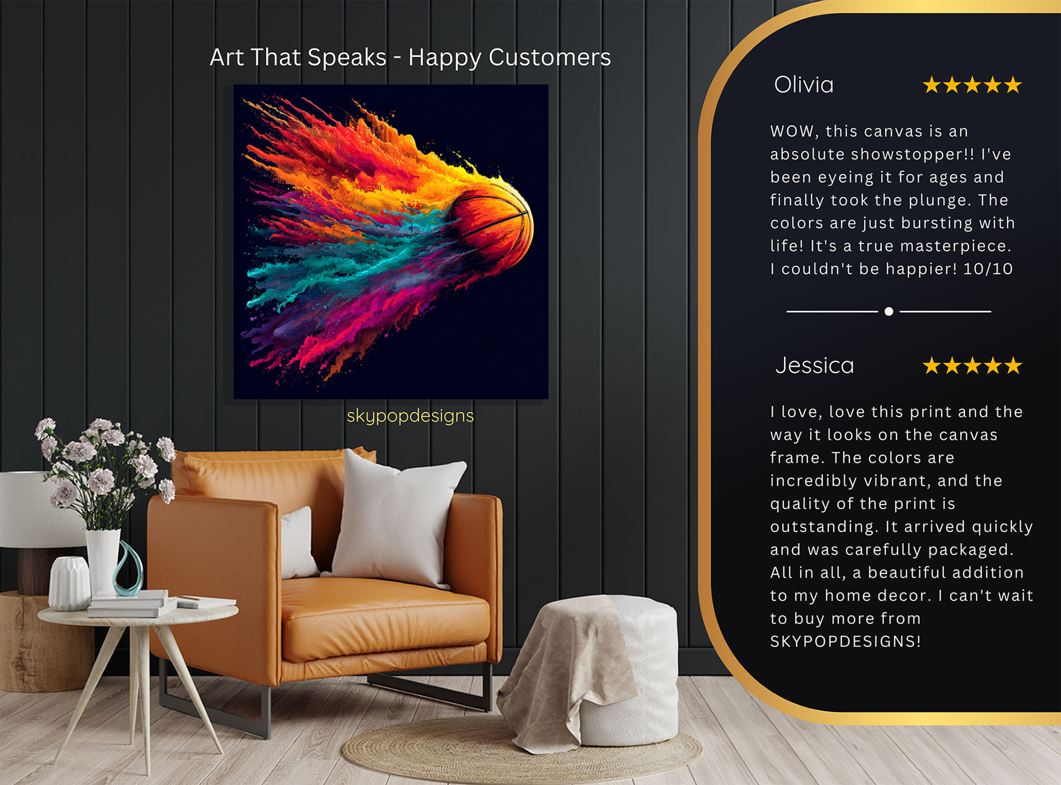 At SKYPOPDESIGNS, we specialize in high-quality canvas and poster prints designed to bring sophistication and style to your space. Please note that our designs are not created with 3D textures or as original oil, acrylic, or watercolor paintings; they are instead HD reproductions of original artwork. This approach allows us to offer these visually stunning pieces at competitive prices, ensuring you receive top-tier, maintenance-free art that’s easy to enjoy.