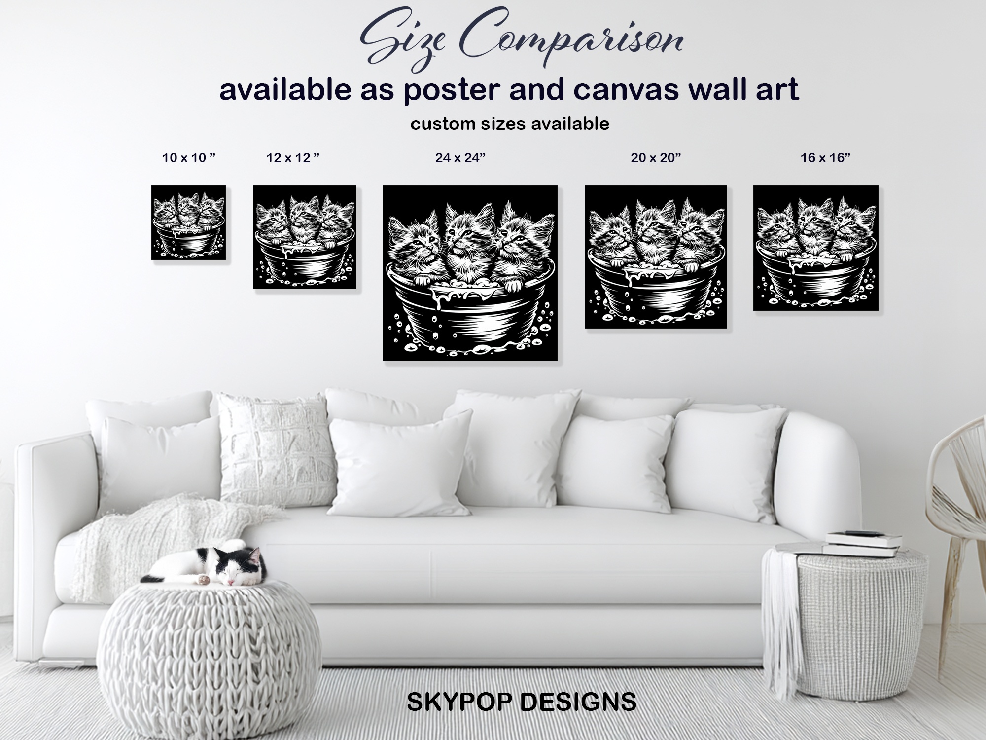 Keywords: Whimsical Art, Animal Art, Graffiti Art, Modern Decor, Bohemian Decor, Contemporary Decor, Living Room Art, Children’s Room Art, Bedroom Art, Kitchen Art, Black and White Art, Multicolor Art, Cat Art, Bathtime Kitties Art, Canvas Wall Art, Poster Art, Graphic Design, Street Art Style, Minimalist Decor, Eclectic Decor, Housewarming Gift, Birthday Gift, Playful Art, Cute Cat Art, Feline Wall Art, Bubble Bath Art, Art for Home, Interior Design, Wall Decor, Adorable Kittens