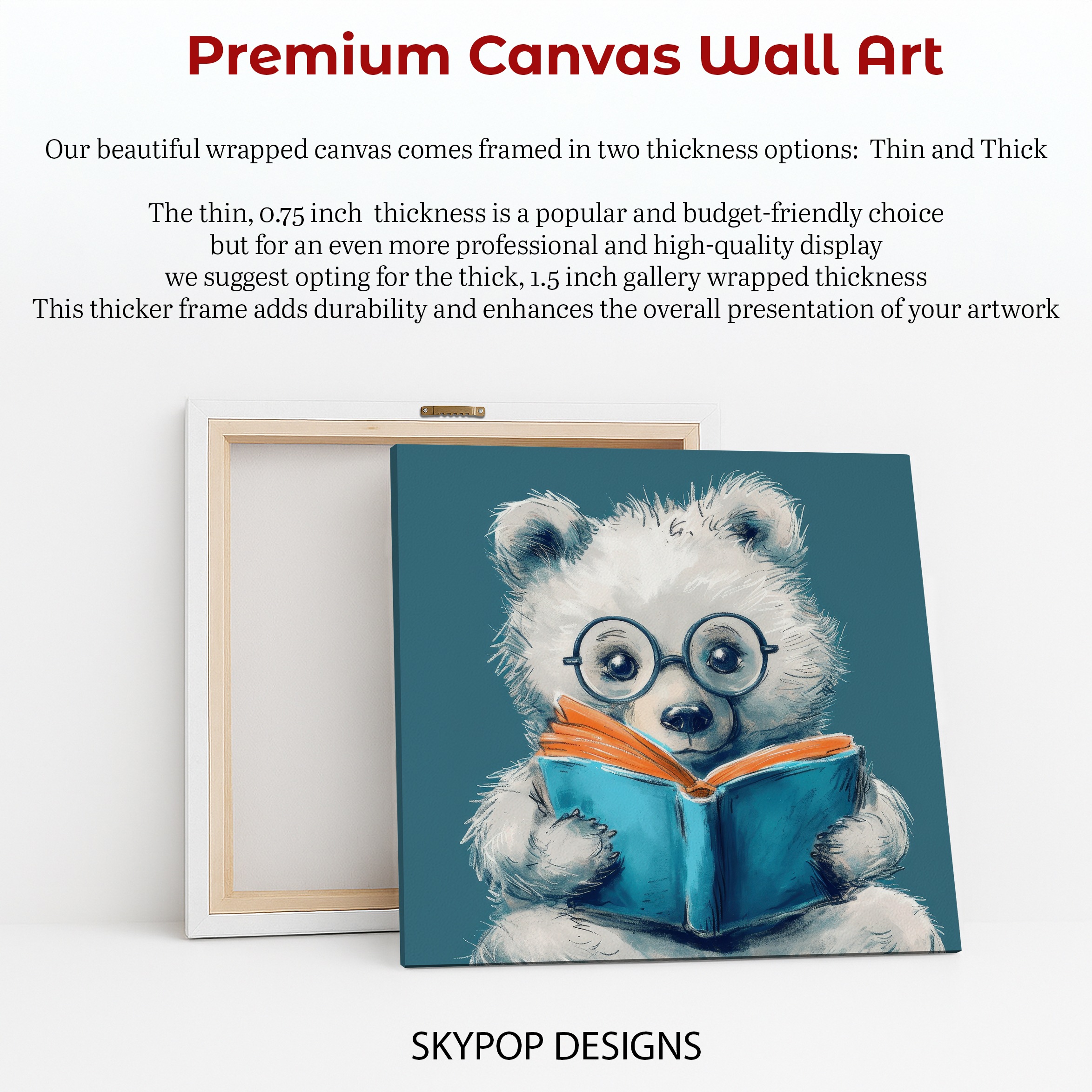 Bring a touch of charm and intellect to your home with this captivating bear canvas wall art featuring a whimsical bear engrossed in a book. This unique poster or canvas wall art showcases a playful yet studious bear, perfect for sparking conversation and adding personality to any room. The striking combination of blue and orange hues against the bear’s white fur creates a vibrant focal point that can transform your living room, bedroom, or children’s room. This whimsical animal art piece is ideal for modern or minimalist decor, adding a delightful splash of color and character. It also complements bohemian-inspired spaces, infusing them with a cozy and intellectual vibe. The detailed brushwork and expressive eyes of the bear on this canvas wall art invite you to imagine the stories it’s reading. This artwork serves as a wonderful reminder of the joy of learning and reading, making it an excellent addition to a home office or library. Perfect as a gift for book lovers, students, or anyone who appreciates unique animal art, this poster offers both aesthetic appeal and emotional warmth. Elevate your space with this high-quality print that captures the endearing spirit of this literary bear. Make this charming bear reading a book canvas wall art a treasured part of your decor collection today.