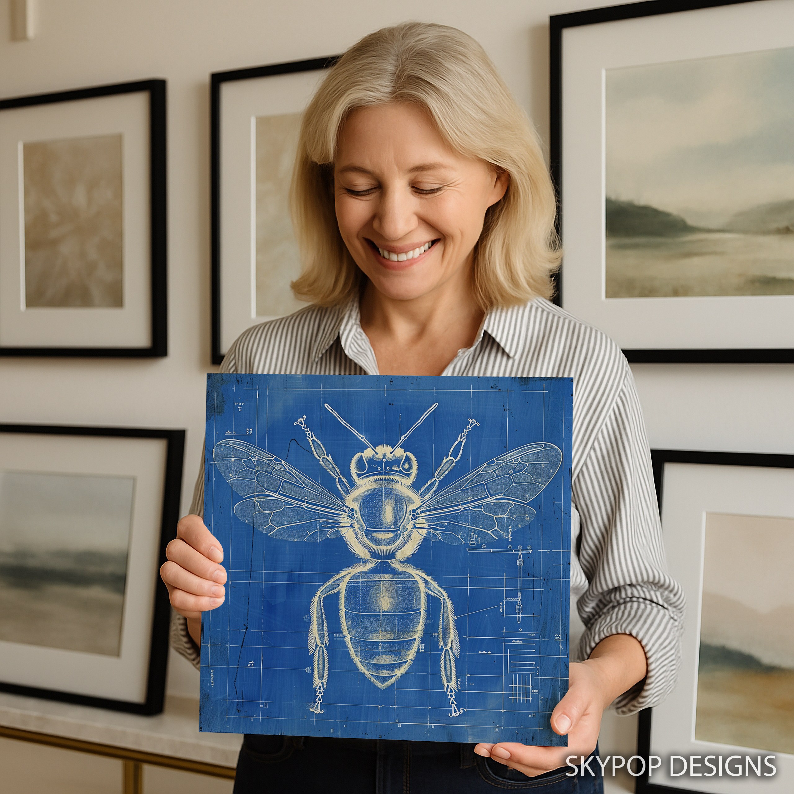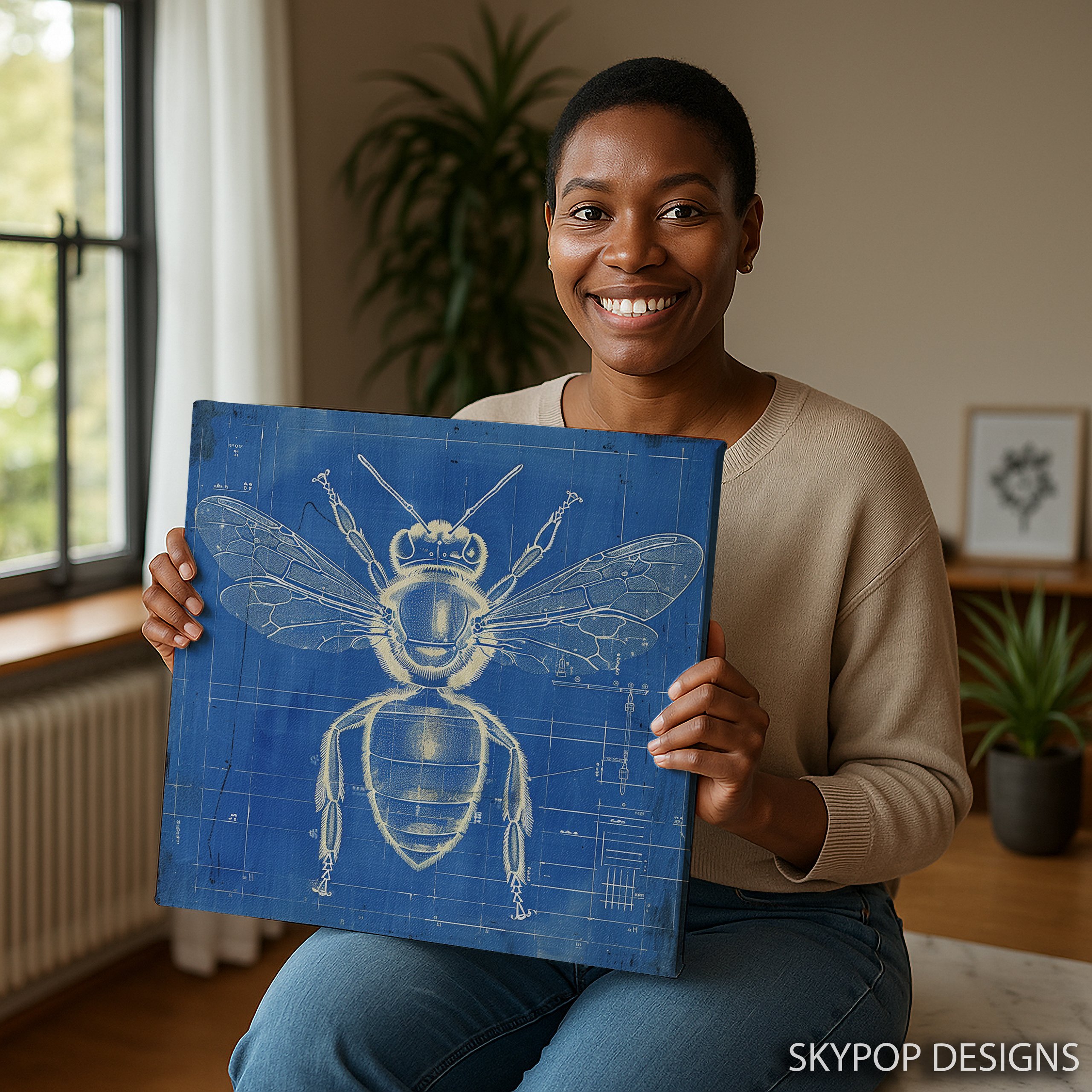 Transform your space with this striking bee canvas wall art, featuring a detailed anatomical blueprint of a honey bee on a vibrant blue background. This unique poster combines scientific precision with artistic flair, making it a perfect conversation starter for modern offices or contemporary living rooms. The intricate white lines of the bee’s anatomy pop against the rich blue backdrop, creating a visually stunning contrast that draws the eye. Ideal for nature enthusiasts or those with a penchant for minimalist decor, this canvas wall art adds a touch of sophistication to any room. The blueprint style gives a nod to technical drawings, making it an excellent choice for study areas or home offices where creativity and precision are valued. The large-scale bee illustration celebrates the beauty of these essential pollinators, bringing a sense of natural wonder into your living space. Whether you’re looking to create a focal point in your bedroom or add character to a Scandinavian-inspired interior, this versatile artwork fits seamlessly into various design schemes. The high-quality printing ensures every delicate detail of the bee’s structure is captured, from its delicate wings to its fuzzy body. Perfect as a thoughtful gift for biologists, environmentalists, or anyone who appreciates unique wall decor. Elevate your home or office with this eye-catching blend of nature and design that’s sure to spark curiosity and admiration. Add this captivating bee blueprint canvas to your wall art collection today and bring a touch of scientific artistry to your space.