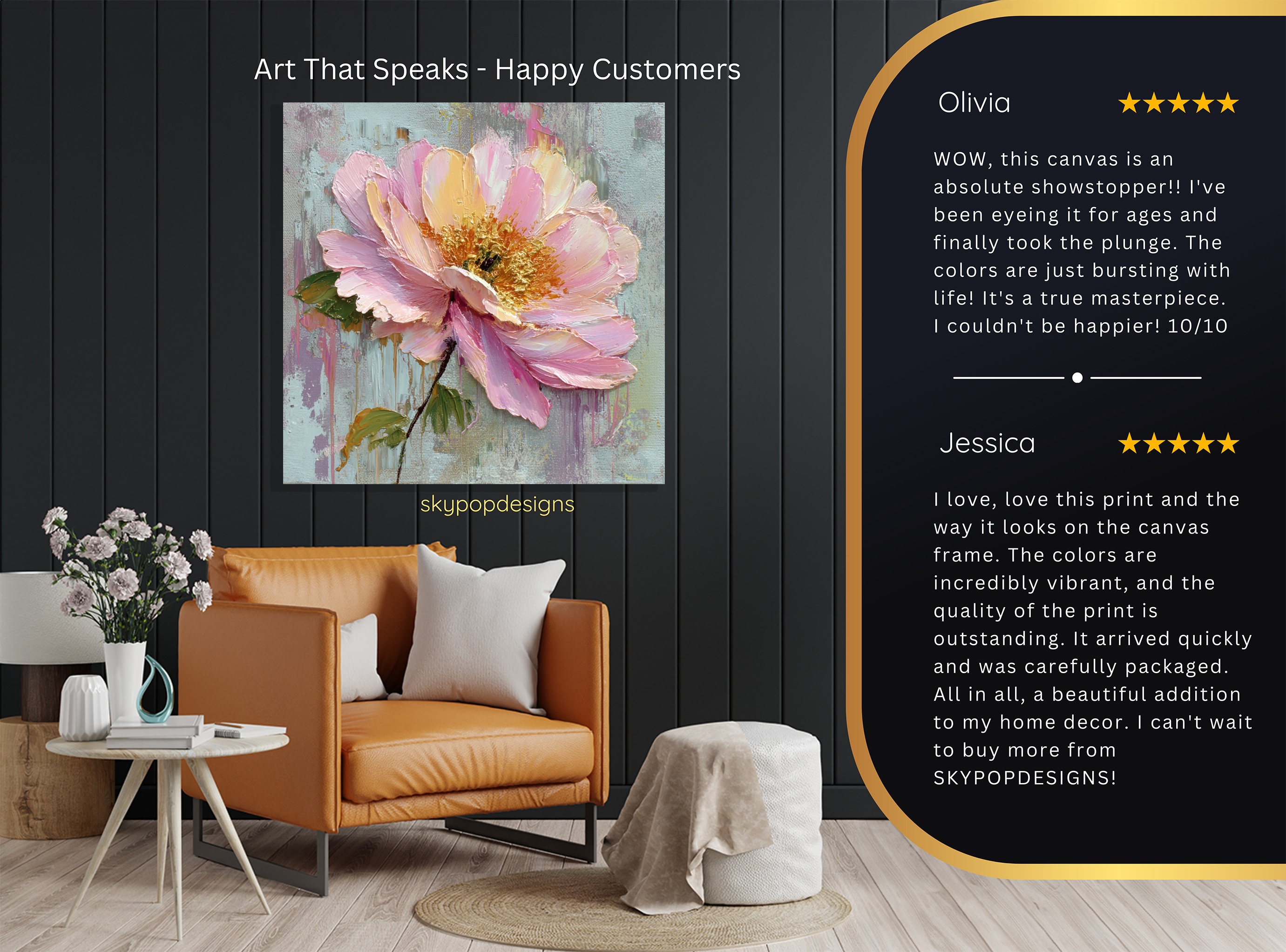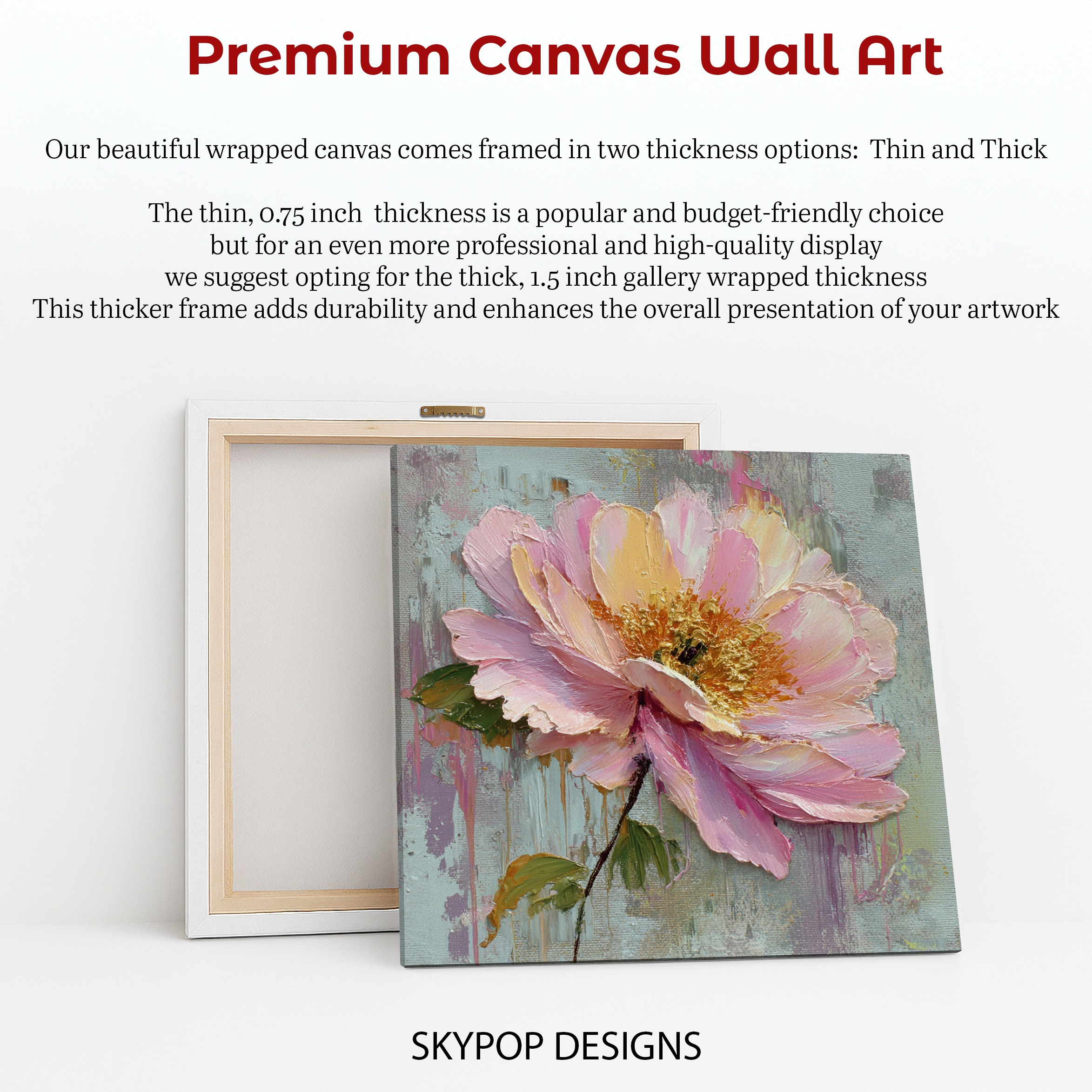 At SKYPOPDESIGNS, we specialize in high-quality canvas and poster prints designed to bring sophistication and style to your space. Please note that our designs are not created with 3D textures or as original oil, acrylic, or watercolor paintings; they are instead HD reproductions of original artwork. This approach allows us to offer these visually stunning pieces at competitive prices, ensuring you receive top-tier, maintenance-free art that’s easy to enjoy.