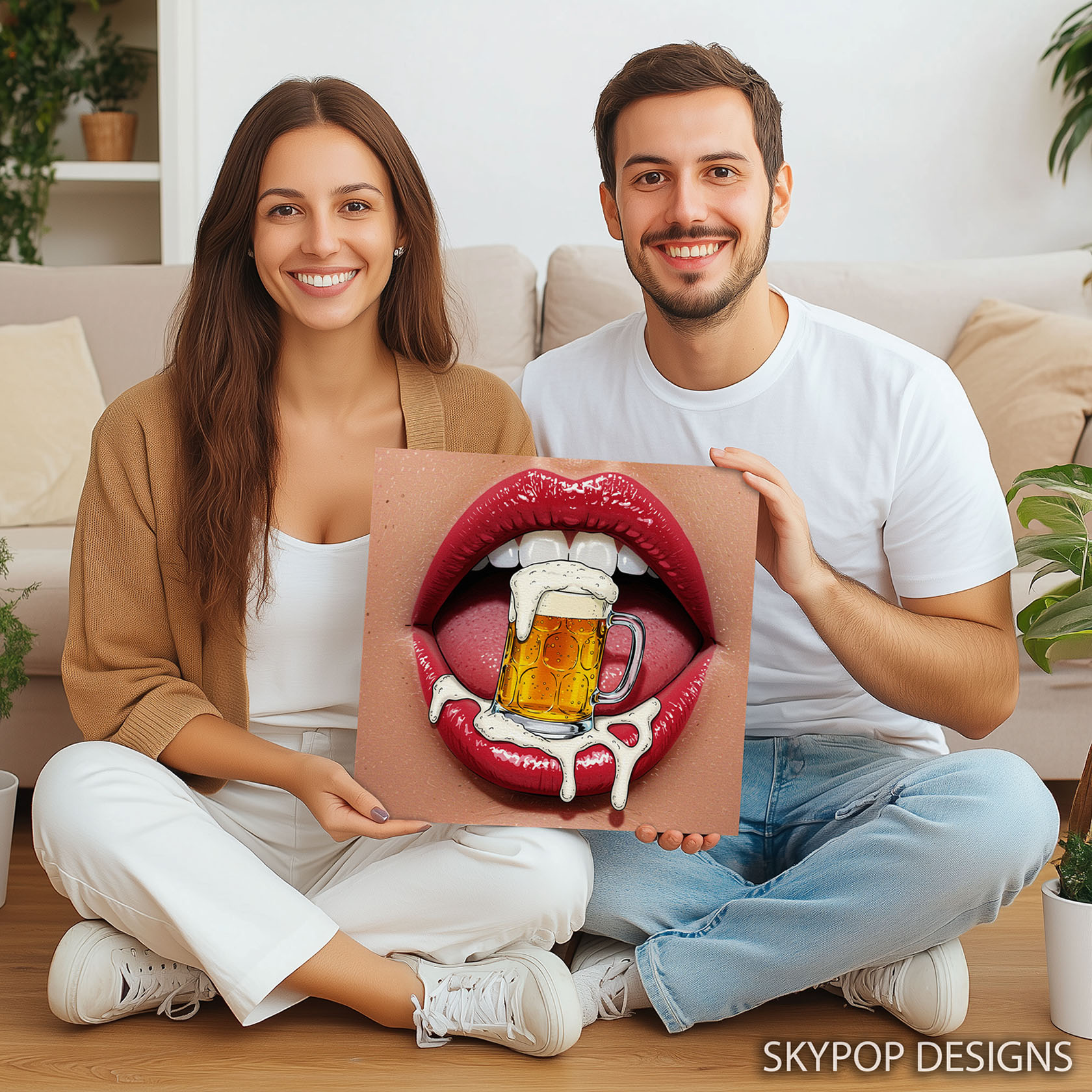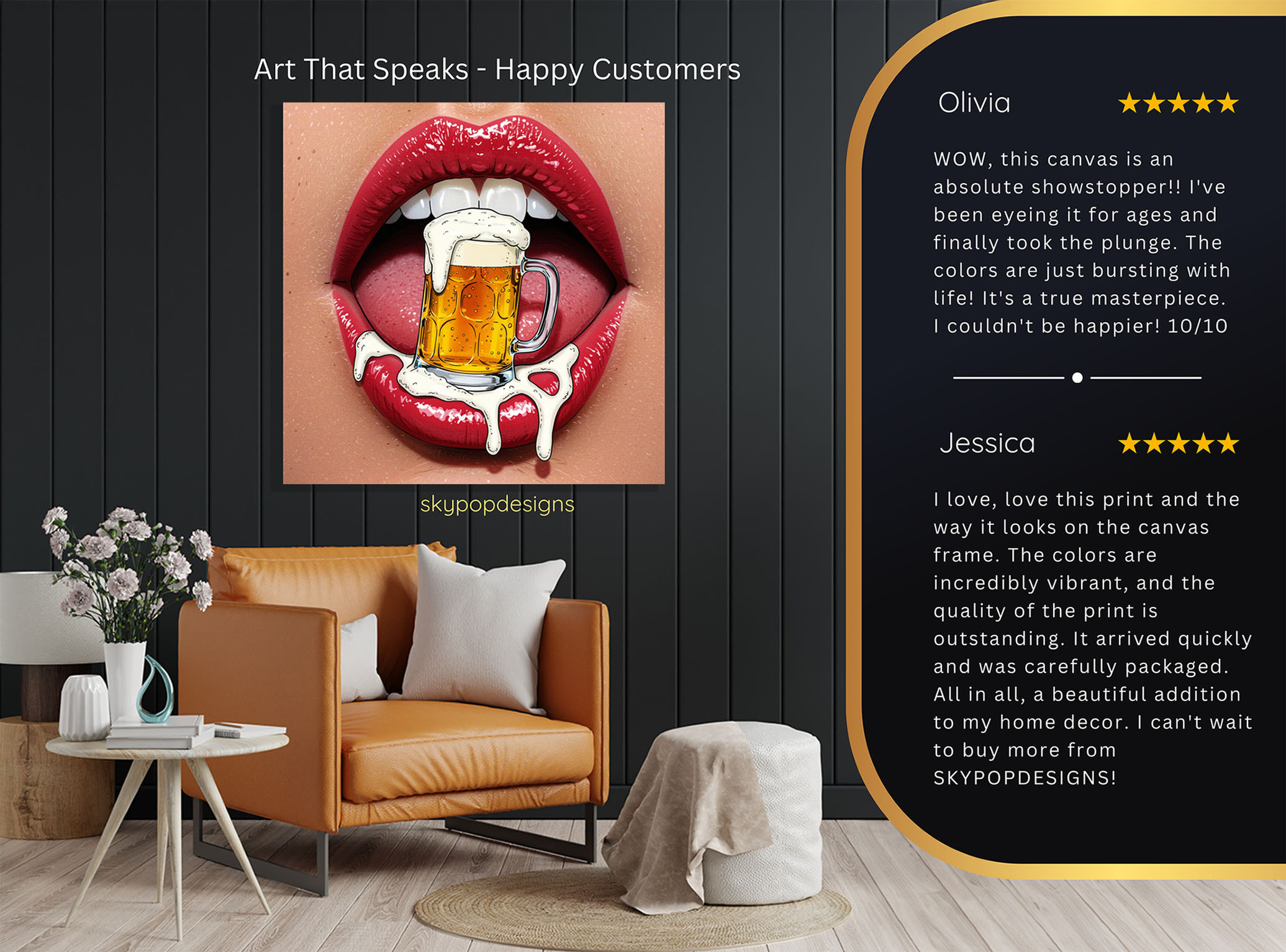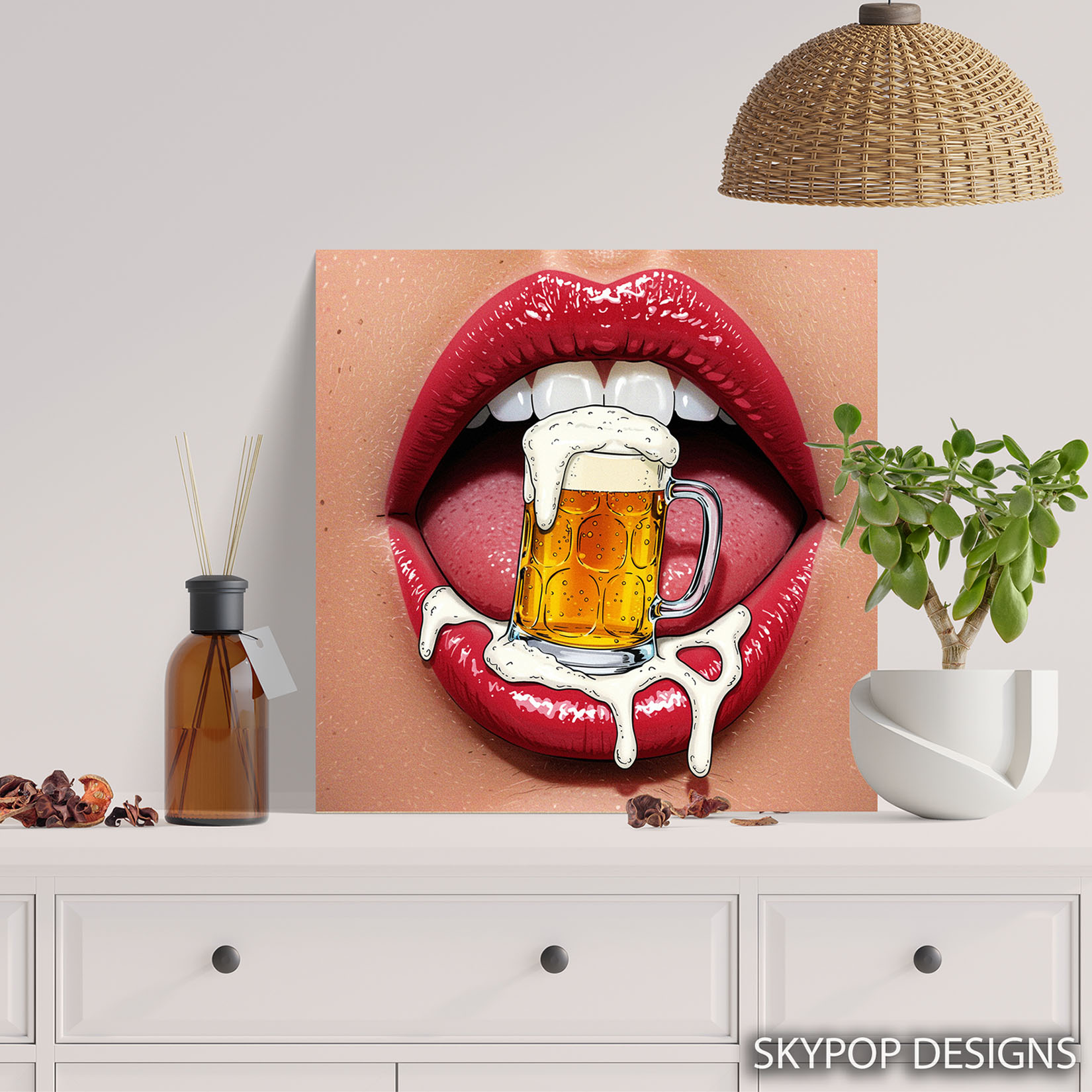 Elevate your space with this striking beer canvas wall art that artfully combines pop art sensibilities with a touch of glam. This captivating poster or canvas wall art is perfect for creating a vibrant focal point in your modern living room, a playful addition to your game room, or a chic statement piece for your bar area. The bold red lips and rich golden hues of the overflowing beer mug create a dynamic and visually engaging composition, sure to spark conversation. Ideal for bohemian decor schemes that embrace bold statements or glam interiors seeking a dramatic touch, this artwork adds personality and excitement. The high-quality printing on this canvas wall art ensures the glossy texture of the lips and the frothy beer are rendered with stunning detail. This versatile piece also makes a fantastic gift for birthdays, holidays, or housewarmings for any beer enthusiast. The striking contrast of colors and the unique subject matter make this poster a standout choice for contemporary wall decor. Transform your home into an artful haven with this eye-catching beer-themed canvas art. It’s a perfect way to express your passion for good times and great taste, adding a vibrant and unforgettable element to your personal sanctuary. Enhance your decor today with this one-of-a-kind beer artwork.