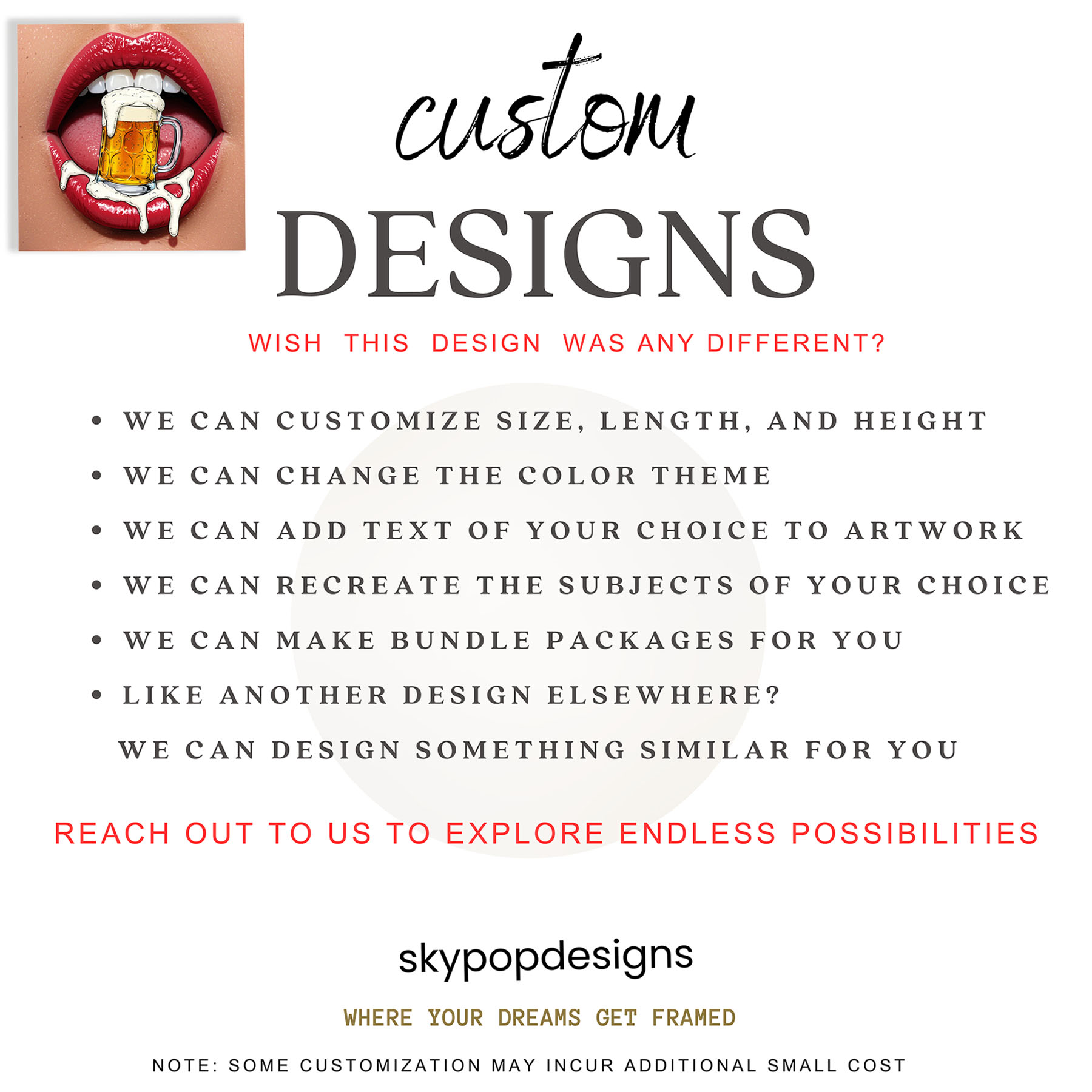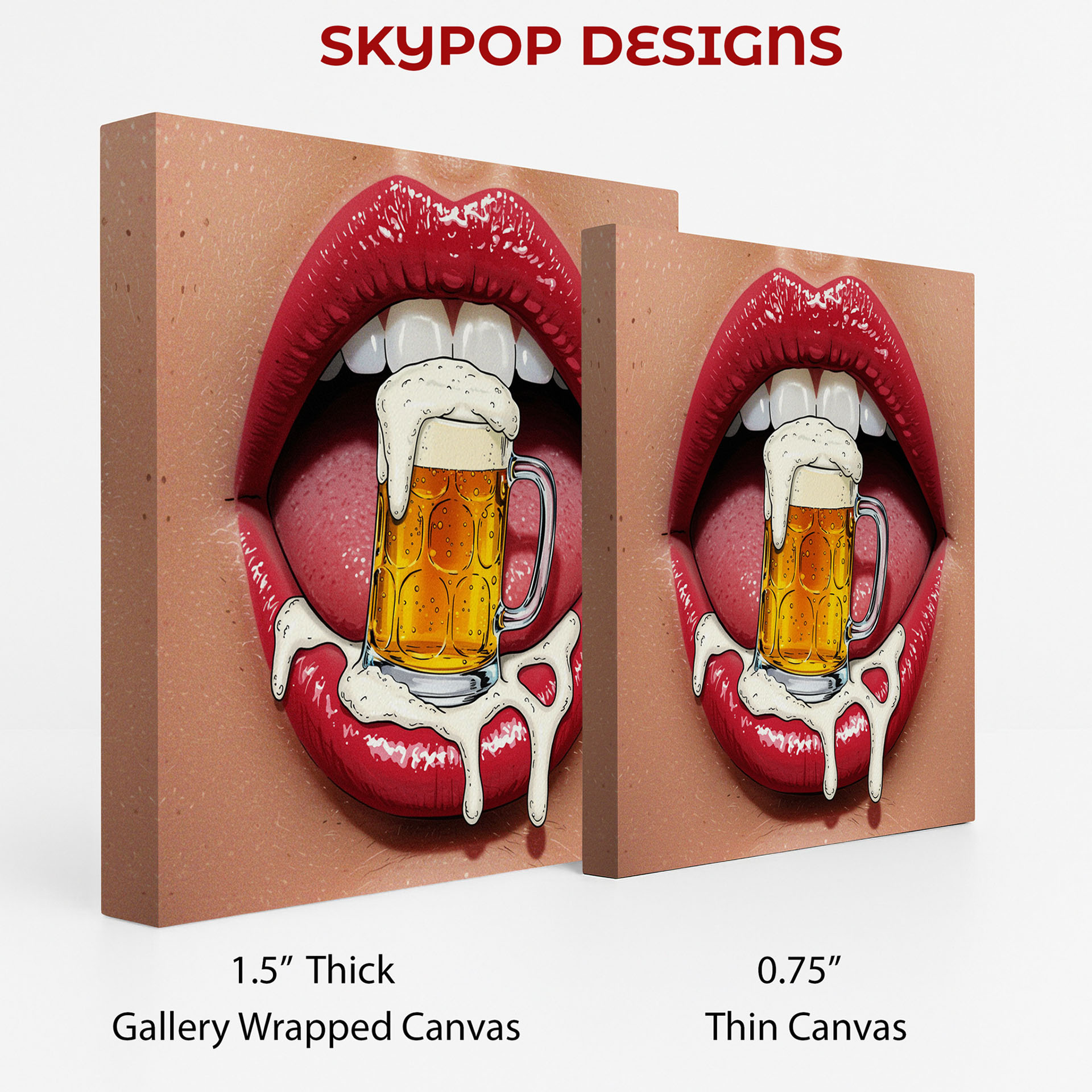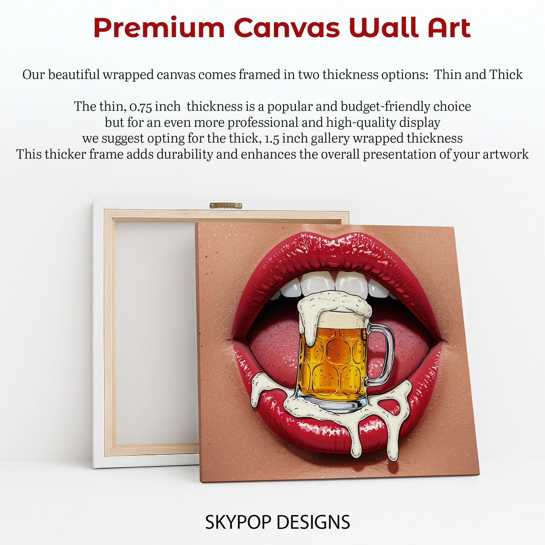 Elevate your space with this striking beer canvas wall art that artfully combines pop art sensibilities with a touch of glam. This captivating poster or canvas wall art is perfect for creating a vibrant focal point in your modern living room, a playful addition to your game room, or a chic statement piece for your bar area. The bold red lips and rich golden hues of the overflowing beer mug create a dynamic and visually engaging composition, sure to spark conversation. Ideal for bohemian decor schemes that embrace bold statements or glam interiors seeking a dramatic touch, this artwork adds personality and excitement. The high-quality printing on this canvas wall art ensures the glossy texture of the lips and the frothy beer are rendered with stunning detail. This versatile piece also makes a fantastic gift for birthdays, holidays, or housewarmings for any beer enthusiast. The striking contrast of colors and the unique subject matter make this poster a standout choice for contemporary wall decor. Transform your home into an artful haven with this eye-catching beer-themed canvas art. It’s a perfect way to express your passion for good times and great taste, adding a vibrant and unforgettable element to your personal sanctuary. Enhance your decor today with this one-of-a-kind beer artwork.