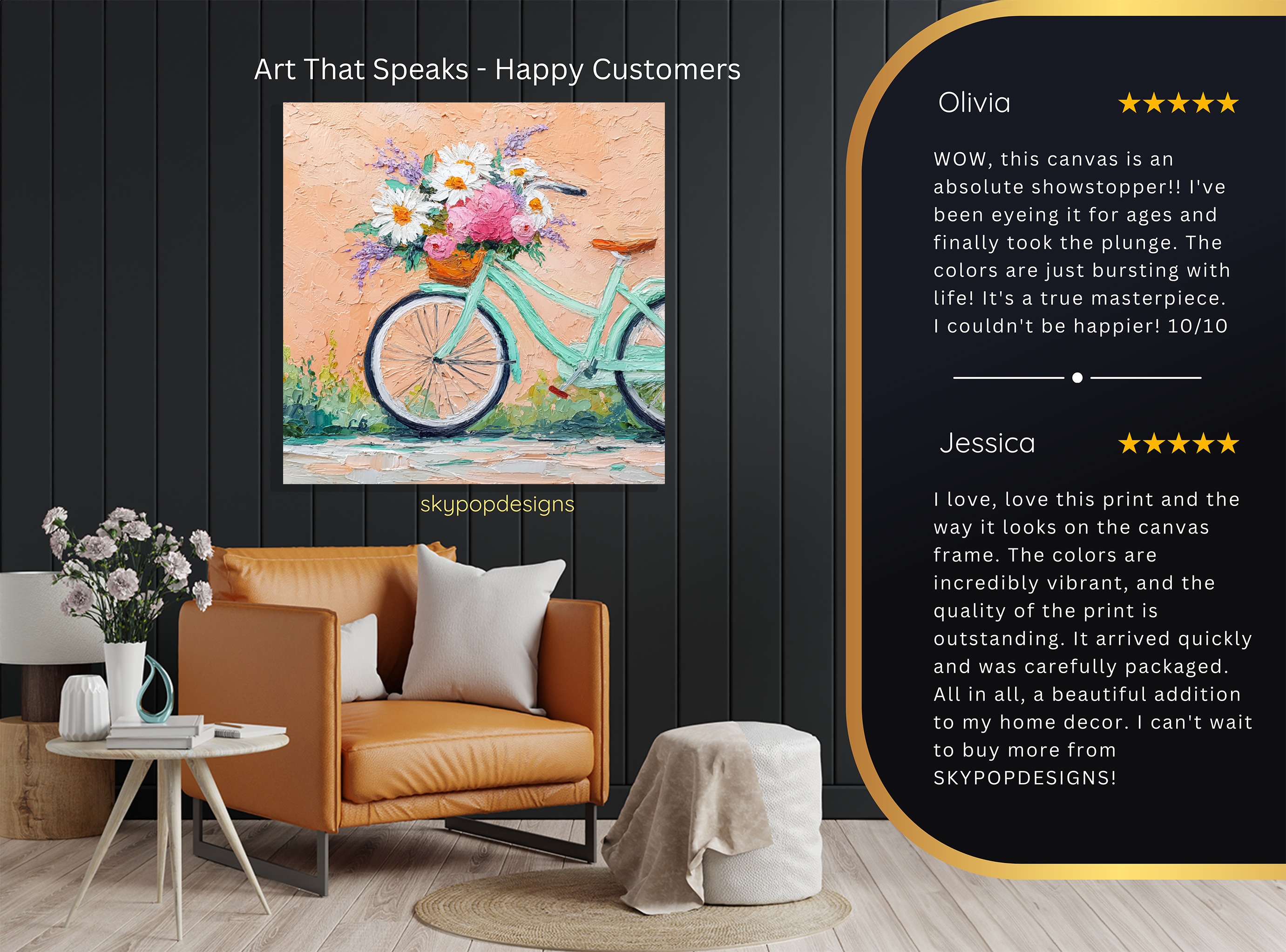 At SKYPOPDESIGNS, we specialize in high-quality canvas and poster prints designed to bring sophistication and style to your space. Please note that our designs are not created with 3D textures or as original oil, acrylic, or watercolor paintings; they are instead HD reproductions of original artwork. This approach allows us to offer these visually stunning pieces at competitive prices, ensuring you receive top-tier, maintenance-free art that’s easy to enjoy.