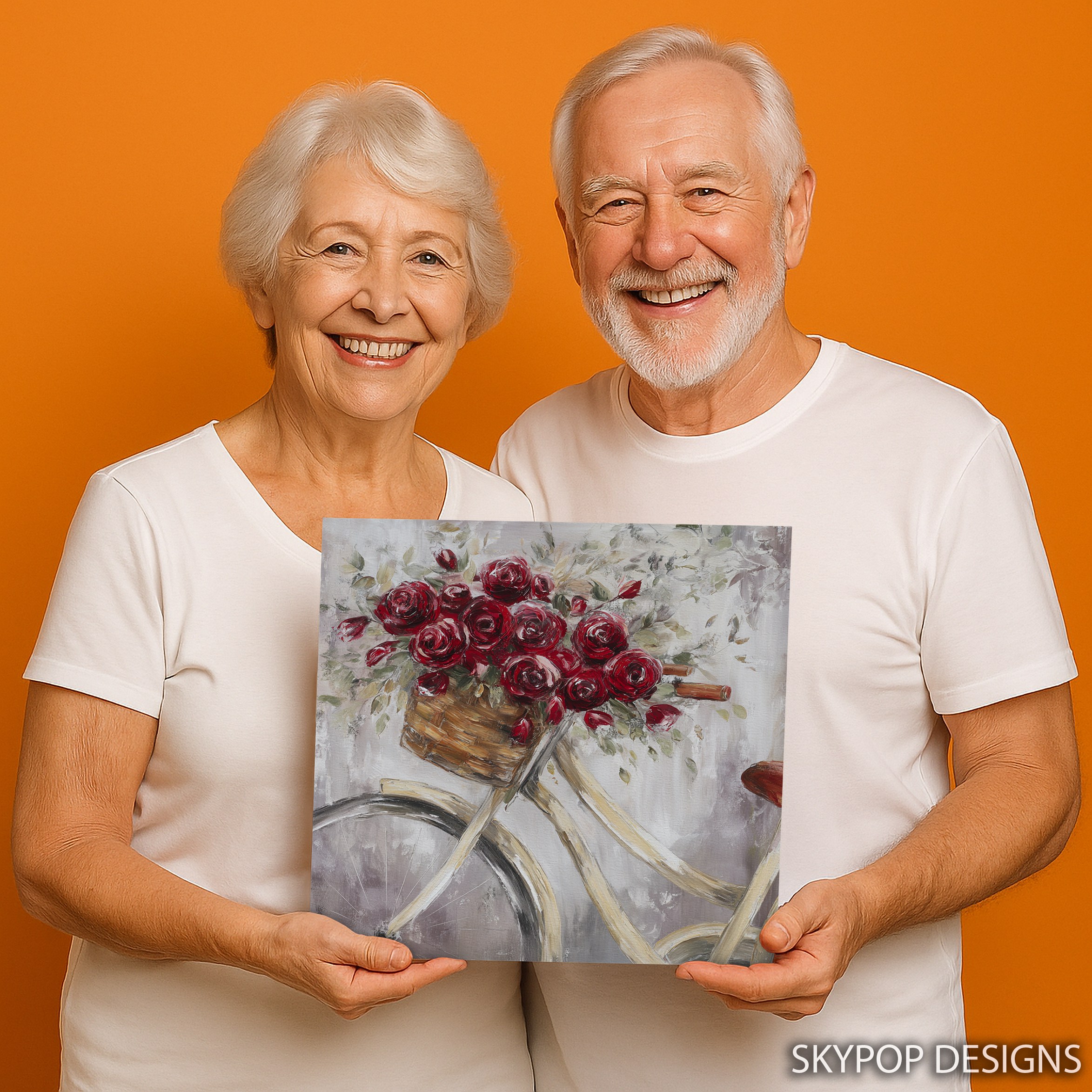 Elevate your home decor with this charming bicycle rose basket canvas wall art, perfect for adding a touch of vintage romance to any space. This captivating poster showcases a beautiful bouquet of vibrant red roses nestled in a rustic woven basket attached to a classic bicycle frame. The soft, painterly style brings warmth and character to your walls, making it ideal for shabby chic or French country interiors. Transform your living room, bedroom, or entryway with this stunning piece that celebrates the timeless beauty of flowers and nostalgia. The rich red hues of the roses pop against the muted background, creating a focal point that draws the eye and sparks conversation. This versatile canvas art works beautifully in dining rooms, adding a cozy and inviting atmosphere to your meals. The delicate balance of floral elegance and rustic charm makes this poster a perfect housewarming gift or a treat for yourself to refresh your seasonal decor. Available in various sizes, this high-quality wall art adapts seamlessly to different room layouts and complements existing furniture. Enhance your home’s ambiance with this delightful blend of still life artistry and vintage-inspired design. Bring the romance of a flower-filled bicycle ride into your living space and transform your walls today with this timeless and enchanting canvas art.