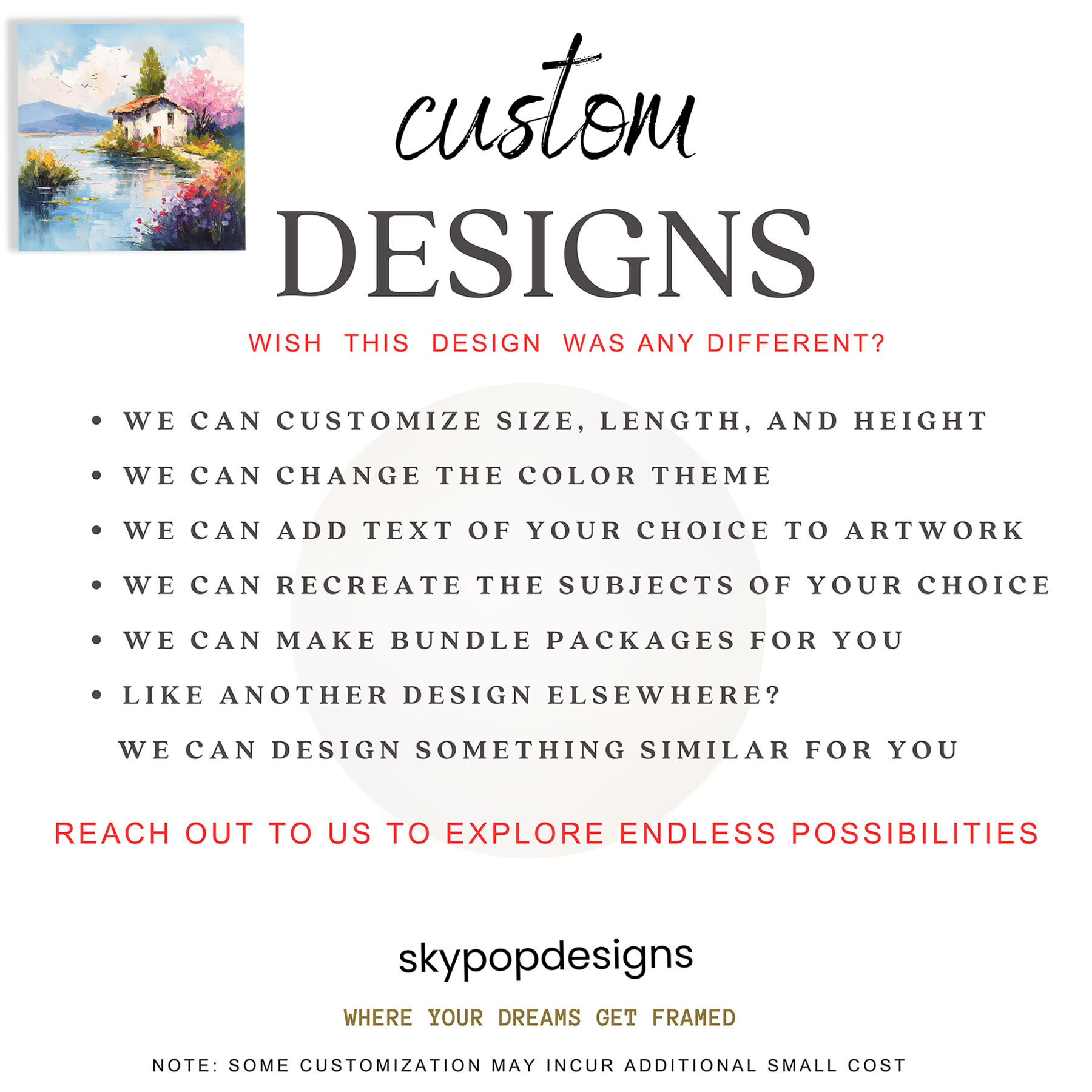 At SKYPOPDESIGNS, we specialize in high-quality canvas and poster prints designed to bring sophistication and style to your space. Please note that our designs are not created with 3D textures or as original oil, acrylic, or watercolor paintings; they are instead HD reproductions of original artwork. This approach allows us to offer these visually stunning pieces at competitive prices, ensuring you receive top-tier, maintenance-free art that’s easy to enjoy.