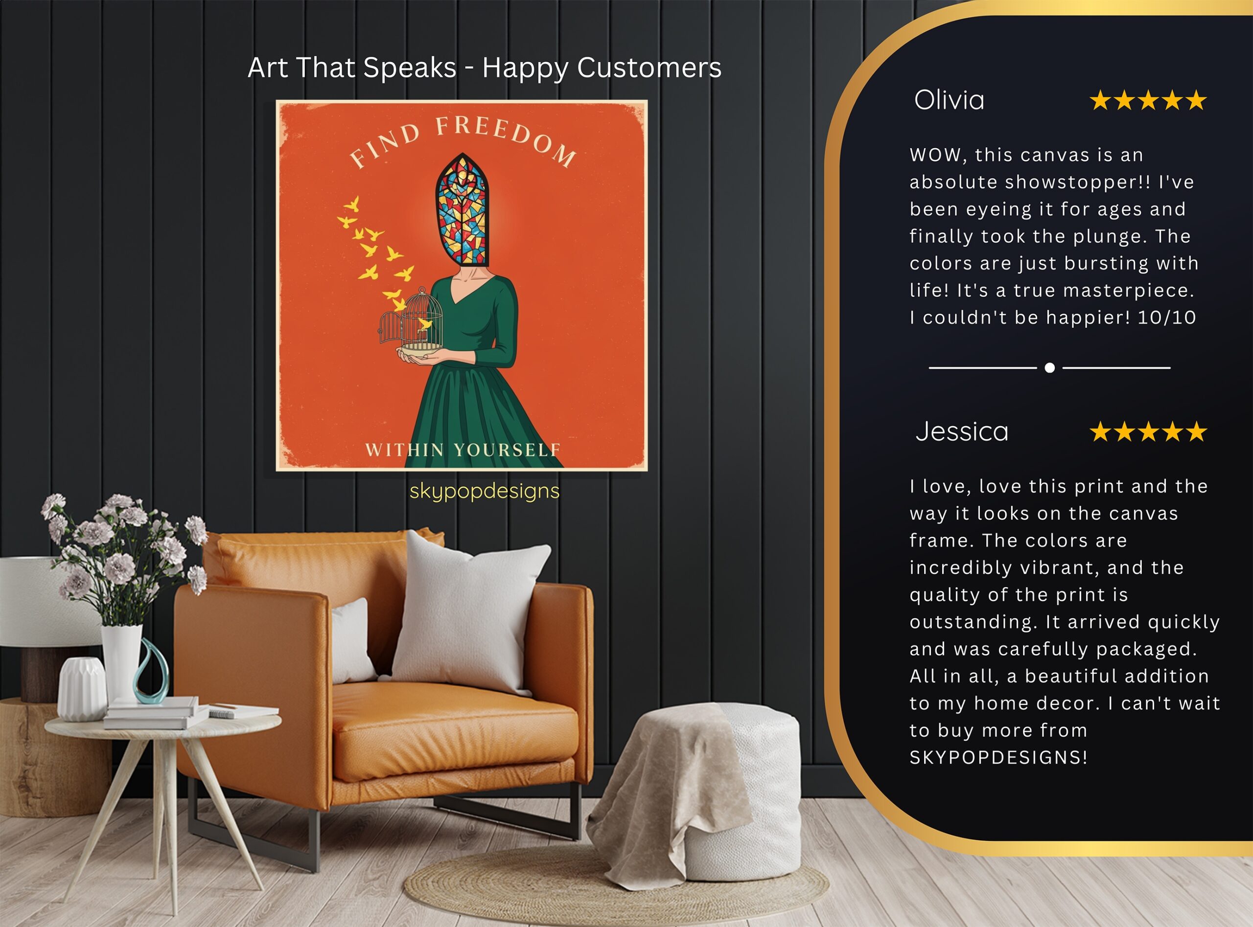 At SKYPOPDESIGNS, we specialize in high-quality canvas and poster prints designed to bring sophistication and style to your space. Please note that our designs are not created with 3D textures or as original oil, acrylic, or watercolor paintings; they are instead HD reproductions of original artwork. This approach allows us to offer these visually stunning pieces at competitive prices, ensuring you receive top-tier, maintenance-free art that’s easy to enjoy.