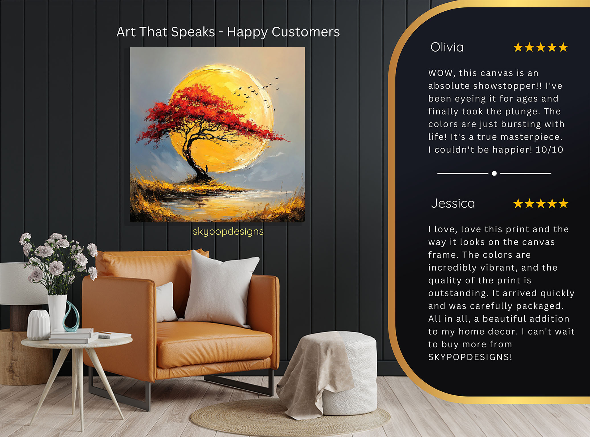 At SKYPOPDESIGNS, we specialize in high-quality canvas and poster prints designed to bring sophistication and style to your space. Please note that our designs are not created with 3D textures or as original oil, acrylic, or watercolor paintings; they are instead HD reproductions of original artwork. This approach allows us to offer these visually stunning pieces at competitive prices, ensuring you receive top-tier, maintenance-free art that’s easy to enjoy.