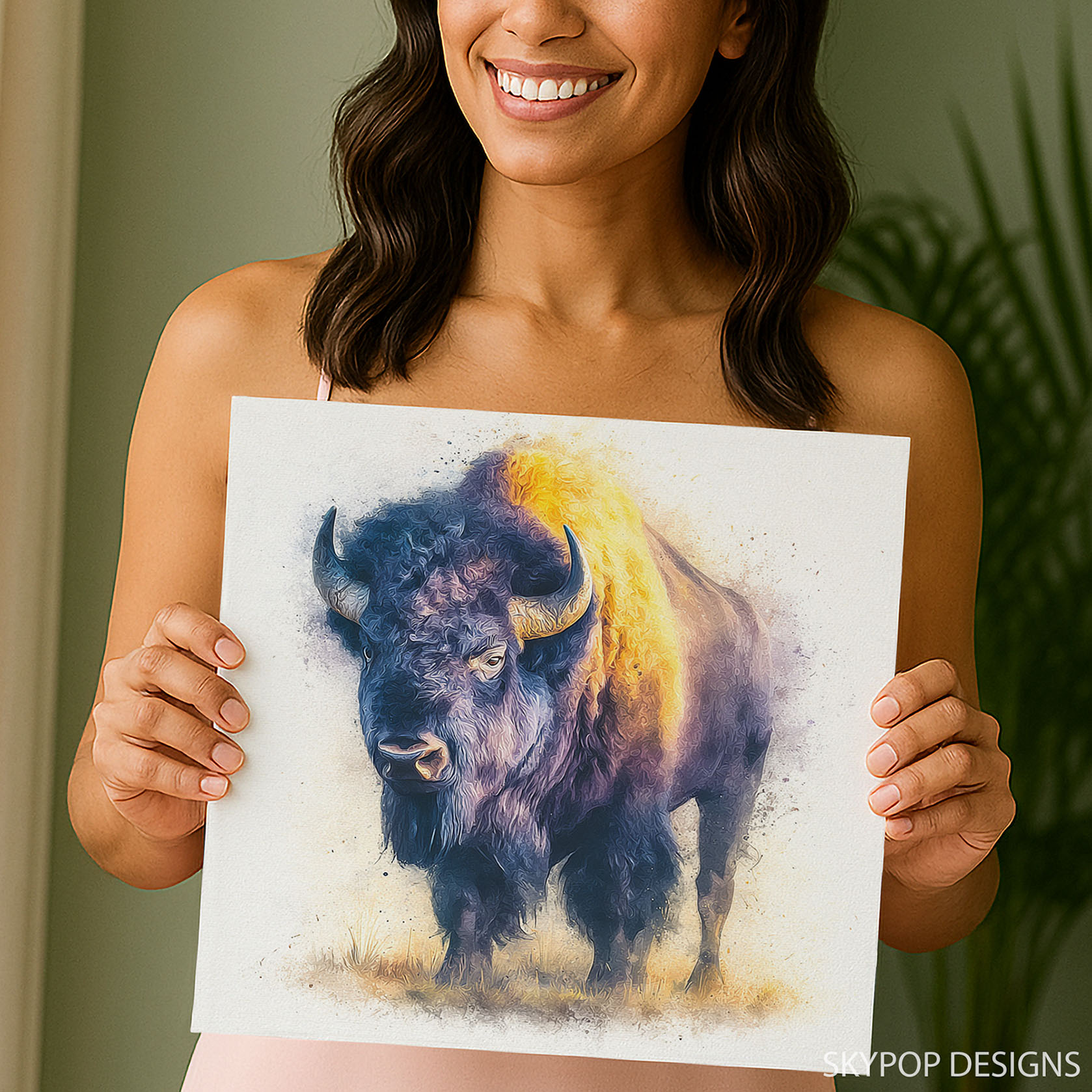 Transform your space with this powerful Bison canvas wall art, capturing the majestic presence of this iconic animal in a contemporary watercolor style. This poster or canvas wall art is perfect for adding a striking focal point to modern living room wall decor, rustic game rooms, or inspiring office spaces. The vibrant gold and deep brown tones evoke the warmth of a sunrise, while the hints of purple and black add depth and drama. Ideal for farmhouse and rustic interiors, this animal art piece brings the spirit of the wild into your home. The strong portrayal of the bison, with its textured fur and imposing horns, makes a captivating statement. High-quality printing ensures every splash of color and delicate brushstroke is beautifully preserved. This versatile wall art works wonderfully in entryways or studies, creating an atmosphere of strength and natural beauty. Perfect as a thoughtful housewarming gift or to celebrate nature, it brings lasting impact to any decor. The rich color palette complements natural wood tones and earthy decor, making it a versatile choice. Elevate your home with this animal canvas art that blends rugged authenticity with artistic flair. A must-have for those who appreciate powerful wildlife wall art, this piece will inspire awe and admiration. Showcase the untamed beauty of the American landscape with this stunning Bison artwork today.