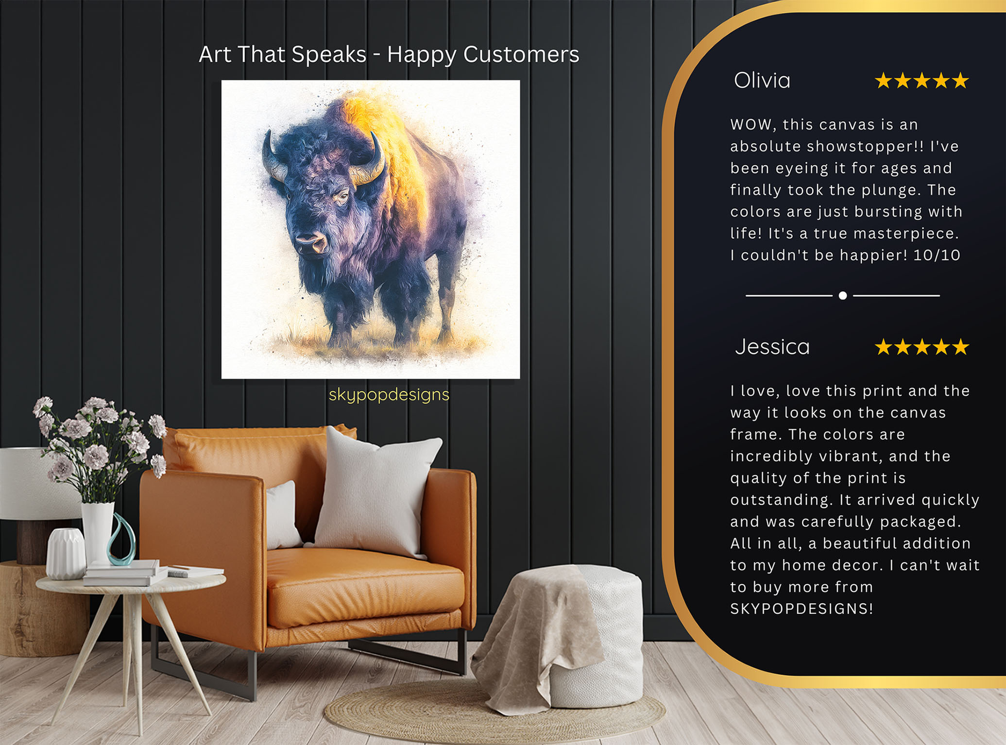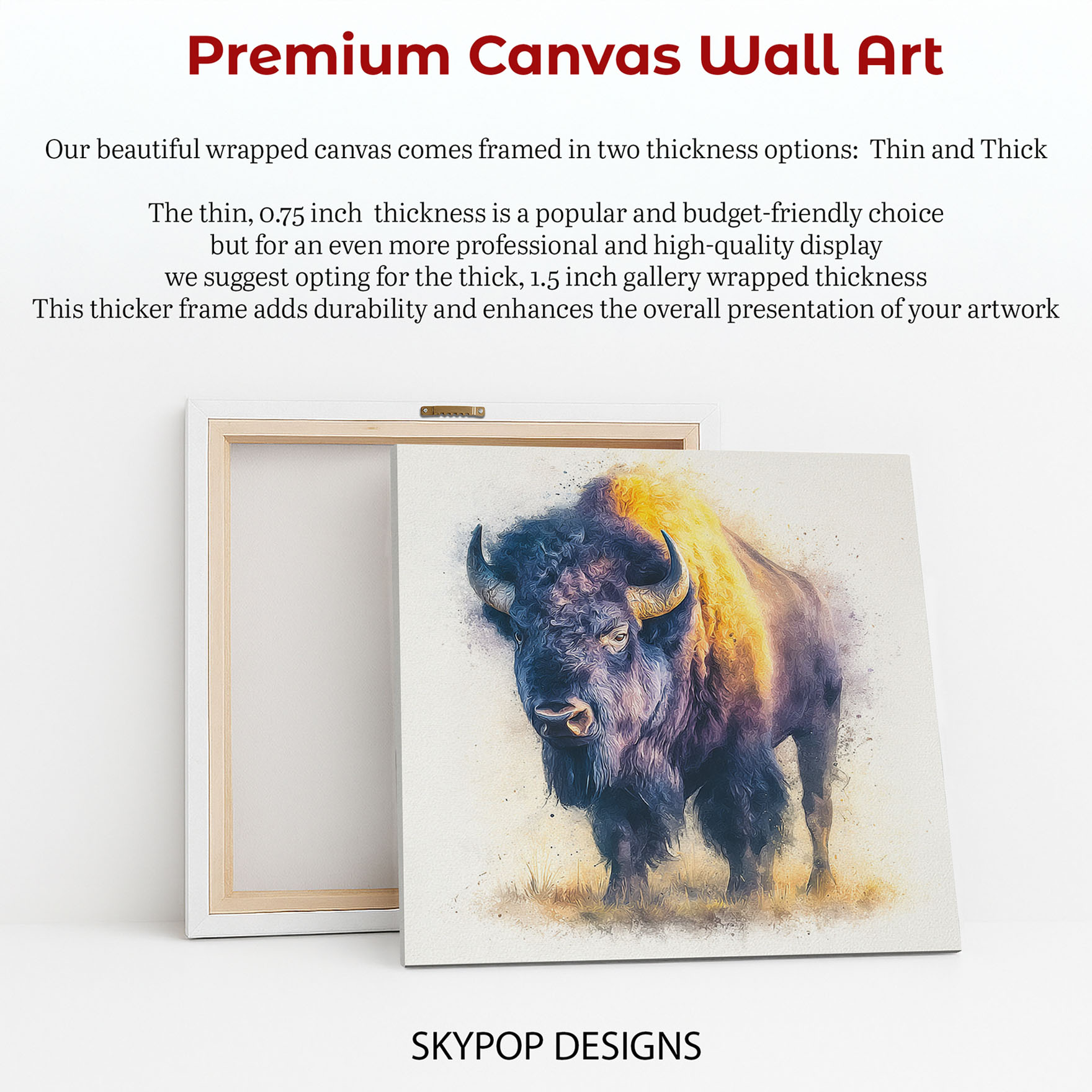 At SKYPOPDESIGNS, we specialize in high-quality canvas and poster prints designed to bring sophistication and style to your space. Please note that our designs are not created with 3D textures or as original oil, acrylic, or watercolor paintings; they are instead HD reproductions of original artwork. This approach allows us to offer these visually stunning pieces at competitive prices, ensuring you receive top-tier, maintenance-free art that’s easy to enjoy.