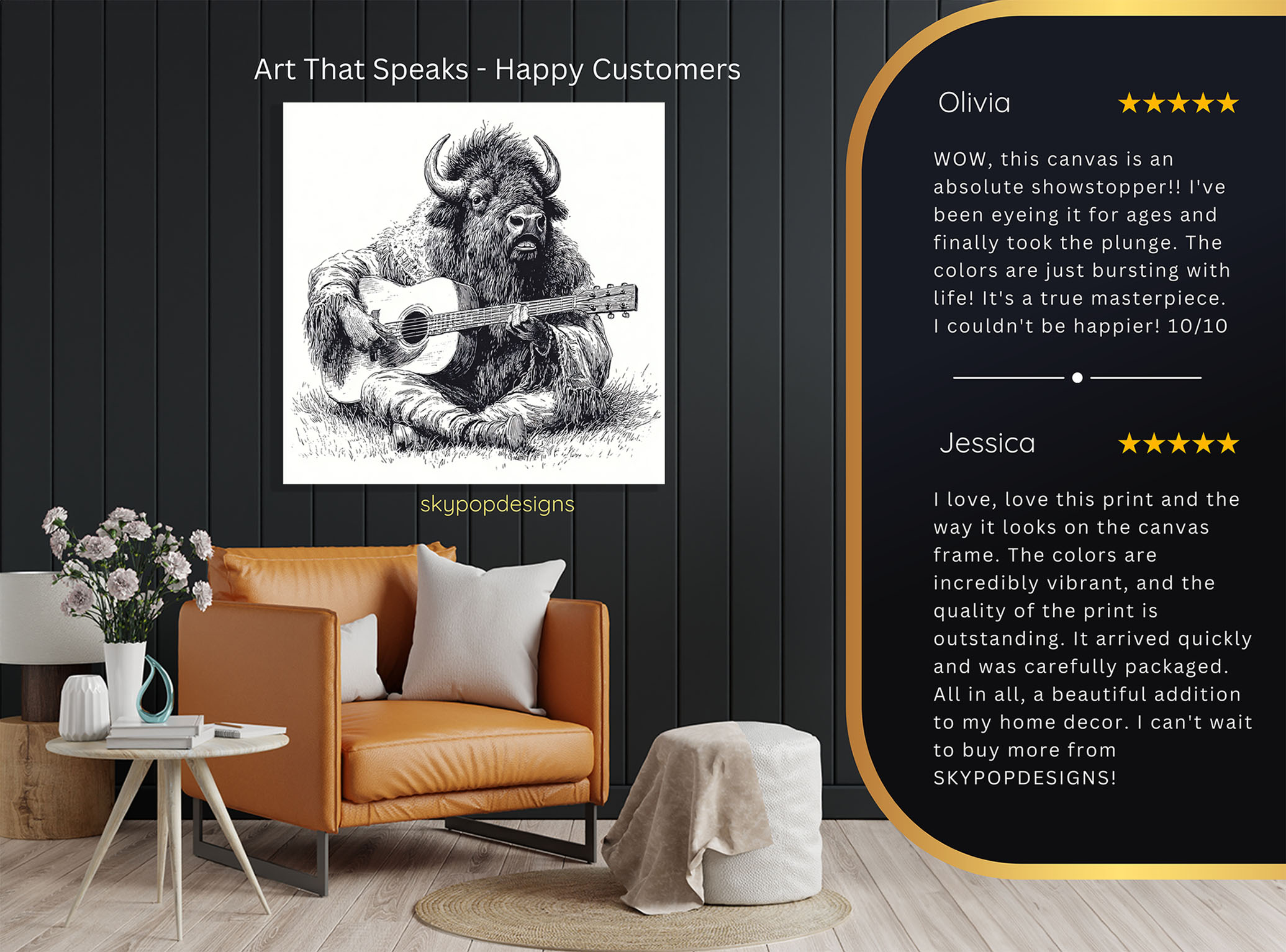 At SKYPOPDESIGNS, we specialize in high-quality canvas and poster prints designed to bring sophistication and style to your space. Please note that our designs are not created with 3D textures or as original oil, acrylic, or watercolor paintings; they are instead HD reproductions of original artwork. This approach allows us to offer these visually stunning pieces at competitive prices, ensuring you receive top-tier, maintenance-free art that’s easy to enjoy.