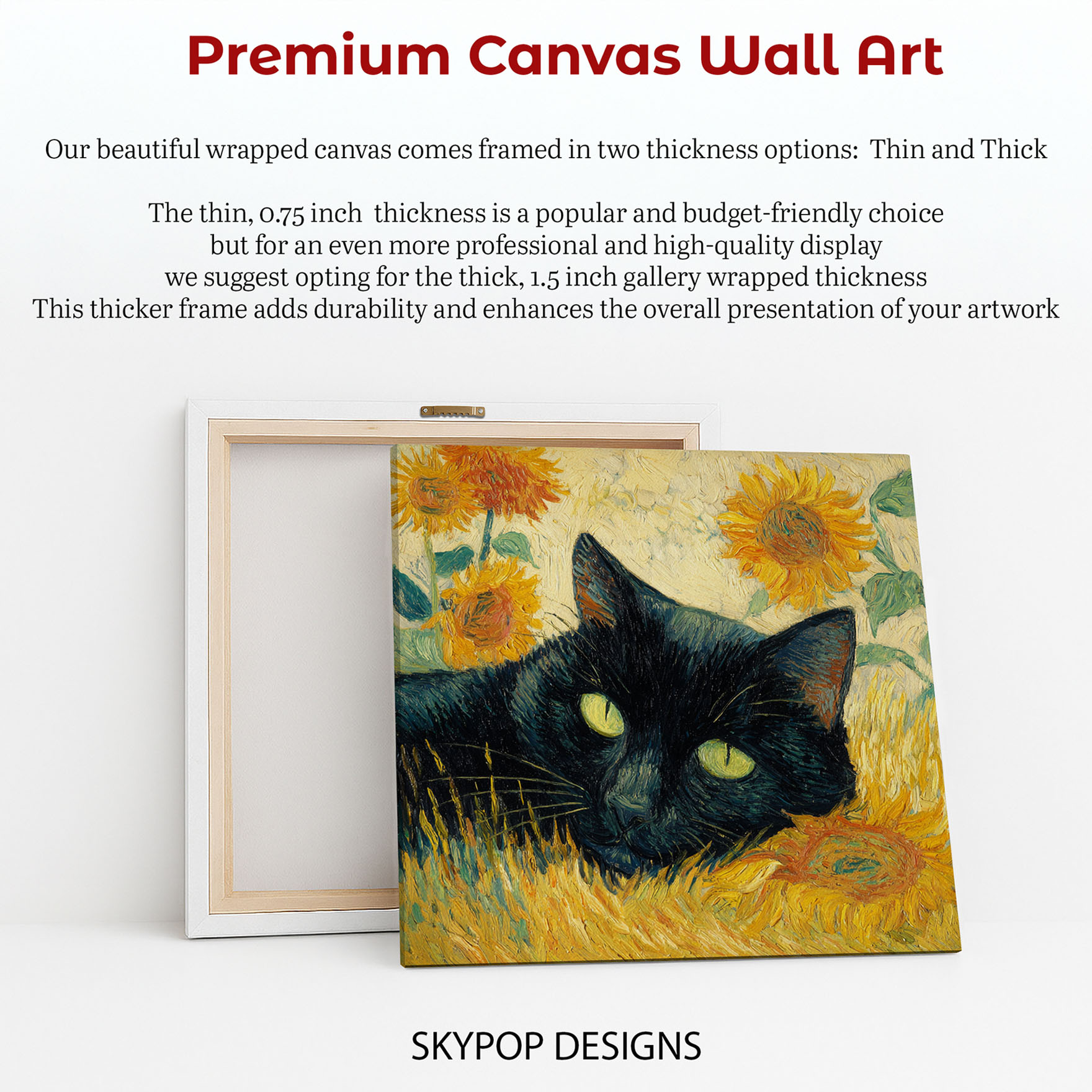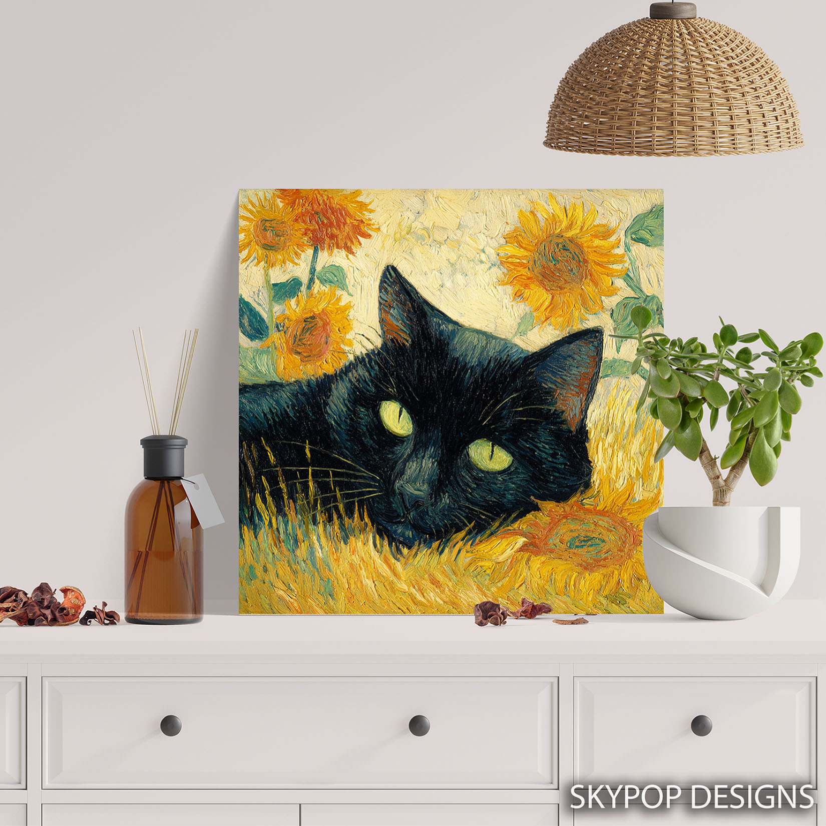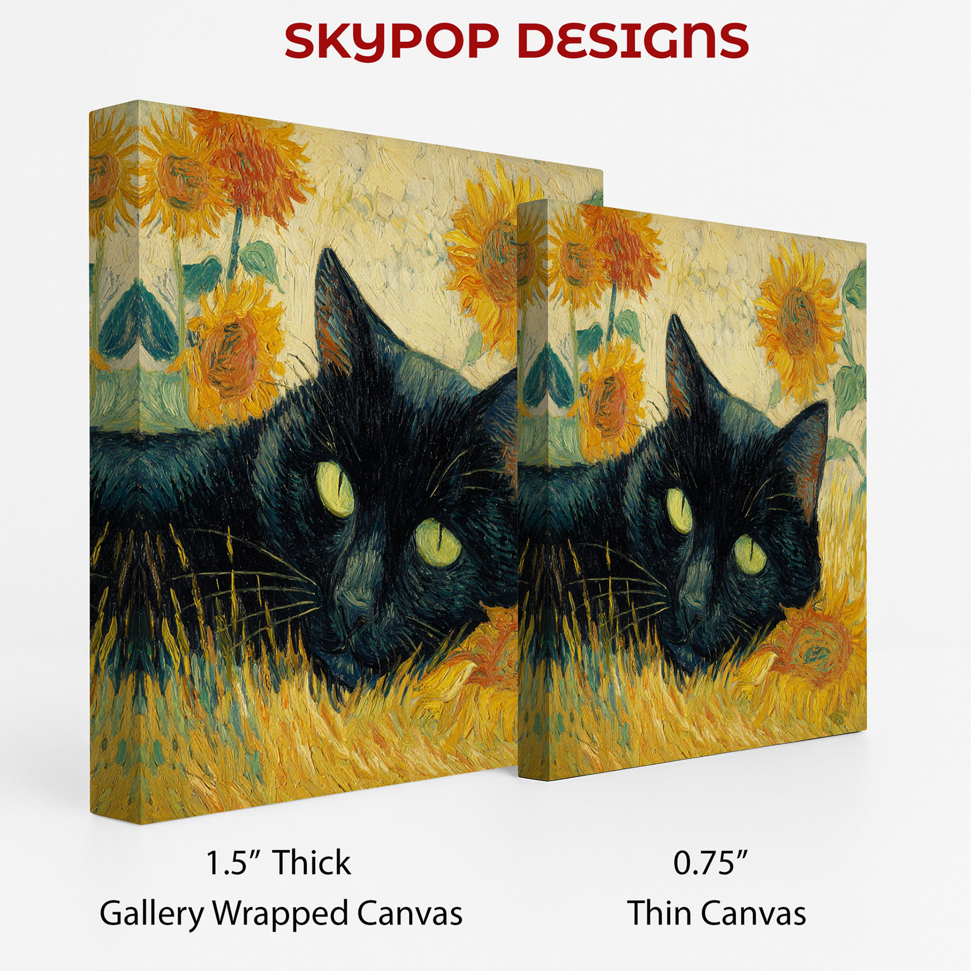 Van Gogh Style Black Cat and Sunflower Garden Canvas Art