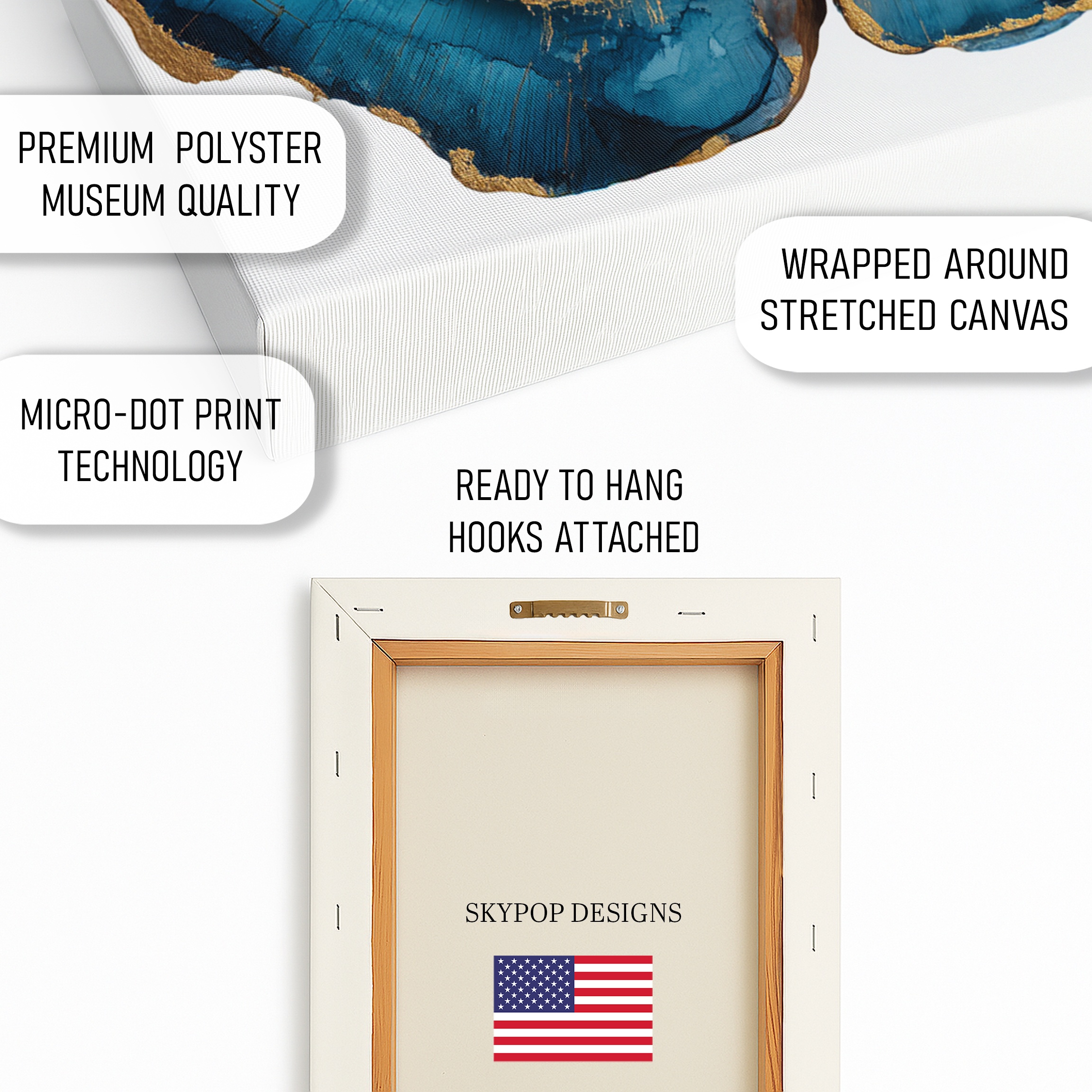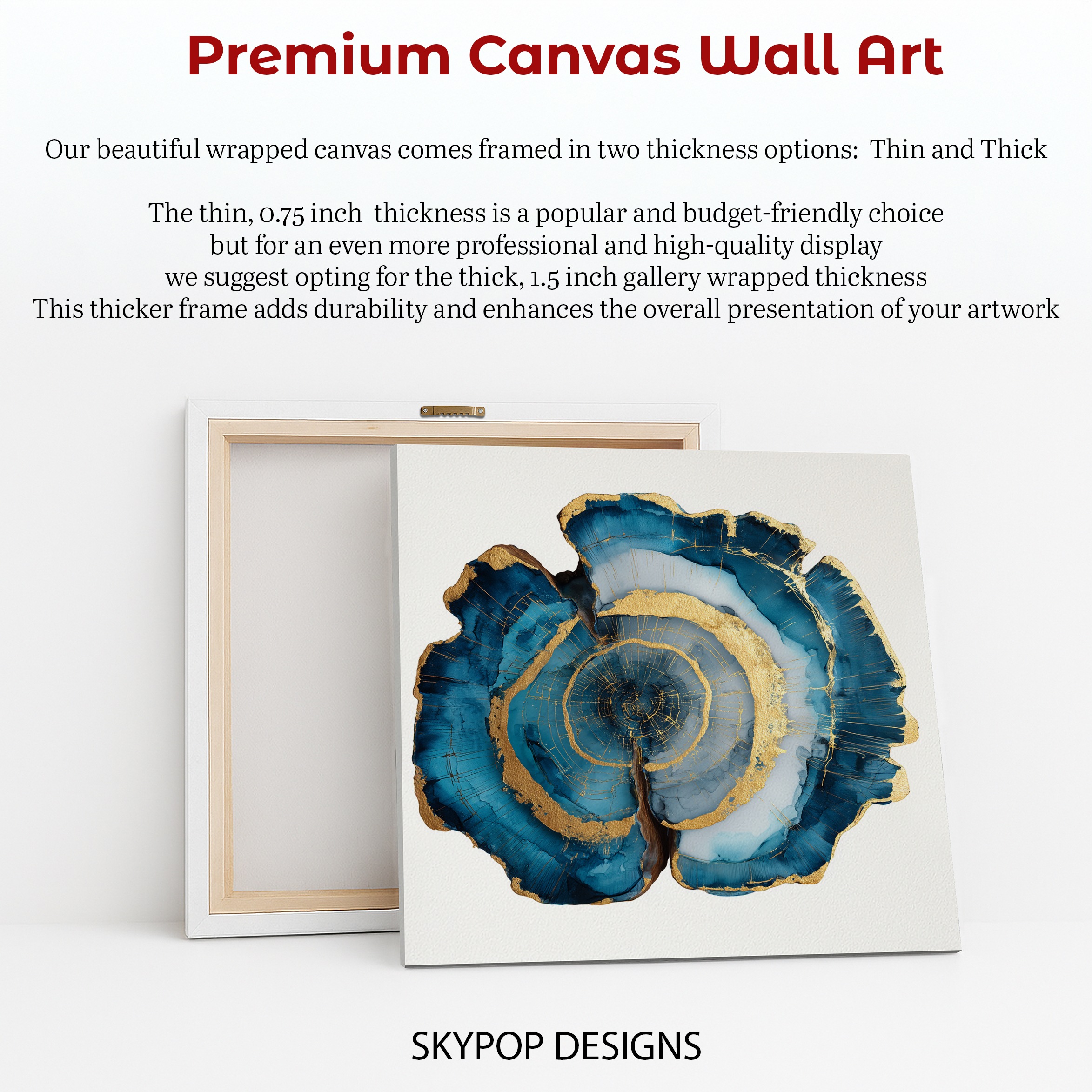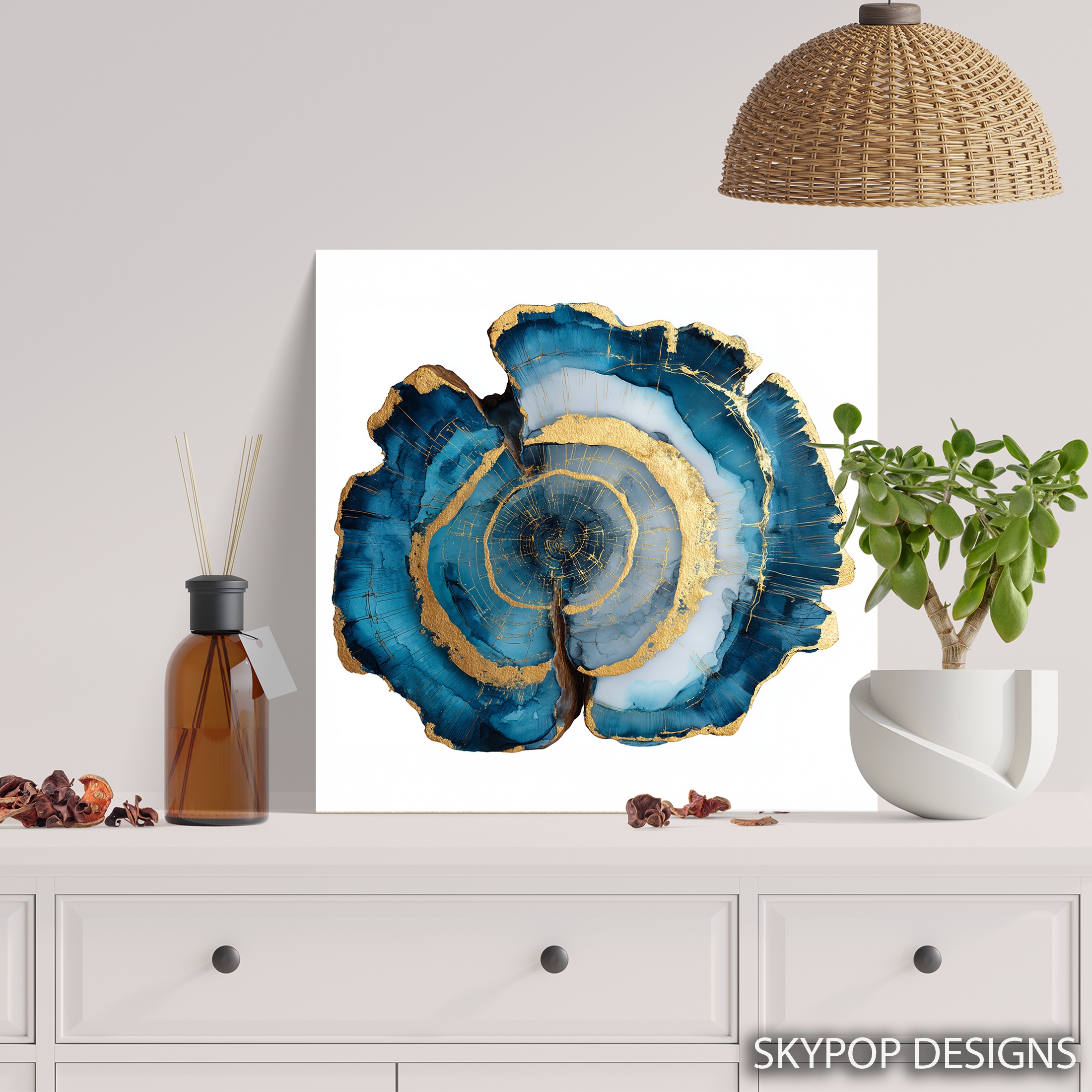 Blue and Gold Agate Art, Canvas or Poster, Abstract Coastal Decor, Living Room Office Bathroom Wall Art, Blue Gold Turquoise White