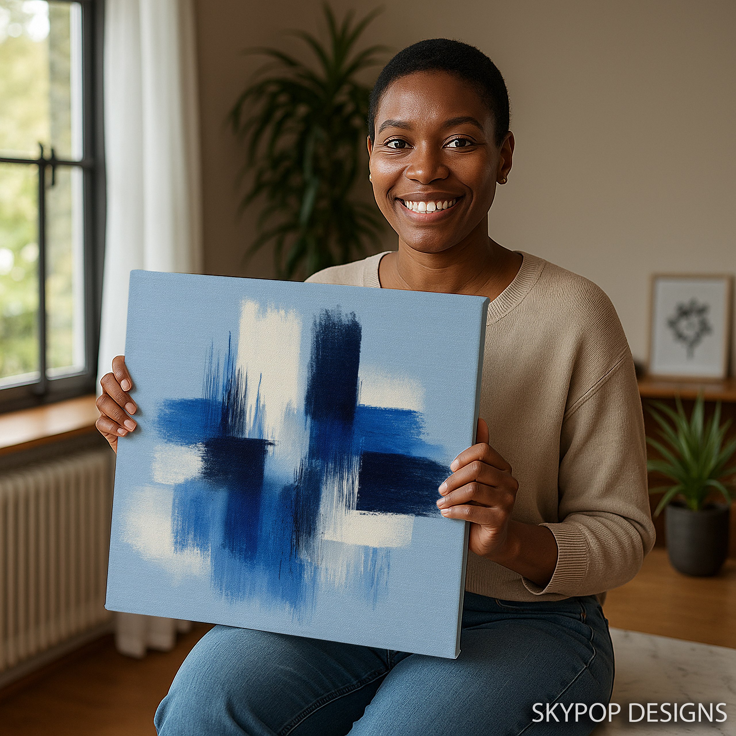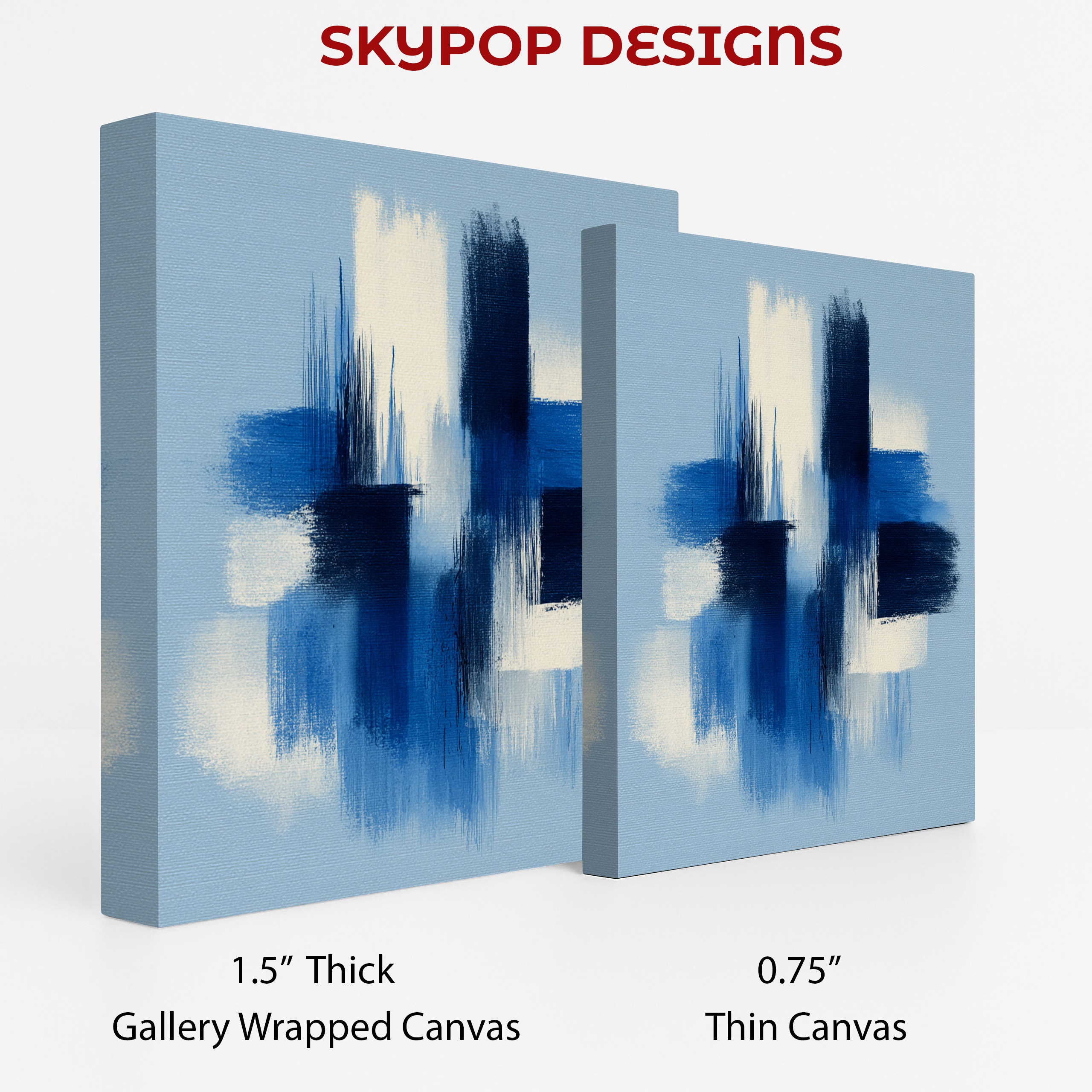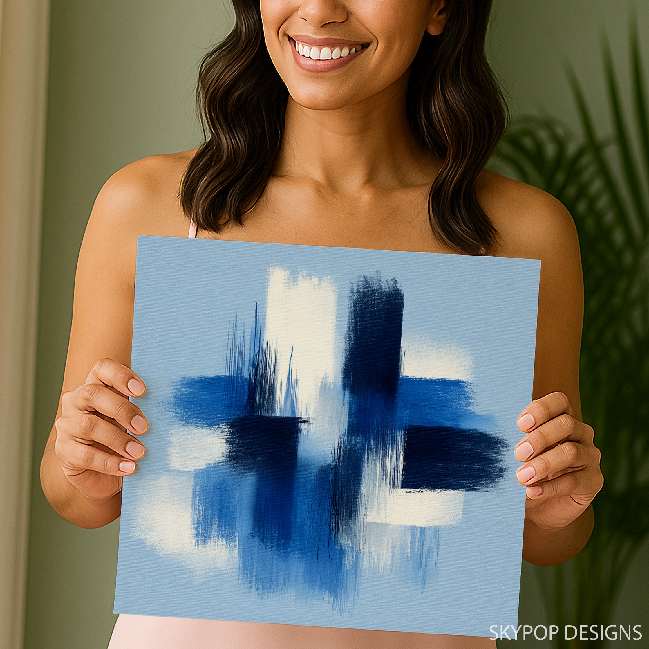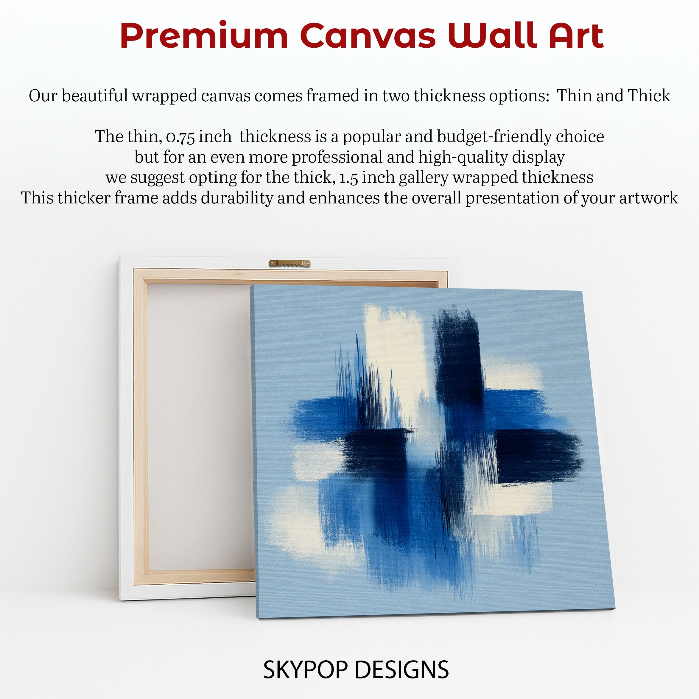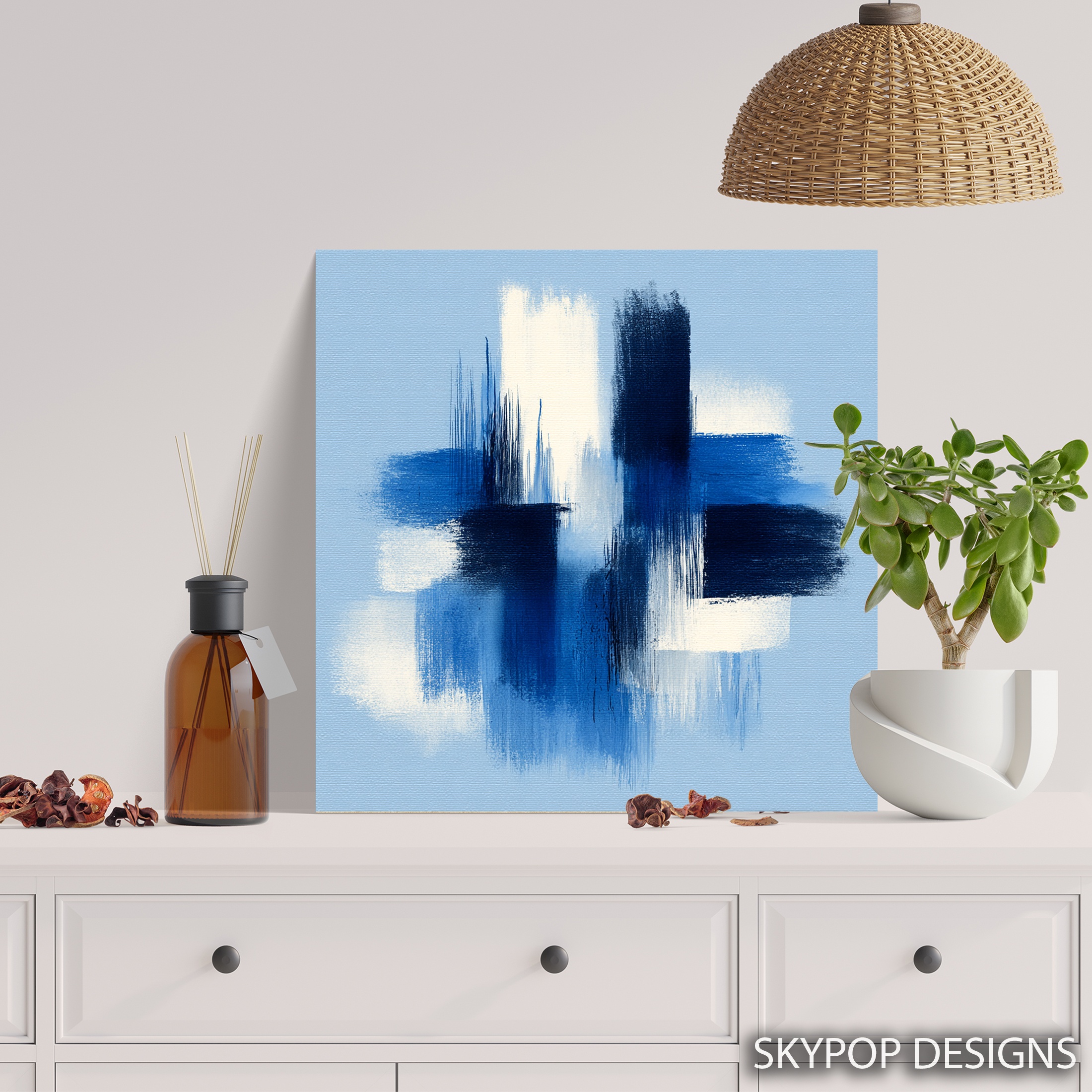 Transform your space with this captivating blue abstract canvas wall art, perfect for modern and minimalist interiors. The striking composition features bold brushstrokes in various shades of blue, from light azure to deep navy, creating a sense of depth and movement. This contemporary poster or canvas print adds a touch of sophistication to any room, making it ideal for living rooms, bedrooms, or home offices seeking a calming yet stylish focal point. The minimalist design allows for versatile placement, complementing Scandinavian decor or adding a pop of color to neutral spaces. The interplay of light and dark blues evokes a sense of tranquility, reminiscent of ocean waves or a clear sky, bringing a serene atmosphere to your home. High-quality printing ensures every brushstroke detail is captured, creating a textured look that adds visual interest from any angle. Whether you’re looking to refresh your bathroom decor or create a statement piece for your living room wall, this abstract blue artwork offers the perfect blend of elegance and simplicity. Its timeless appeal makes it a great gift for art lovers or anyone seeking to elevate their interior design. Available in various sizes, this canvas wall art adapts to different spaces, allowing you to create a personalized gallery wall or make a bold statement with a single large piece. Enhance your home’s ambiance with this versatile and eye-catching blue abstract art today.