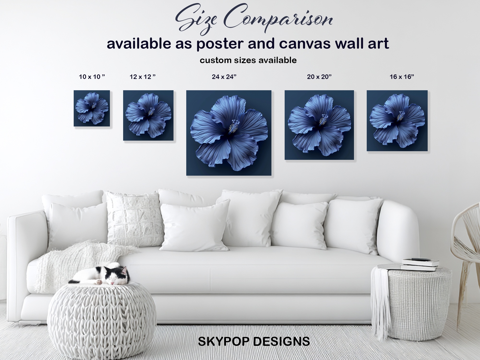 Transform your home with this stunning blue hibiscus canvas wall art, a captivating piece that brings the beauty of nature indoors. This poster or canvas wall art is perfect for adding a splash of serene color to your modern living room or creating a tranquil atmosphere in your bedroom. The deep blue hues evoke a sense of calm and sophistication, making it ideal for minimalist or Asian Zen decor styles. This floral artwork celebrates the intricate details of the hibiscus flower, showcasing its velvety petals and delicate stamen. Elevate your office or entryway with this striking botanical print, which adds a touch of elegance and natural charm. The vibrant blue of the hibiscus flower makes this canvas wall art a focal point, inspiring feelings of peace and creativity. High-quality printing ensures every texture and gradient of the blue petals is vividly captured, making each poster or canvas wall art a masterpiece. This versatile piece is an excellent addition to any home seeking refreshing wall decor. It serves as a perfect gift for housewarmings, birthdays, or any occasion where you want to share the gift of beauty. The rich blue tones complement various color palettes, making this floral art a seamless fit for your interior design. Embrace the calming presence of nature with this exquisite hibiscus canvas wall art. Discover the perfect blend of contemporary style and natural wonder for your walls today.