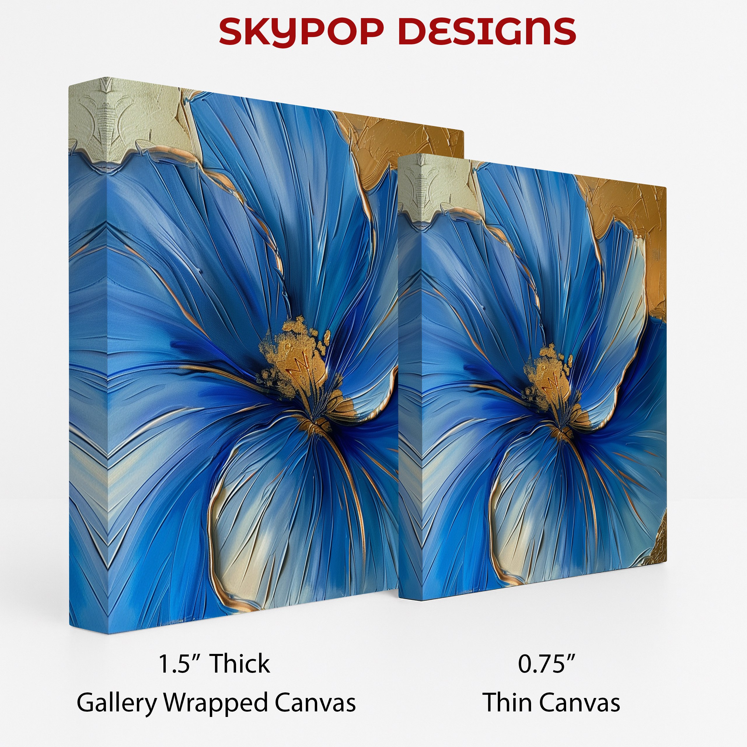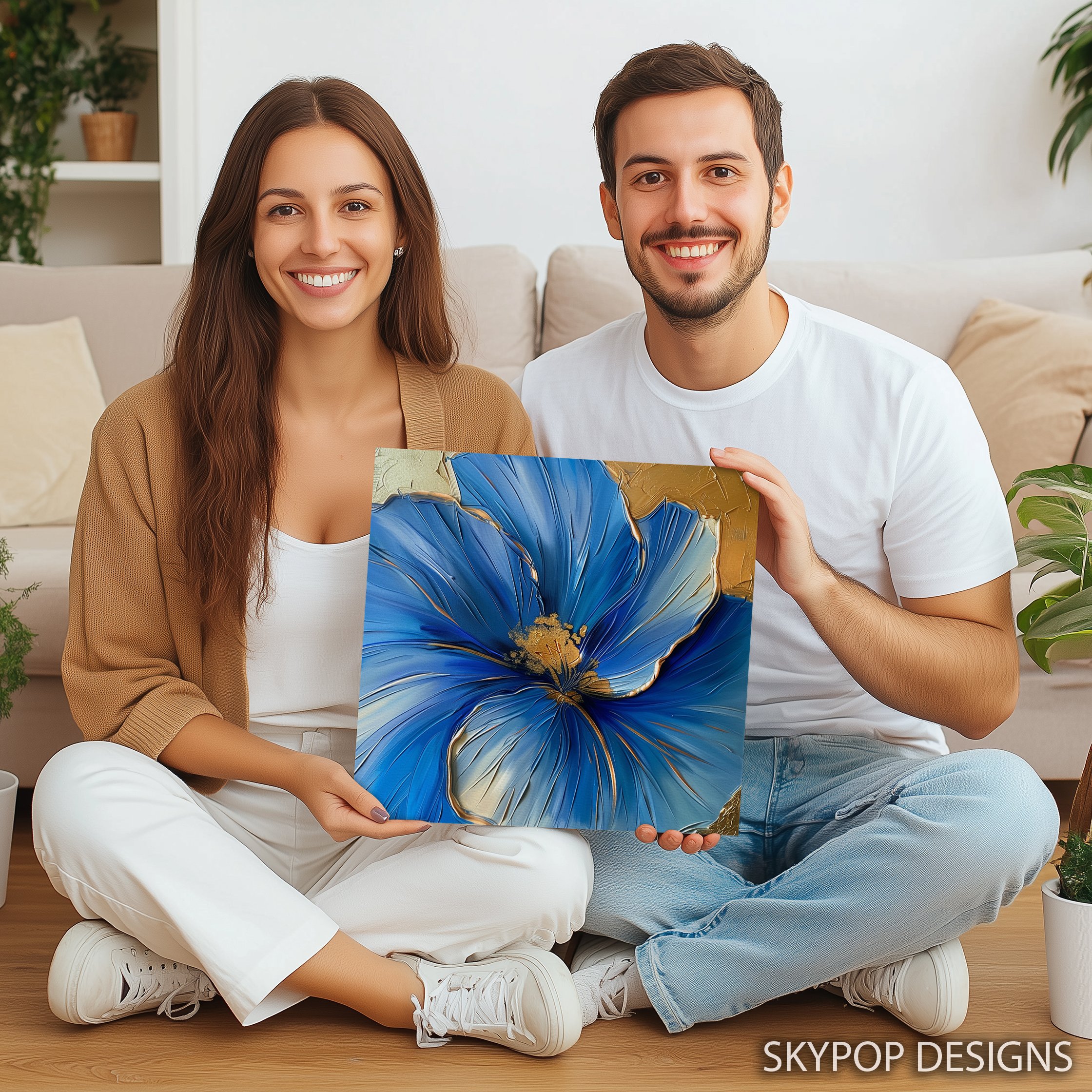 Elevate your space with this stunning blue poppy canvas wall art, a perfect blend of abstract and floral beauty. The vibrant blue petals burst with life against a shimmering gold background, creating a captivating focal point for any room. This modern poster or canvas print transforms ordinary walls into extraordinary showcases of contemporary style. Ideal for minimalist living rooms or glamorous bedrooms, the artwork’s bold colors and fluid lines add depth and movement to your decor. The striking contrast between the cool blue tones and warm gold accents evokes a sense of luxury and sophistication. Perfect for those seeking to enhance their home office with inspiring wall decor or add a touch of elegance to dining room walls. The high-quality printing captures every intricate brushstroke and textured detail, ensuring this piece remains a conversation starter for years to come. Whether you’re refreshing your space or searching for a unique housewarming gift, this versatile canvas art adapts beautifully to various interior styles. The large-scale floral design brings a touch of nature indoors while maintaining a sleek, modern aesthetic. Transform your living space today with this eye-catching blue and gold poppy artwork that seamlessly blends abstract expression with floral charm.