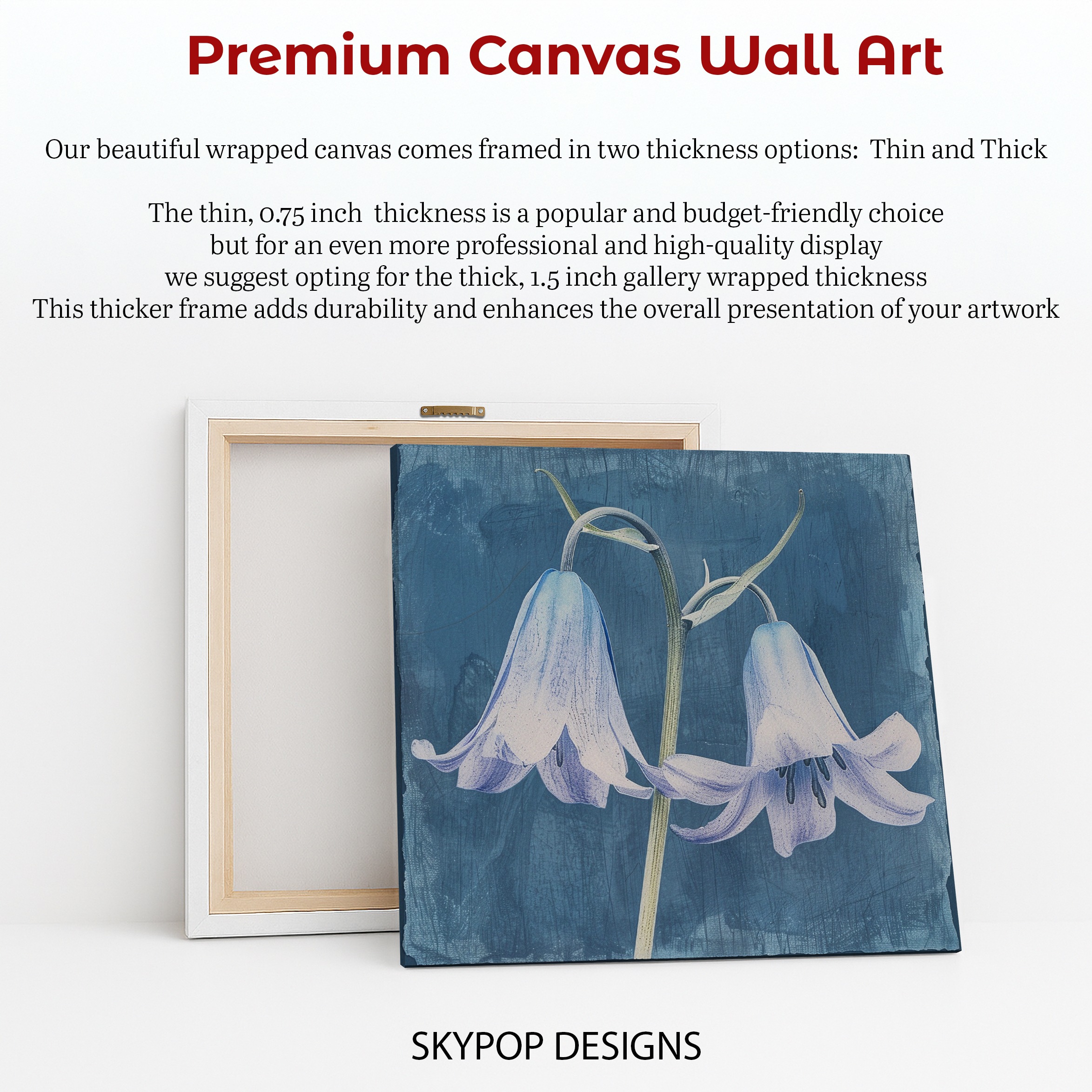Bring the serene beauty of nature indoors with this exquisite Bluebell canvas wall art, perfect for transforming any living space. This stunning poster or canvas wall art features delicate bluebell flowers in a contemporary style, rendered in calming shades of blue and white with touches of green. The striking floral artwork is ideal for modern living room wall decor, adding a touch of minimalist elegance to your home. Its tranquil color palette evokes peace and sophistication, making it a wonderful addition to Scandinavian or minimalist interiors. This versatile piece also enhances the ambiance in bedrooms, hallways, or home offices, creating a refreshing and inspiring environment. High-quality printing ensures every detail of the bluebell’s intricate petals and graceful stem is captured with clarity and depth. Whether you are redecorating your home or looking for a thoughtful gift for housewarmings, birthdays, or holidays, this bluebell canvas wall art offers timeless appeal and lasting beauty. The simple yet captivating design makes it a perfect choice for those who appreciate the understated beauty of nature. Elevate your wall decor with this breathtaking floral art and infuse your surroundings with natural charm and tranquility. Add this stunning Bluebell Blooms canvas art to your collection today and experience the calming influence of nature.