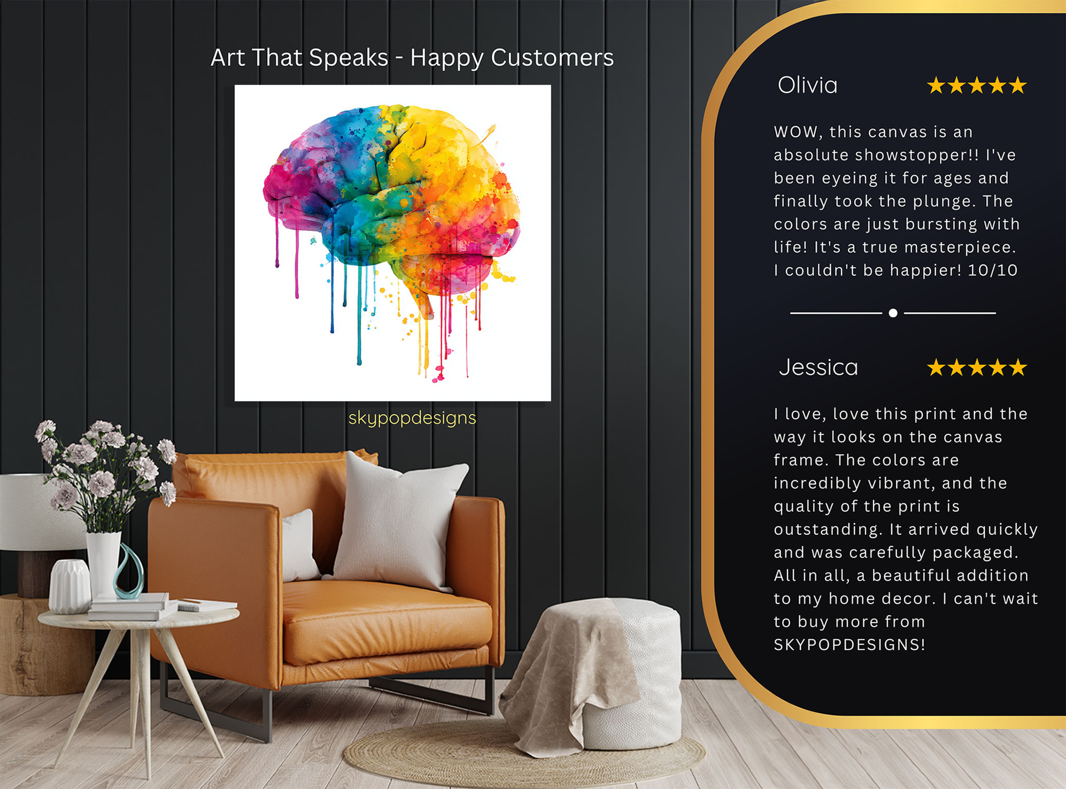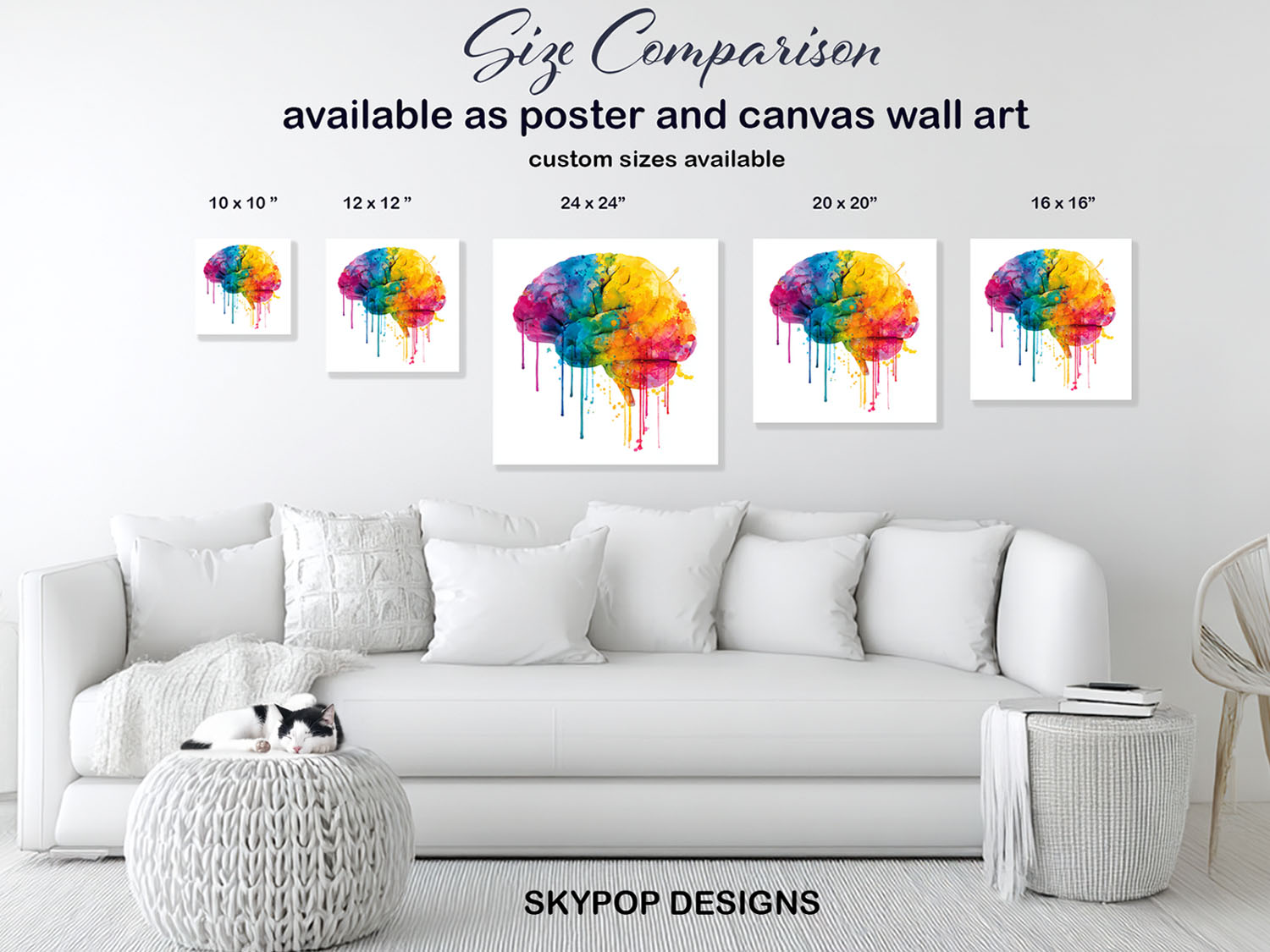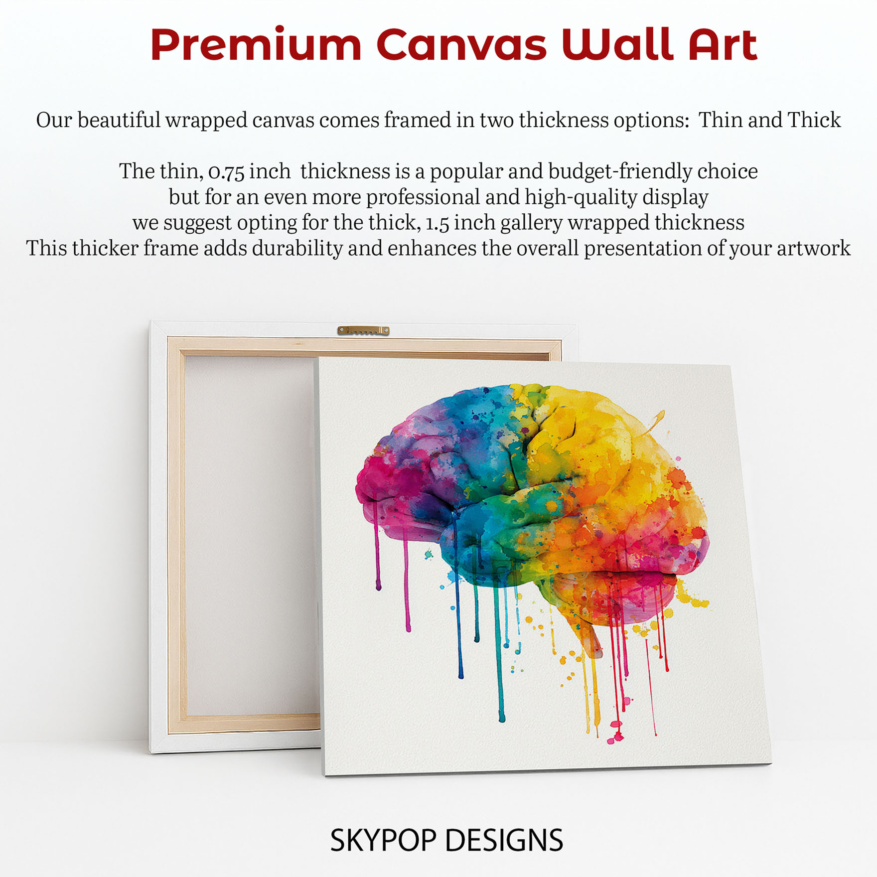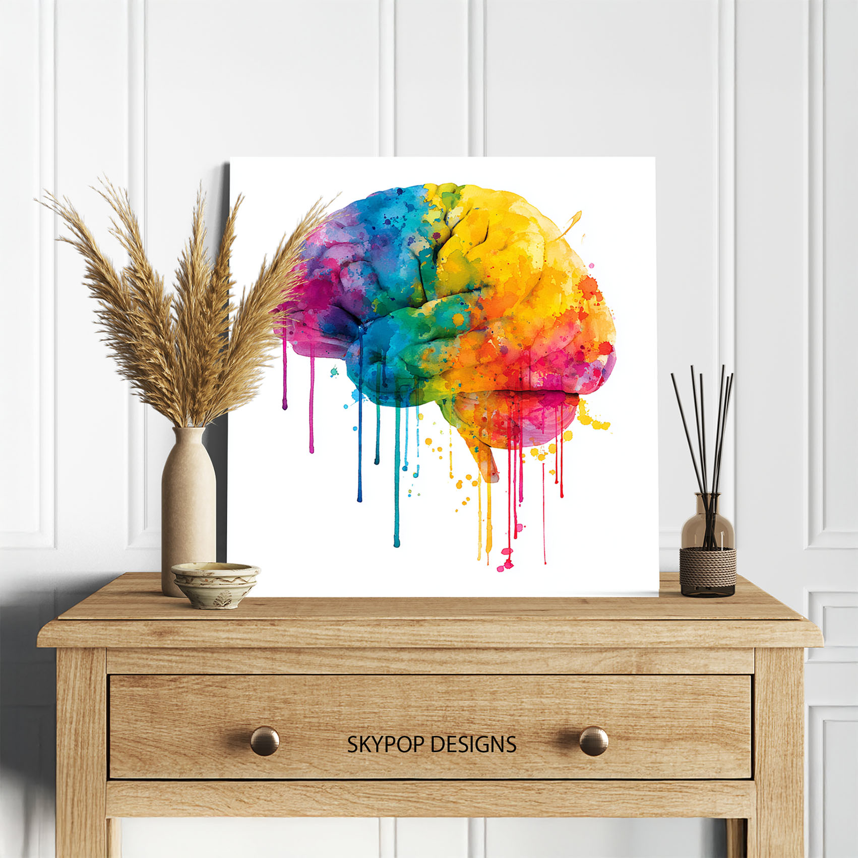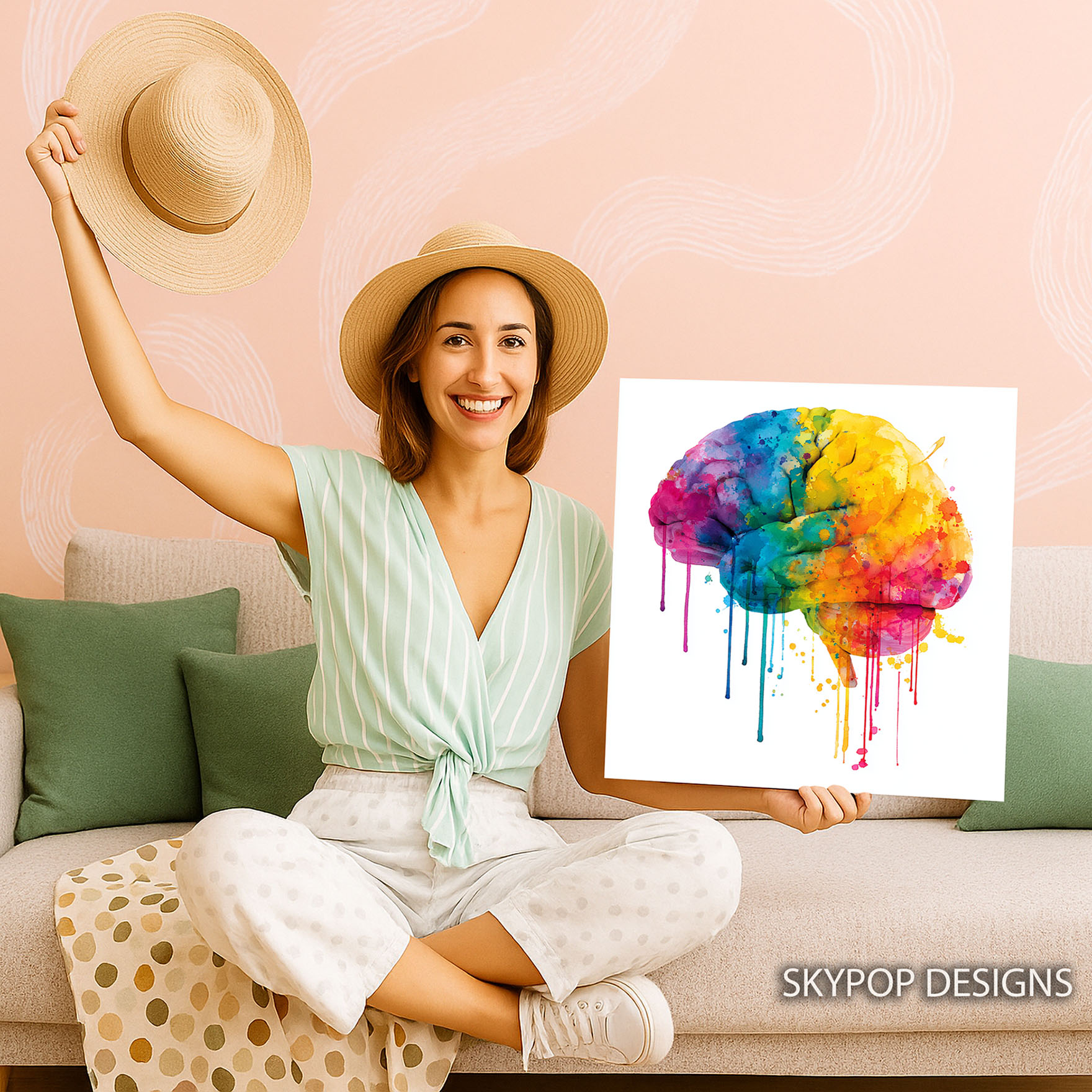Spark your creativity with this vibrant multicolor canvas wall art depicting a colorful human brain. This abstract poster or canvas wall art features a dynamic watercolor splash design, creating a striking and inspirational focal point for any space. The combination of blue, yellow, and pink hues evokes intellectual curiosity and imaginative thinking, making it the perfect addition to modern living room decor or a professional office setting. Its abstract style lends itself beautifully to minimalist interiors, while the bold colors bring energy to contemporary bedrooms. This stimulating artwork is ideal for students, artists, or anyone who appreciates the power of the mind. High-quality printing ensures the vivid colors and textured watercolor effect are captured beautifully on this canvas wall art. This wall art is perfect for adding a unique and thought-provoking element to your home or office walls. Easy to hang and available in various sizes, this poster or canvas print enhances any room’s atmosphere. Celebrate intellect and imagination with this captivating piece, a perfect gift for birthdays, housewarmings, or holidays that encourages bright ideas. Elevate your environment today with this exceptional brain canvas art that inspires innovation and personal growth. This striking artwork is sure to be a conversation starter and a source of daily inspiration.