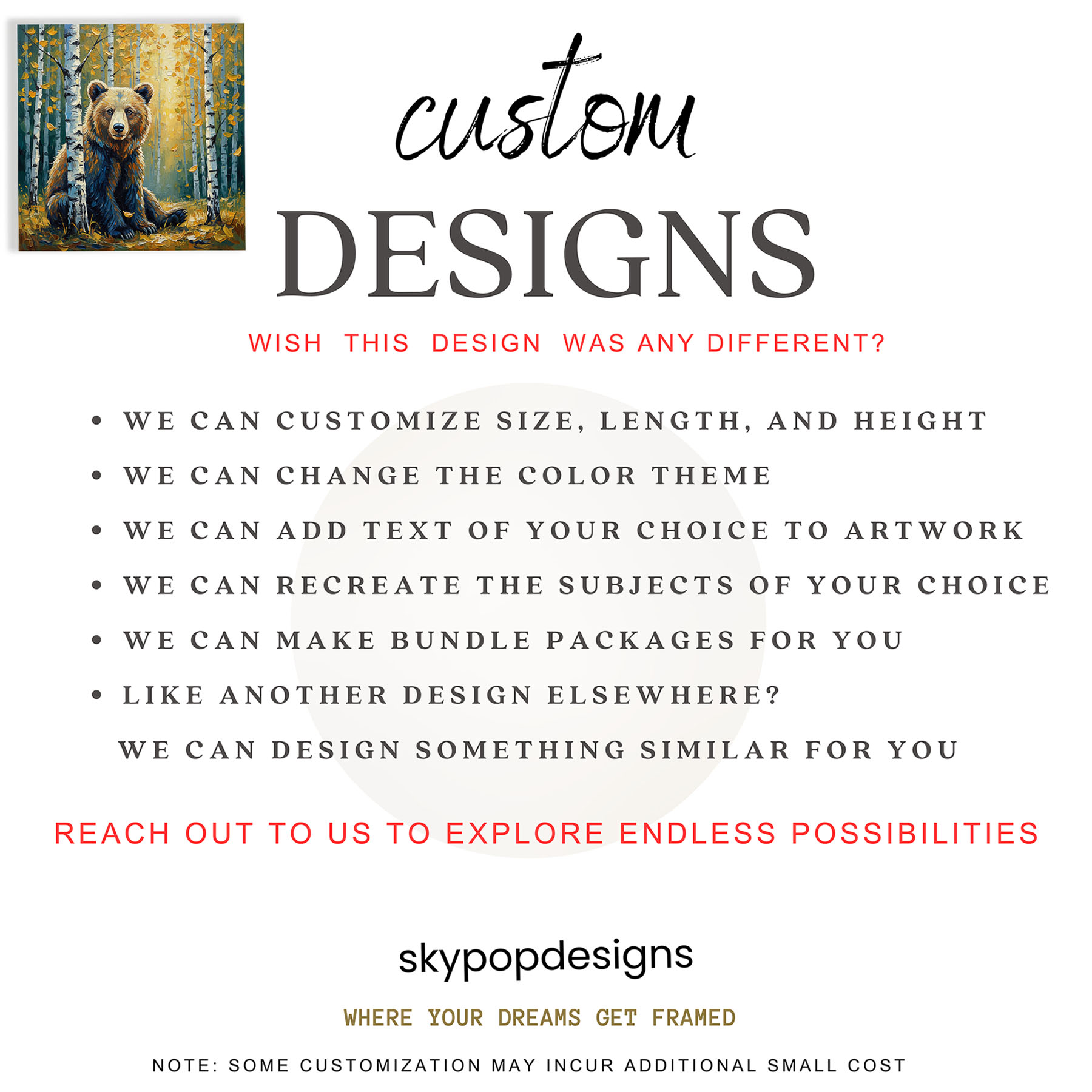 At SKYPOPDESIGNS, we specialize in high-quality canvas and poster prints designed to bring sophistication and style to your space. Please note that our designs are not created with 3D textures or as original oil, acrylic, or watercolor paintings; they are instead HD reproductions of original artwork. This approach allows us to offer these visually stunning pieces at competitive prices, ensuring you receive top-tier, maintenance-free art that’s easy to enjoy.