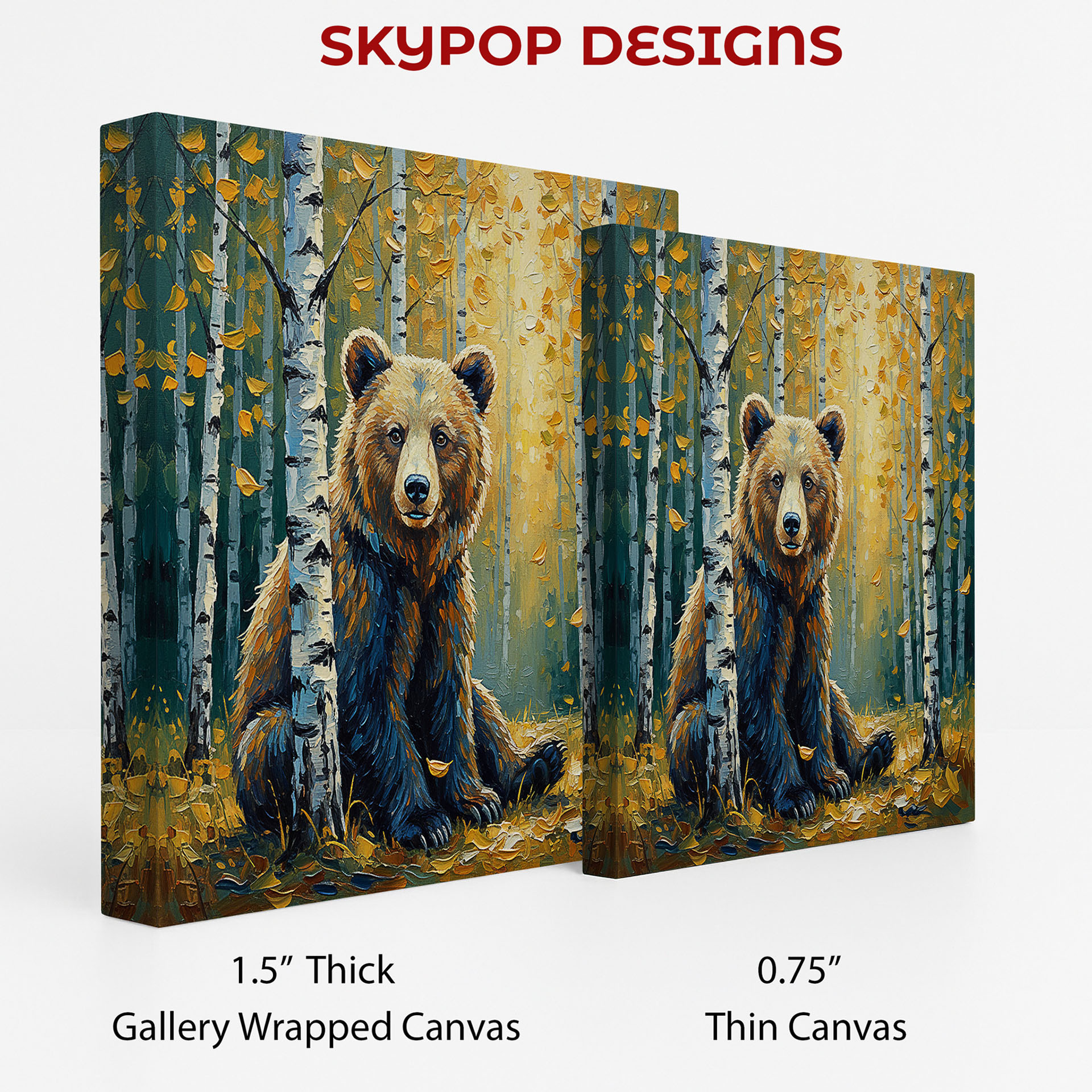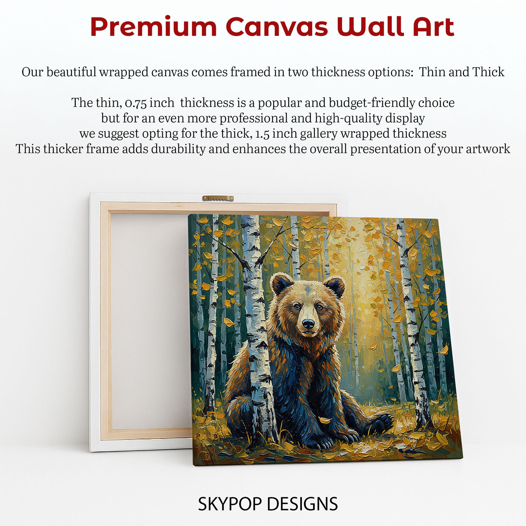 Bring the serene beauty of nature into your home with this captivating bear canvas wall art, showcasing a majestic brown bear amidst a vibrant autumn forest.