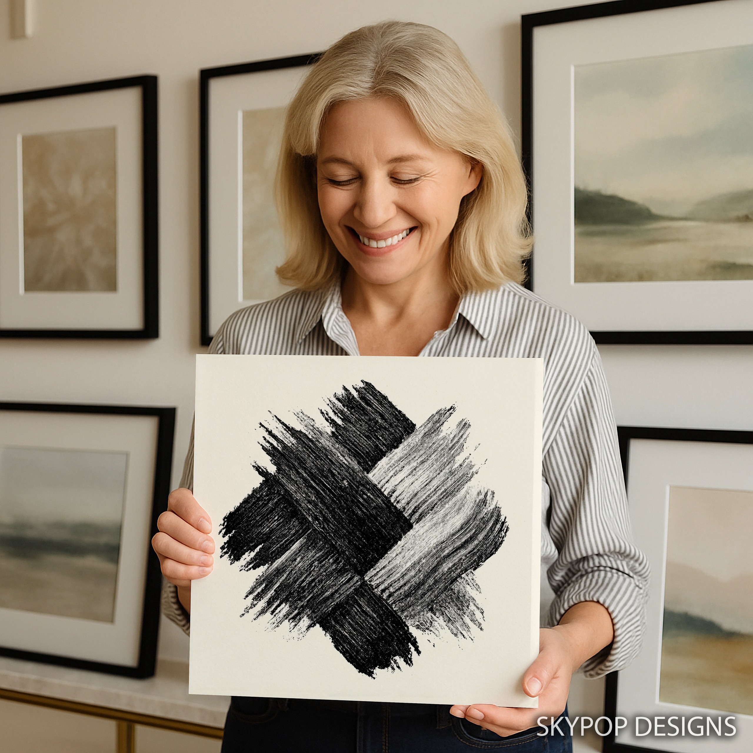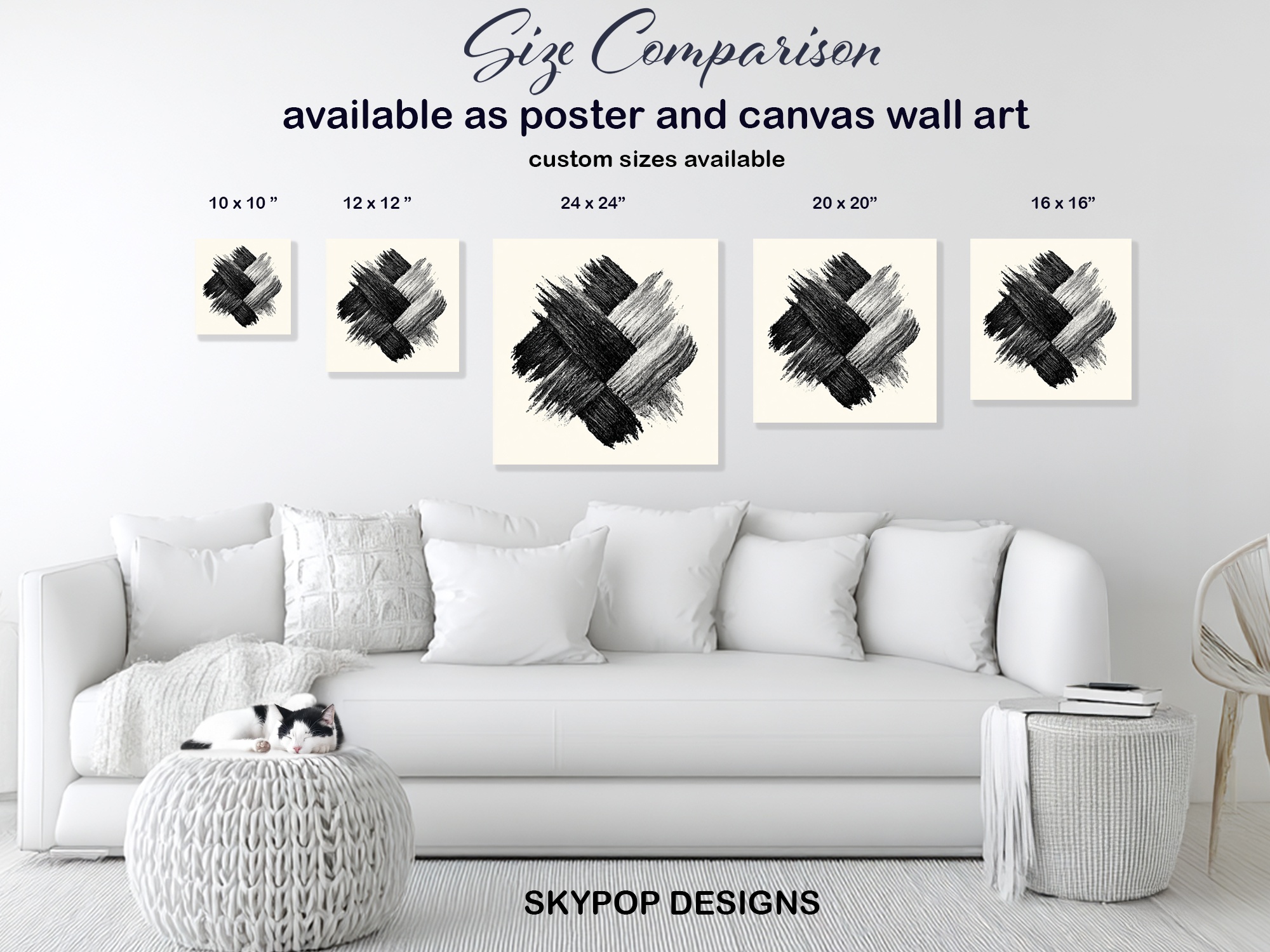 Transform your space with this striking black and white brushstroke canvas wall art. This contemporary piece features bold, dynamic strokes that create a powerful visual impact, perfect for modern and minimalist interiors. The stark contrast between deep black and crisp white evokes a sense of drama and sophistication, making it an ideal focal point for living rooms or offices. As a versatile poster or canvas print, it adapts beautifully to various room sizes and layouts. The abstract design allows for personal interpretation, sparking conversation and adding depth to your decor. Ideal for those who appreciate clean lines and graphic elements, this artwork complements Scandinavian-inspired spaces and adds interest to monochromatic color schemes. The textured appearance of the brushstrokes adds a tactile quality, inviting closer inspection and appreciation. Whether displayed in a sleek bedroom, minimalist bathroom, or contemporary dining area, this piece elevates the aesthetic with its timeless appeal. The high-quality printing captures every nuance of the original artwork, ensuring a long-lasting addition to your home. Perfect as a housewarming gift or to refresh your own space, this abstract canvas art brings a touch of artistic flair to any room. Embrace the power of contrast and make a bold statement with this eye-catching brushstroke wall art today.