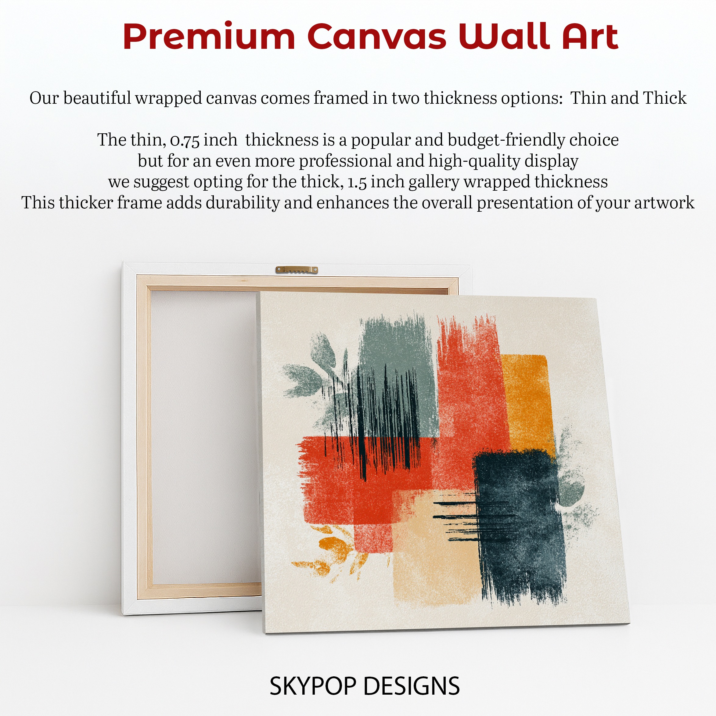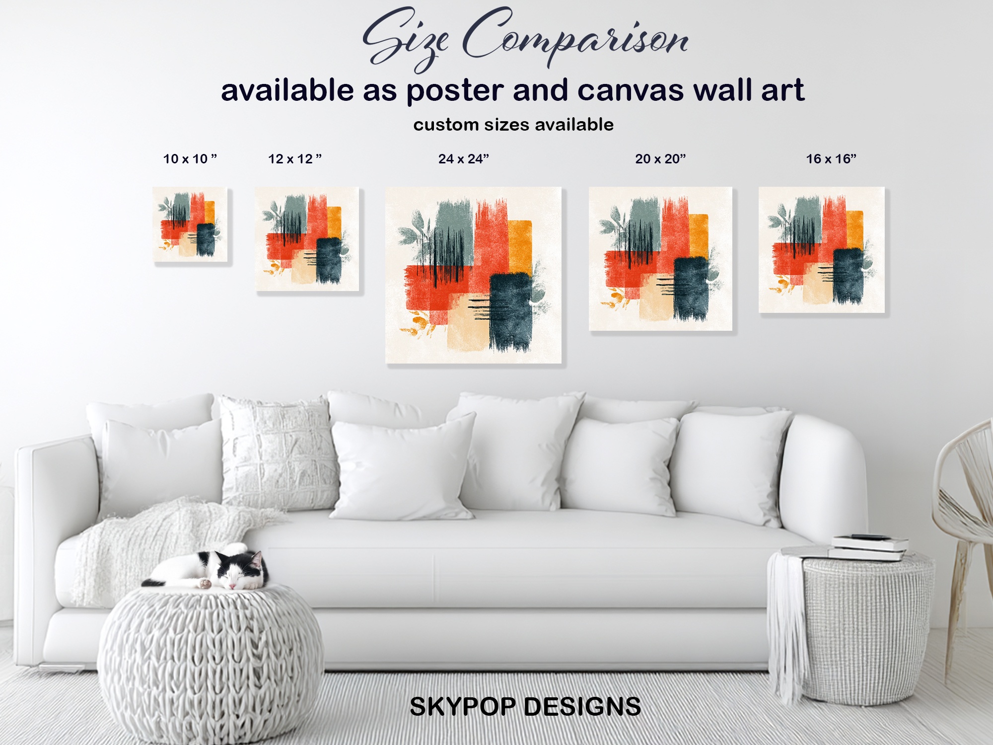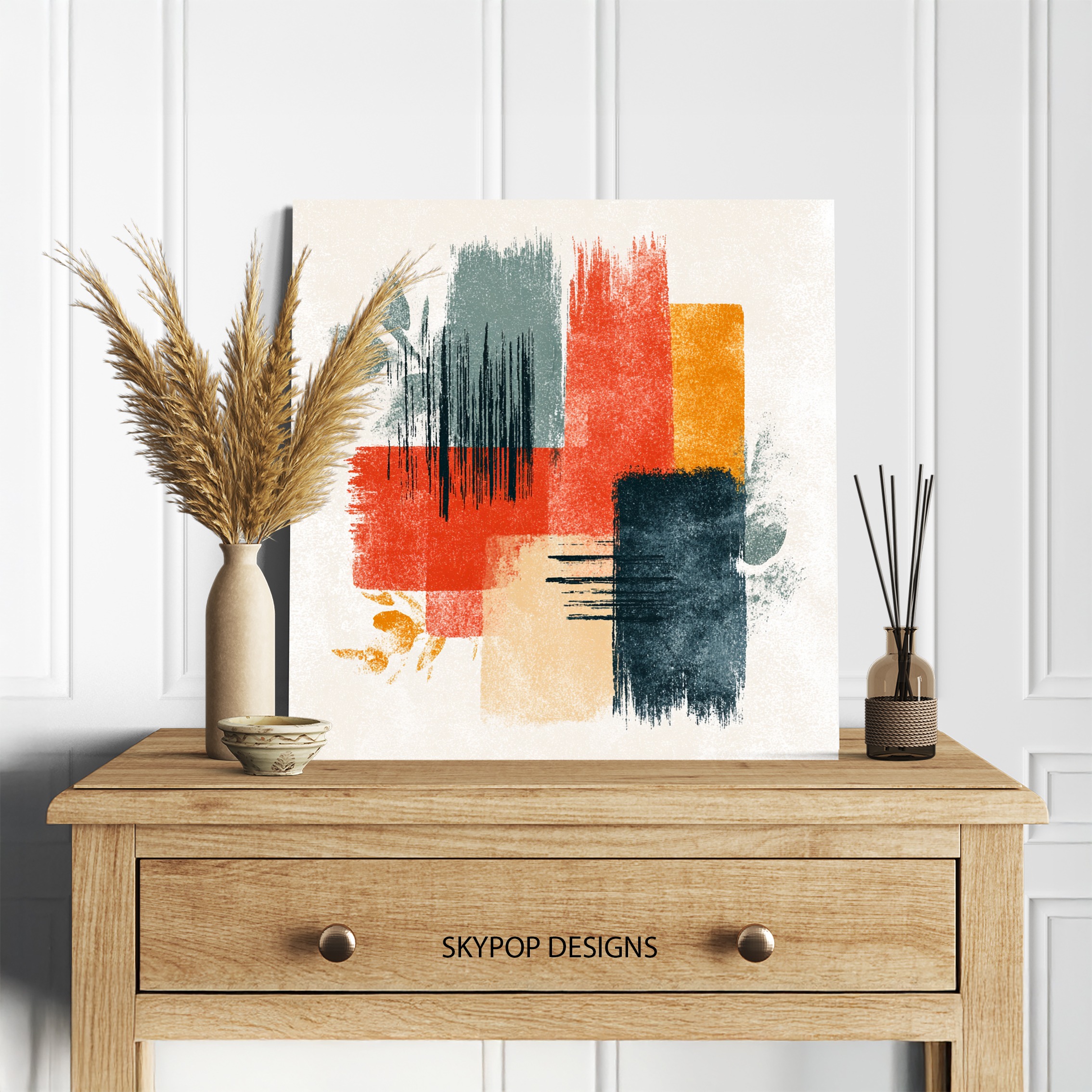 Transform your space with this striking abstract canvas wall art that brings a burst of color and energy to any room. Bold brushstrokes in vibrant red, orange, blue, and yellow create a dynamic composition that instantly catches the eye. This contemporary poster or canvas print is perfect for modern living rooms, sleek offices, or minimalist bedrooms seeking a pop of color. The interplay of warm and cool tones evokes a sense of balance and harmony, making it an ideal focal point for Scandinavian-inspired interiors. The textured appearance of the brushstrokes adds depth and visual interest, inviting closer inspection and contemplation. This versatile piece of wall art complements a variety of decor styles, from ultra-modern to eclectic chic. Its abstract nature allows for personal interpretation, sparking conversation and adding a touch of sophistication to your space. The high-quality printing ensures that every detail of the original artwork is captured, from the subtle color gradients to the expressive brush textures. Whether you’re looking to refresh your home office, elevate your dining room, or add a statement piece to your living area, this canvas art delivers impact and style. Give your walls a contemporary upgrade with this eye-catching abstract print that celebrates color, movement, and artistic expression. Enhance your home’s aesthetic today with this captivating piece of modern wall decor.