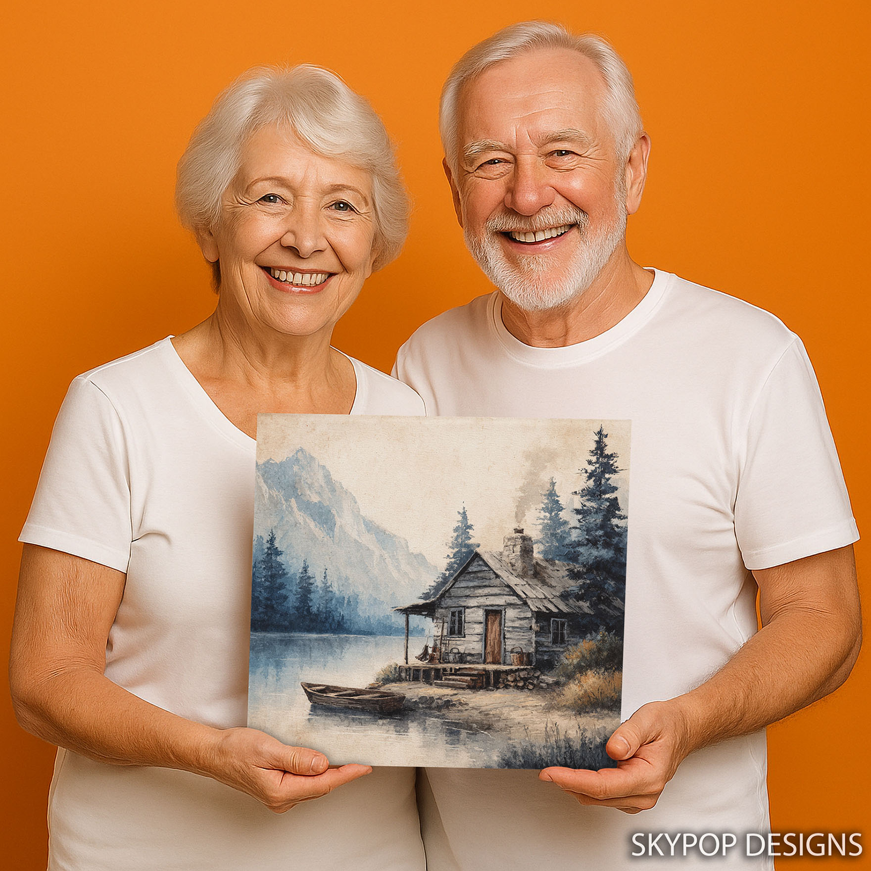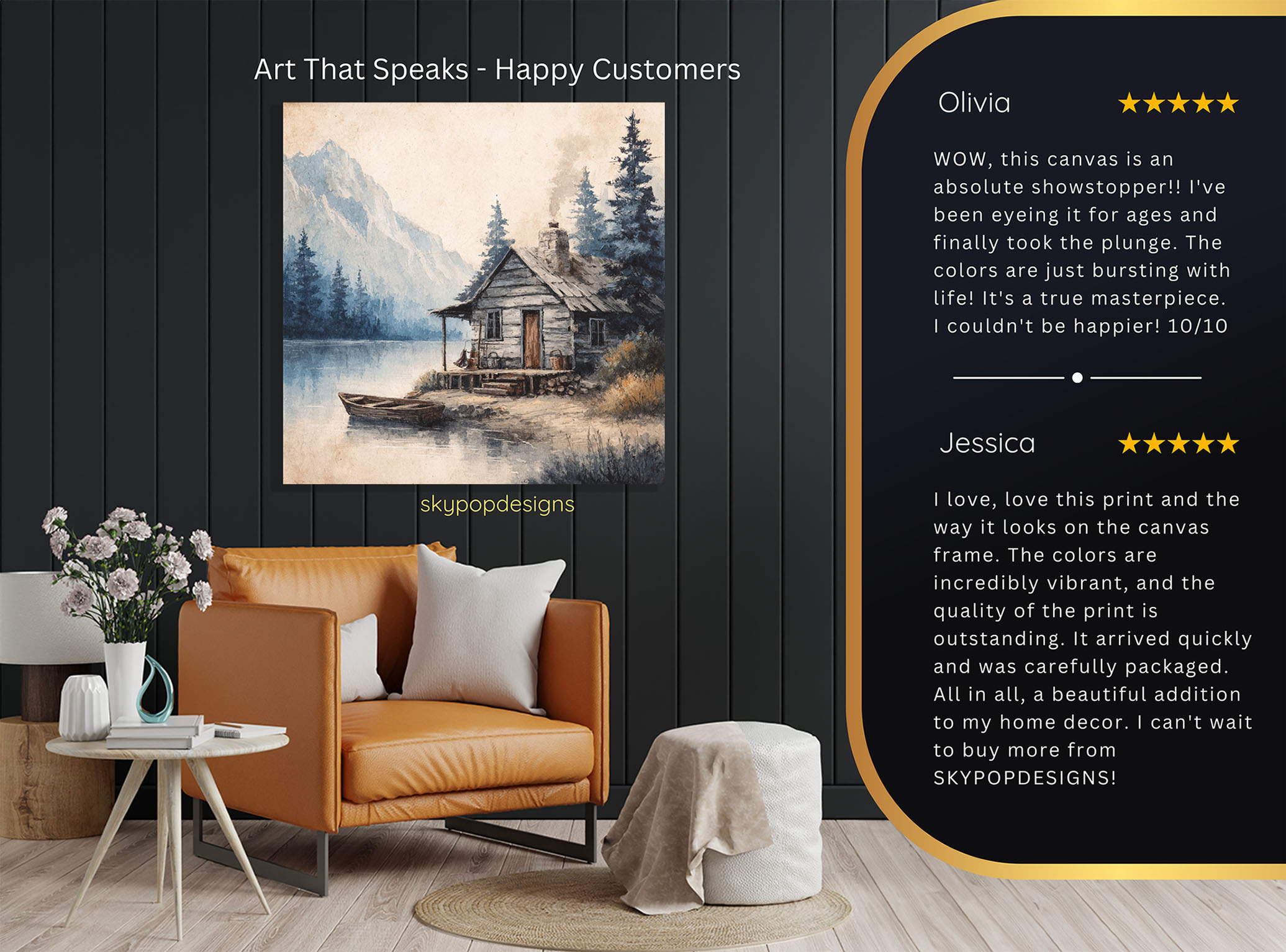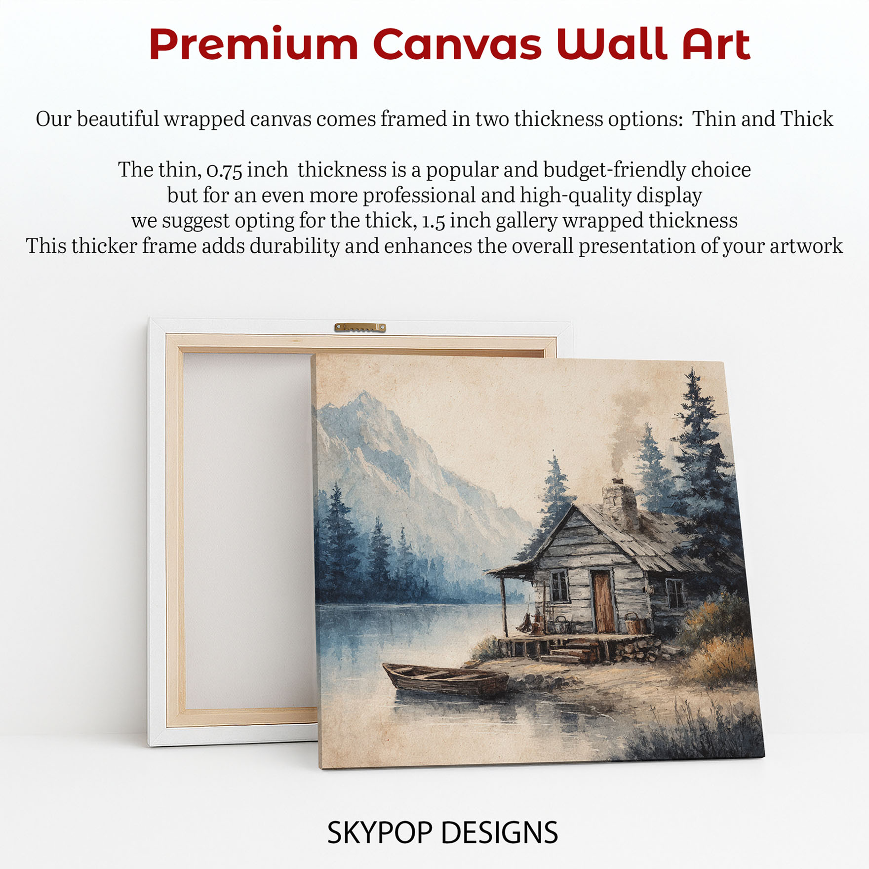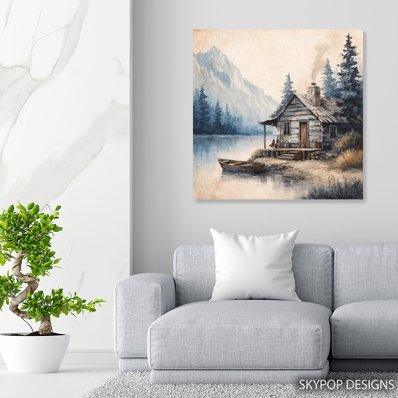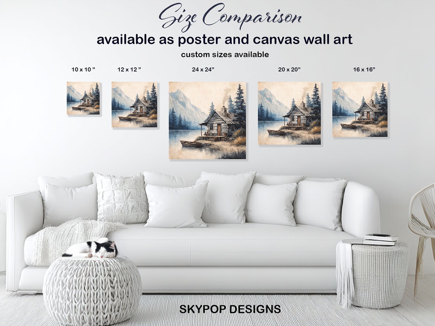 Capture the serene beauty of a lakeside retreat with this captivating cabin canvas wall art. This stunning poster or canvas wall art showcases a rustic wooden cabin nestled beside a tranquil lake, with majestic mountains in the background. The rich blues and earthy browns create a soothing ambiance, making it the perfect addition to any living room or bedroom seeking a touch of nature-inspired decor. Ideal for farmhouse and traditional settings, this landscape art elevates your home with its timeless appeal and sense of peace. The detailed watercolor style brings the scene to life, from the weathered wood of the cabin to the gentle ripples on the water, creating a striking visual narrative. This versatile canvas wall art is also an excellent choice for enhancing outdoor living spaces or as a welcoming focal point in your entryway. High-quality printing ensures the vibrant colors and subtle nuances of the artwork are faithfully reproduced, offering enduring visual pleasure. Whether you’re looking to create a cozy reading nook or simply bring the outdoors in, this artwork inspires relaxation and a connection to nature. It makes a thoughtful housewarming gift or a cherished present for anyone who appreciates the tranquility of cabin life. Transform your home into a peaceful sanctuary with this beautiful landscape canvas art that speaks to the soul. Embrace the charm of a rustic getaway and elevate your wall decor today.