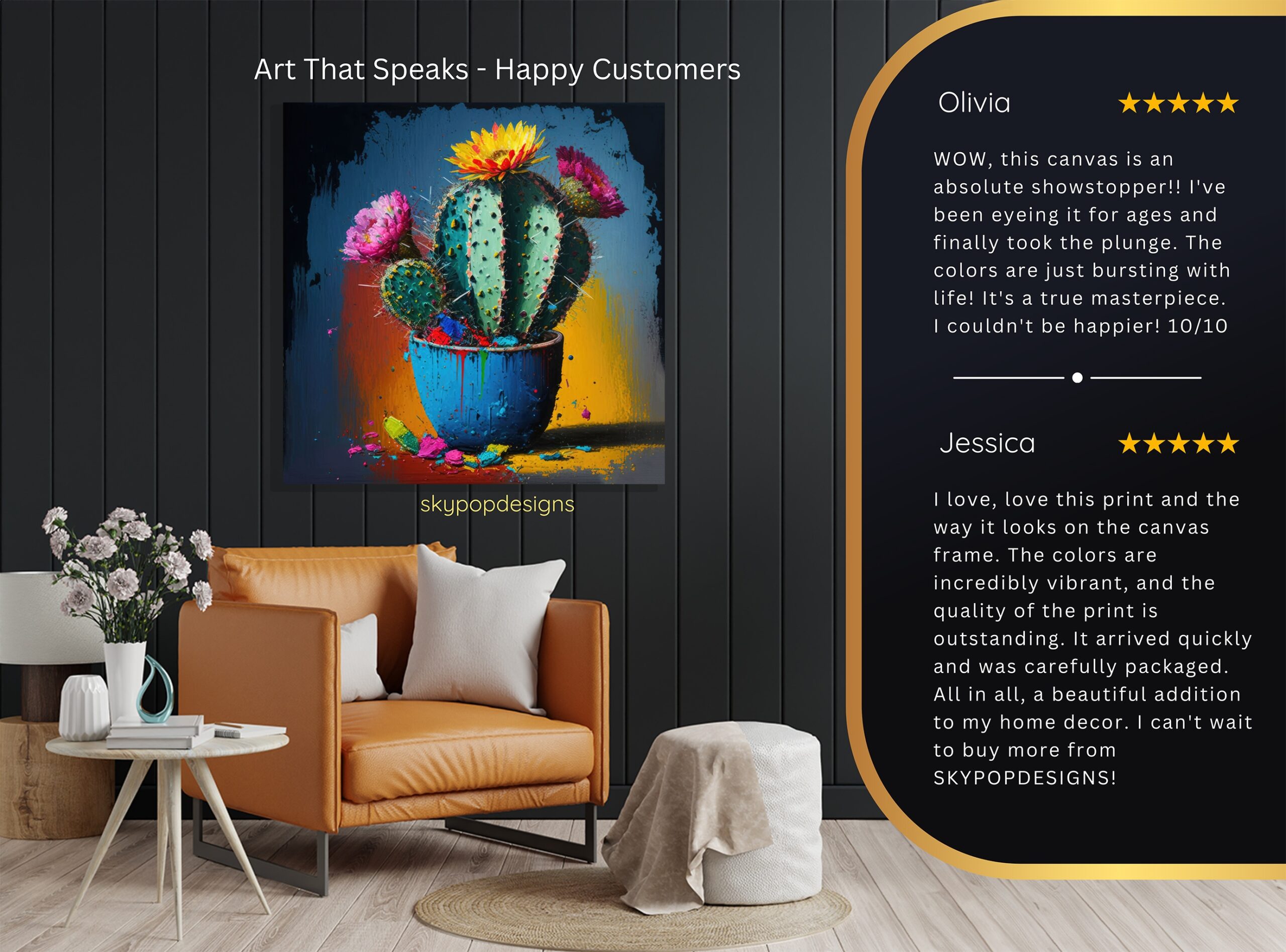 Keywords: Abstract Art, Cactus Art, Nature Art, Modern Decor, Contemporary Decor, Bohemian Decor, Living Room Art, Bedroom Art, Kitchen Art, Office Art, Multicolor Art, Teal Art, Yellow Art, Pink Art, Cactus Bloom, Splatter Art, Canvas Wall Art, Wall Art Poster, Vibrant Art, Joyful Art, Creative Art, Statement Piece, Home Decor, Unique Artwork, Artistic Flair, Housewarming Gift, Birthday Gift, Holiday Gift, Abstract Nature, Bold Design