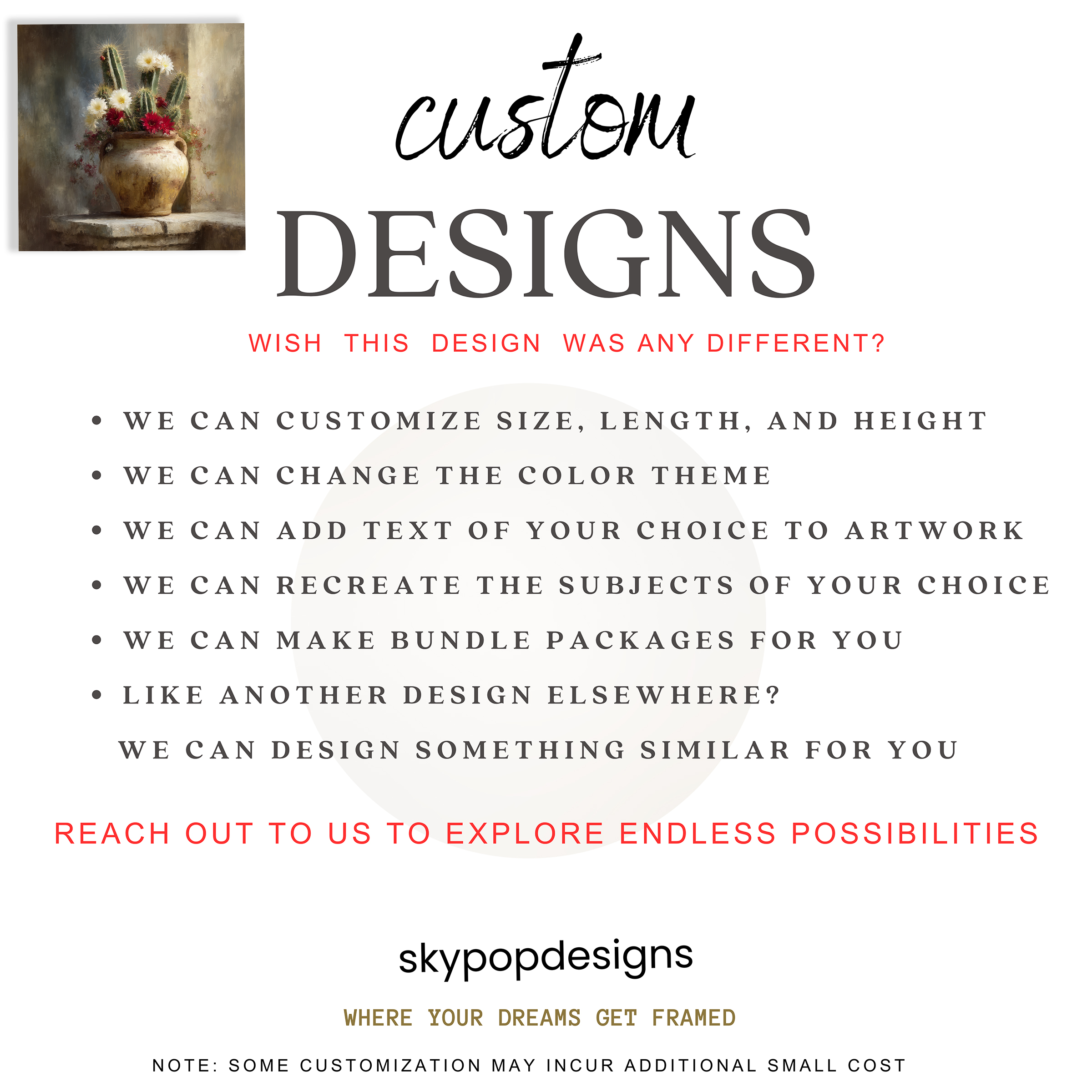 At SKYPOPDESIGNS, we specialize in high-quality canvas and poster prints designed to bring sophistication and style to your space. Please note that our designs are not created with 3D textures or as original oil, acrylic, or watercolor paintings; they are instead HD reproductions of original artwork. This approach allows us to offer these visually stunning pieces at competitive prices, ensuring you receive top-tier, maintenance-free art that’s easy to enjoy.