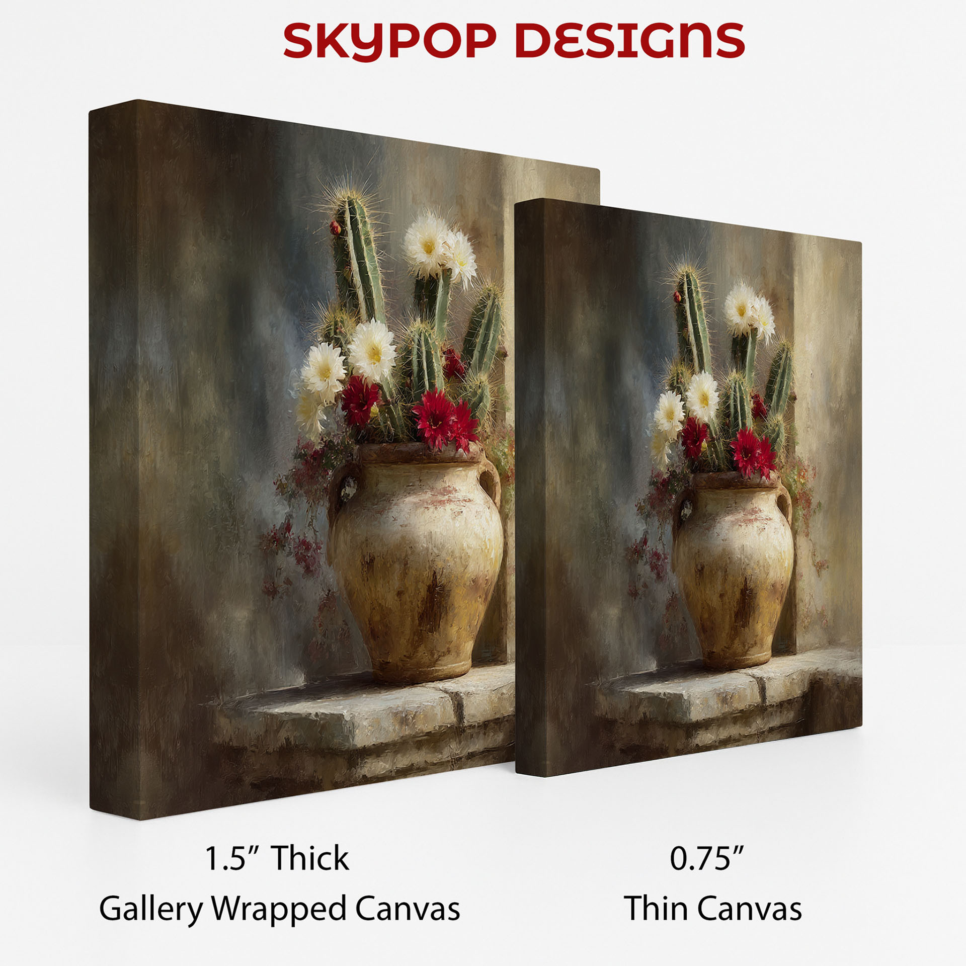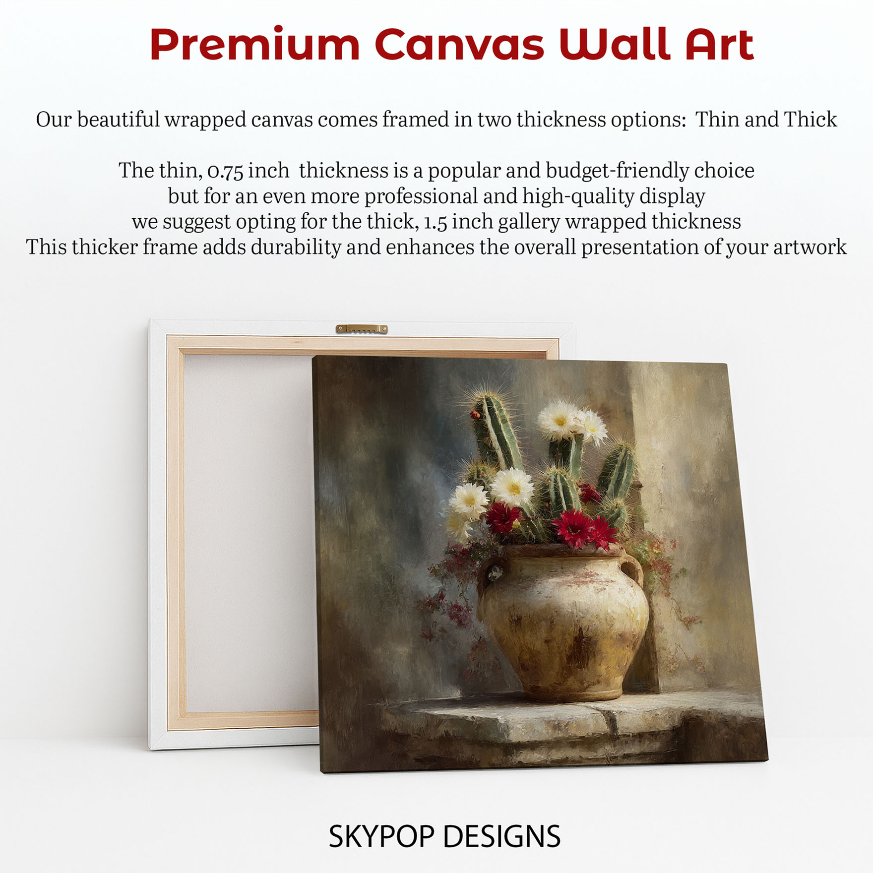 Elevate your home with this stunning cactus canvas wall art, a perfect representation of desert blooms in a classic vase.