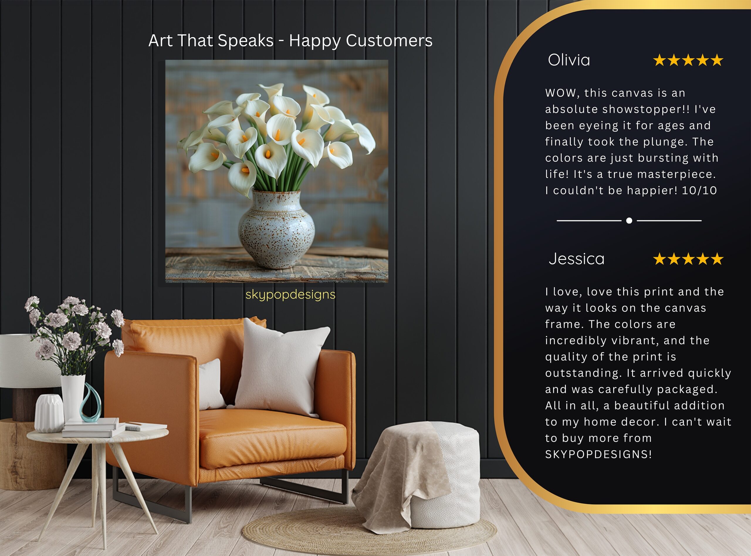 At SKYPOPDESIGNS, we specialize in high-quality canvas and poster prints designed to bring sophistication and style to your space. Please note that our designs are not created with 3D textures or as original oil, acrylic, or watercolor paintings; they are instead HD reproductions of original artwork. This approach allows us to offer these visually stunning pieces at competitive prices, ensuring you receive top-tier, maintenance-free art that’s easy to enjoy.