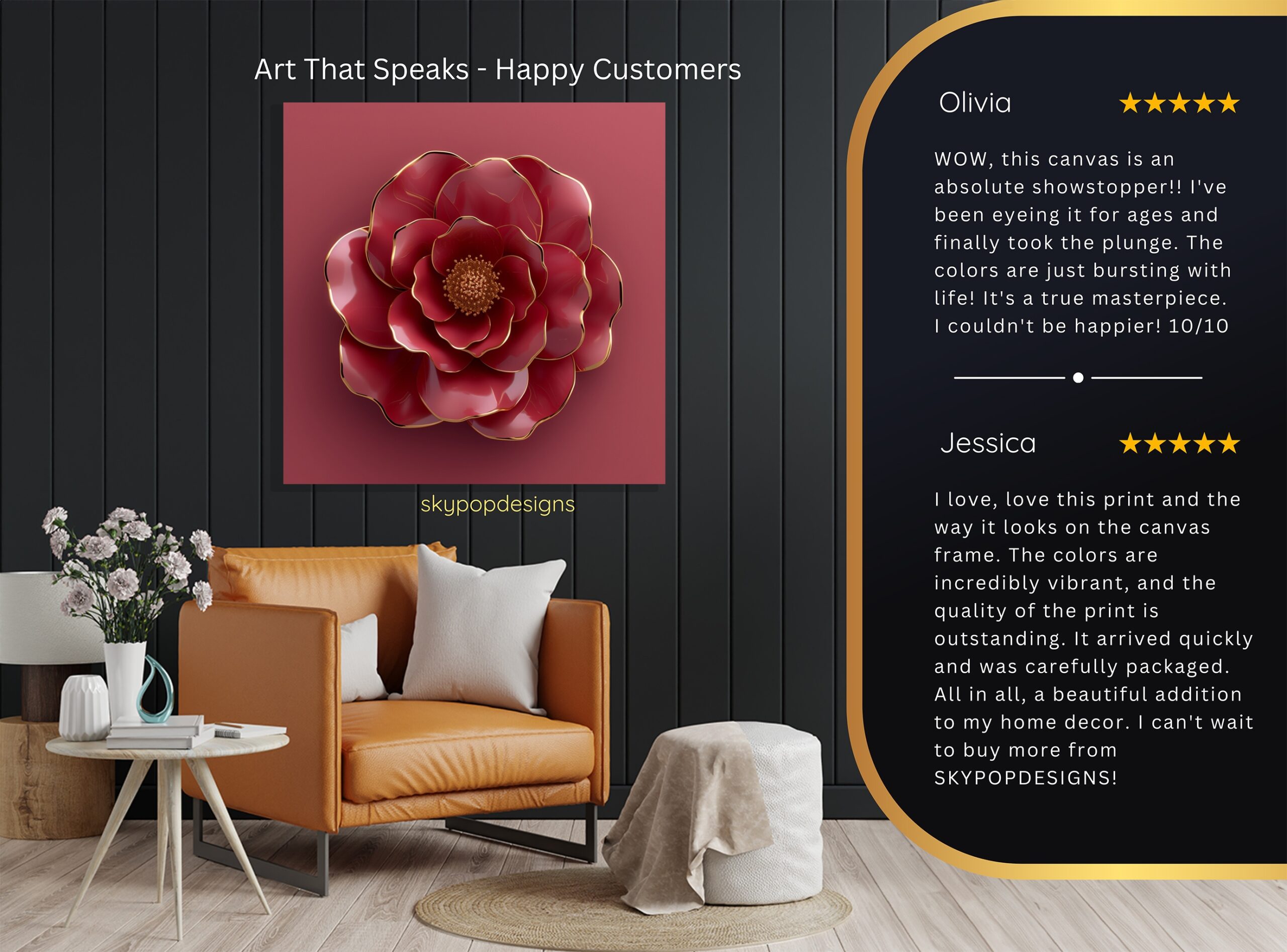 Transform your living space with this exquisite Camellia canvas wall art, a stunning piece that brings timeless elegance to any room. This poster or canvas wall art is perfect for enhancing modern living room wall decor or creating a sophisticated bedroom ambiance. The deep red and rich gold tones exude luxury and warmth, making this floral artwork a captivating focal point. Ideal for glam and traditional interiors, this camellia adds a touch of opulence to contemporary settings. The detailed rendering of the camellia flower, with its velvety petals and shimmering gold accents, showcases exceptional artistry. This wall art is perfect for dining rooms or hallways, creating an inviting and luxurious atmosphere for guests. High-quality printing ensures every nuance of color and texture is vividly captured, making this canvas wall art a masterpiece. It serves as a fantastic housewarming gift, birthday present, or holiday surprise for anyone who appreciates refined beauty. The striking combination of red and gold promotes feelings of passion and prosperity, elevating your home’s mood. Experience the art of floral decor with this captivating canvas print that blends classic styles with modern appeal. Make this luxurious Camellia flower artwork the centerpiece of your wall decor collection today and embrace its enduring charm.