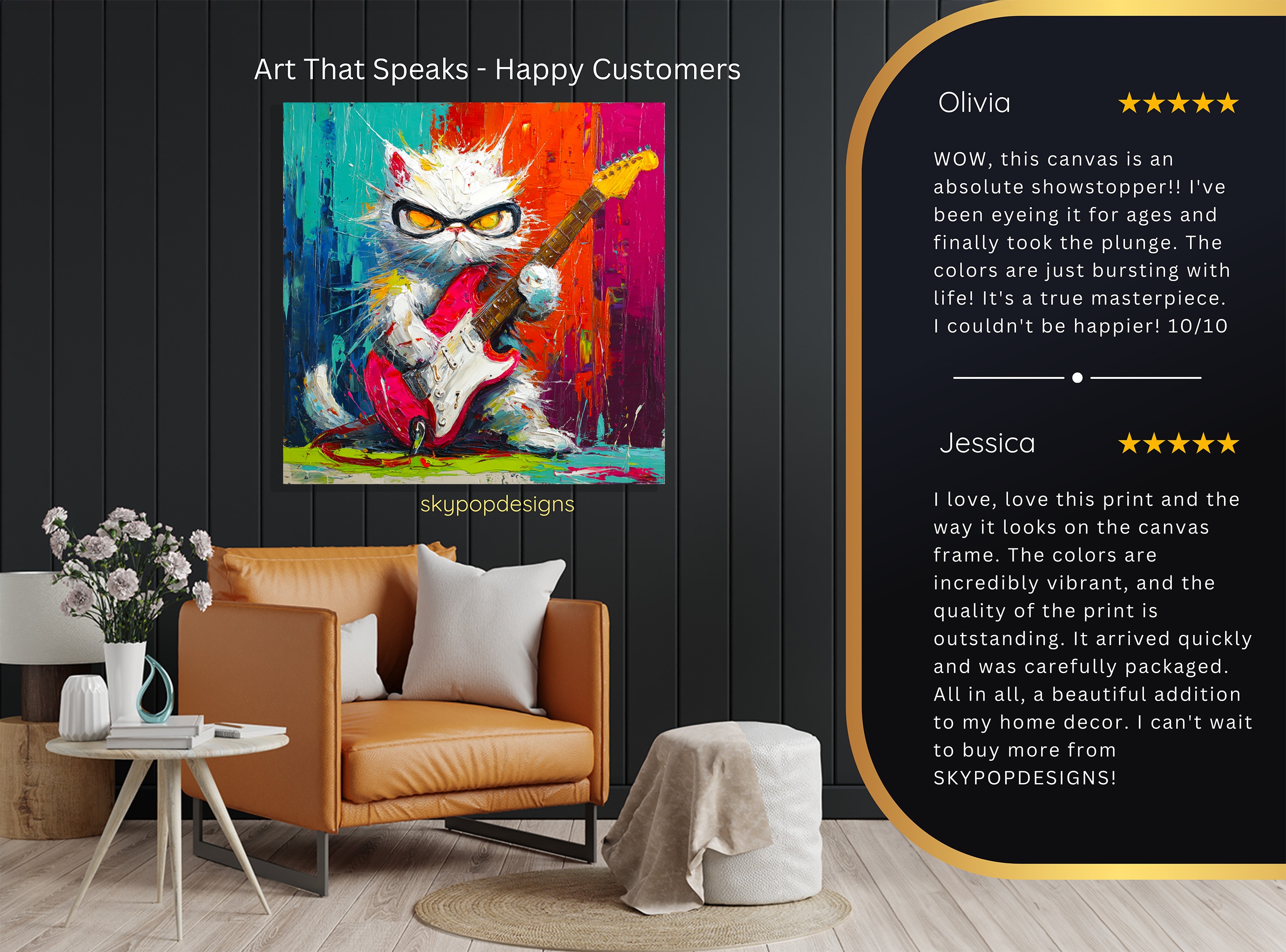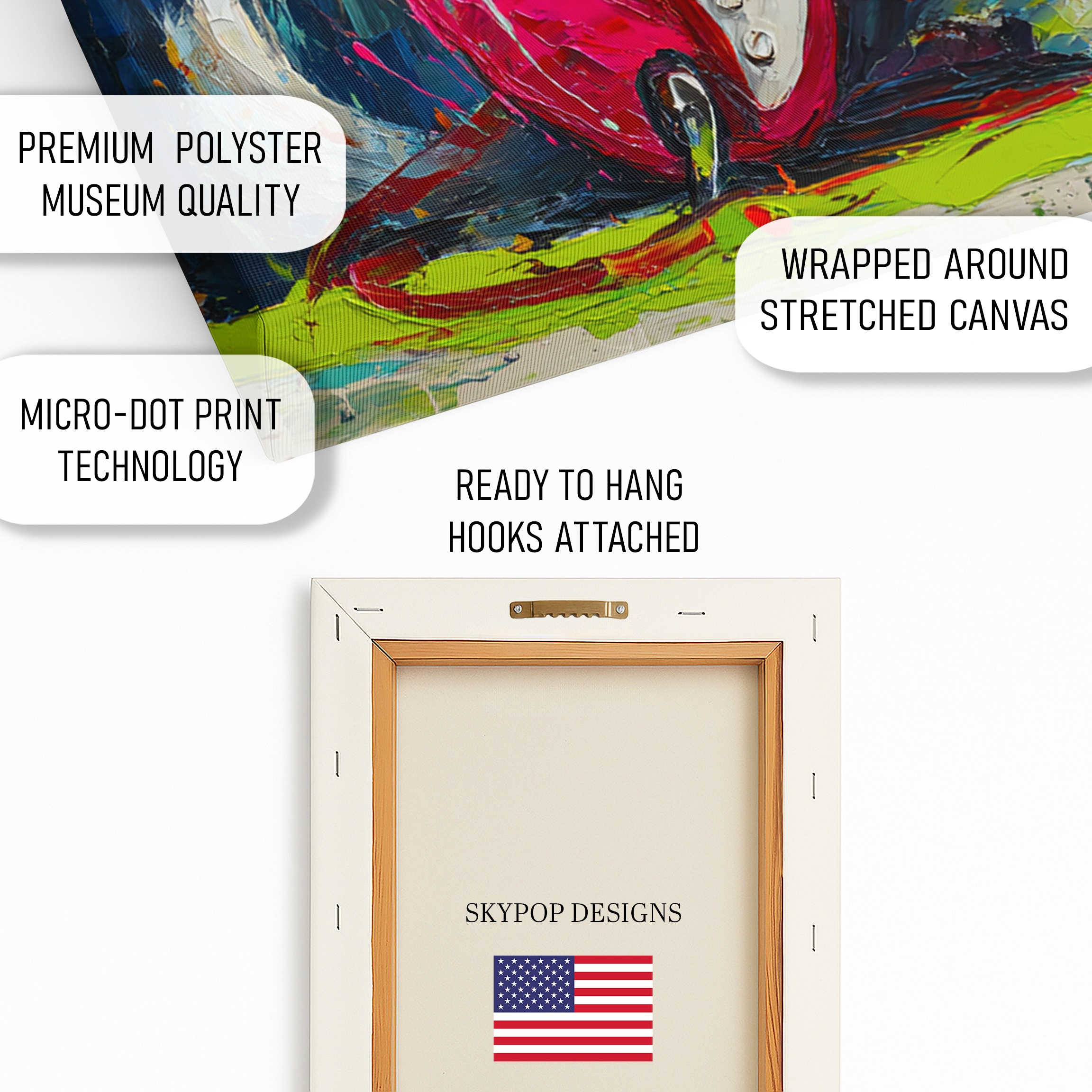 At SKYPOPDESIGNS, we specialize in high-quality canvas and poster prints designed to bring sophistication and style to your space. Please note that our designs are not created with 3D textures or as original oil, acrylic, or watercolor paintings; they are instead HD reproductions of original artwork. This approach allows us to offer these visually stunning pieces at competitive prices, ensuring you receive top-tier, maintenance-free art that’s easy to enjoy.