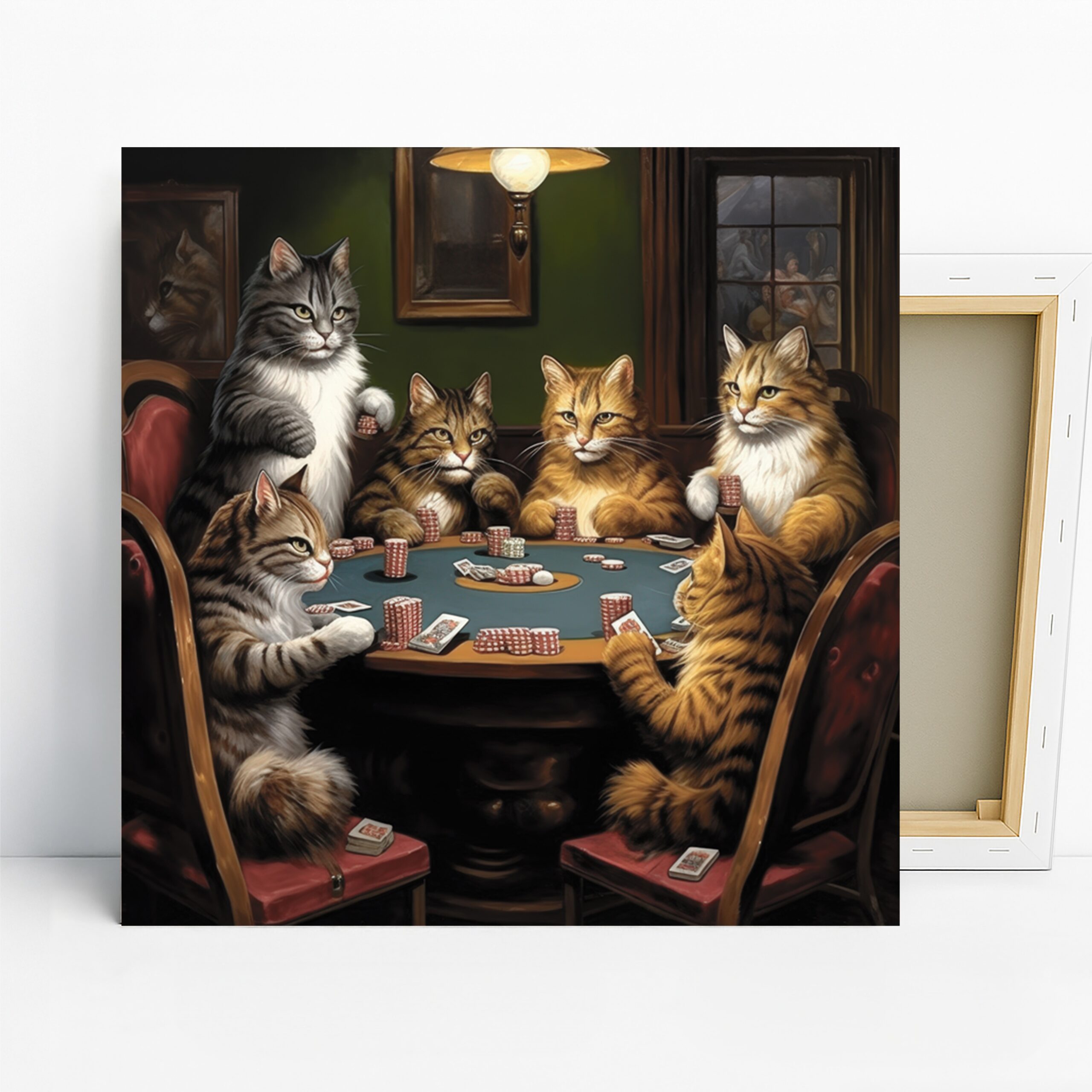 Keywords: Cats Playing Poker Canvas Art, Whimsical Animal Art, Pop Art Cat Poster, Contemporary Wall Art, Eclectic Decor Print, Modern Home Decor, Living Room Art, Game Room Poster, Office Wall Art, Entryway Decor, Brown Gold Green Art, Multicolor Animal Print, Unique Cat Artwork, Anthropomorphic Cats Art, Poker Night Canvas, Humorous Wall Decor, Conversation Starter Art, Playful Sophistication Art, Funny Cat Poster, Cat Lover Gift, Statement Wall Art, High-Quality Canvas Print, Vibrant Art Poster, Classic Art Rendering, Amusing Home Decor, Joyful Wall Art, Characterful Cat Print, Quirky Artwork, Fine Art Canvas, Themed Wall Decor