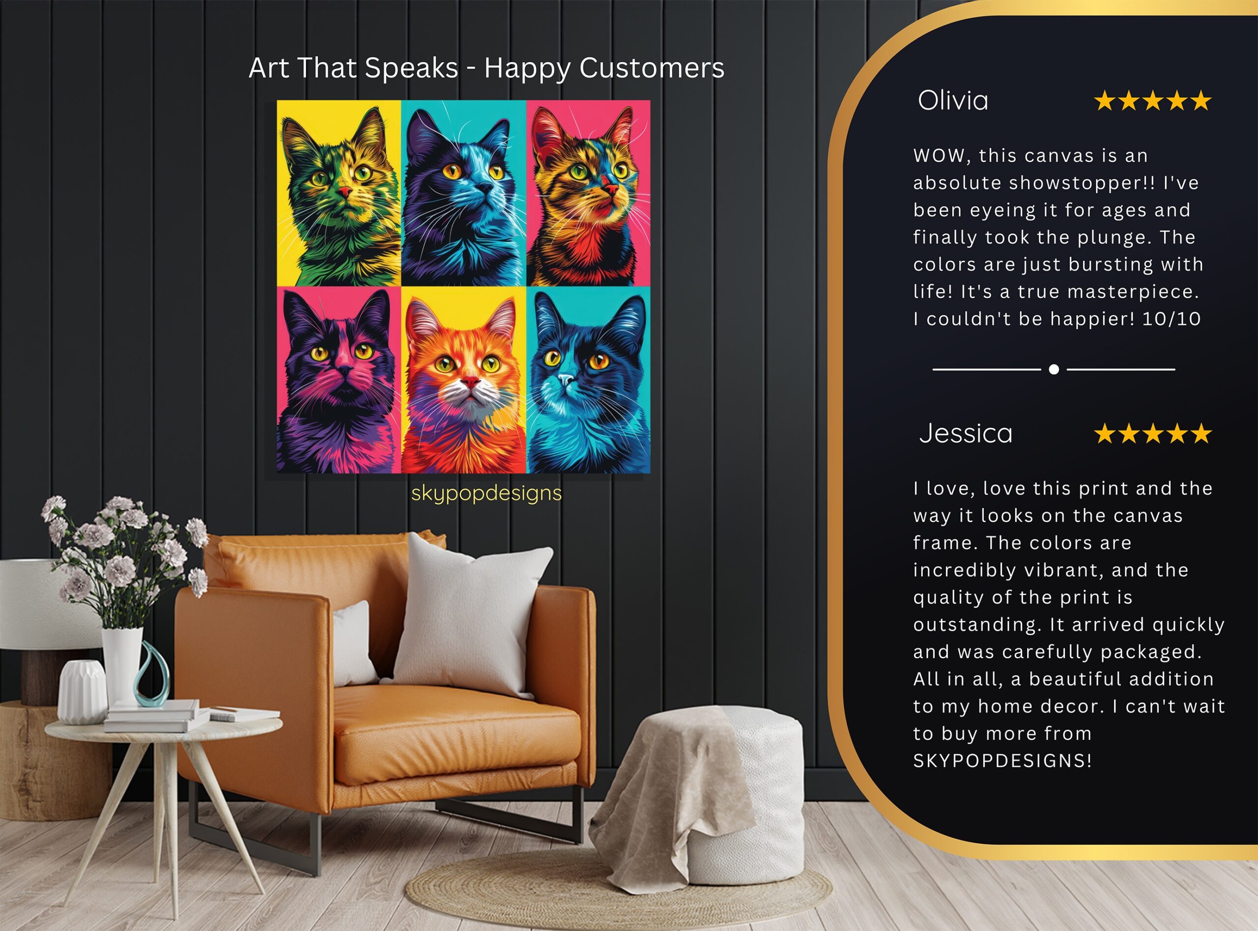 Keywords: Pop Art Cat Art, Contemporary Cat Art, Graffiti Cat Art, Modern Wall Art, Bohemian Decor, Living Room Art, Bedroom Decor, Entryway Art, Office Wall Art, Multicolor Cat Portrait, Yellow Cat Art, Teal Cat Art, Pink Cat Art, Cat Lover Gift, Animal Wall Art, Colorful Canvas Art, Vibrant Home Decor, Pop Art Decor, Contemporary Art Print, Modern Cat Portrait, Bohemian Cat Decor, Unique Wall Decor, Cat Enthusiast Gift, Birthday Gift Idea, Housewarming Gift, Joyful Home Decor, Artistic Cat Prints, Statement Wall Art, Abstract Cat Art, Pet Portrait Wall Art