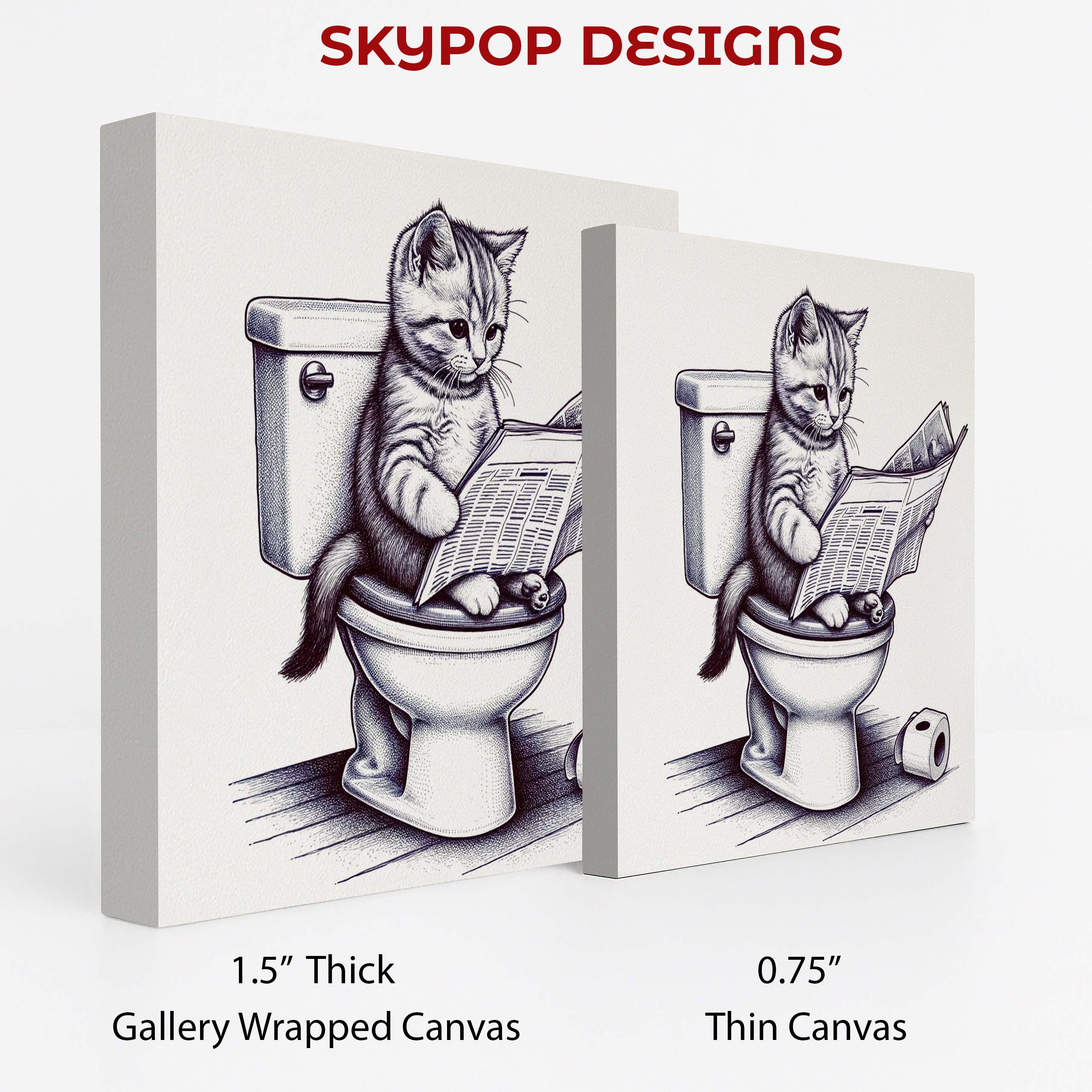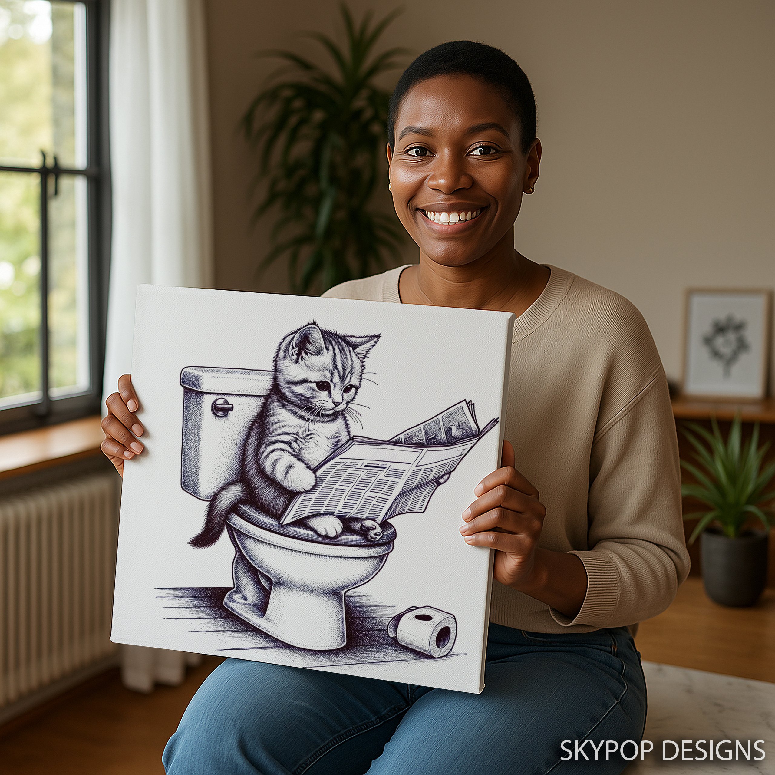Add a touch of humor to your space with this hilarious cat toilet newspaper canvas wall art. This striking piece captures a mischievous kitten perched on a toilet, engrossed in reading a newspaper. Perfect for modern bathrooms or quirky home offices, this poster brings instant personality and a lighthearted vibe to any room. The black and white sketch-style artwork offers a clean, contemporary look that complements minimalist and Scandinavian decor styles. Ideal for cat lovers and those with a sense of humor, this canvas print makes a great conversation starter and adds a playful element to your wall decor. The detailed linework showcases the cat’s expressive face and fluffy fur, creating a captivating focal point. This versatile piece works well in laundry rooms, bedrooms, or even as a fun addition to a reading nook. The monochromatic color scheme ensures it fits seamlessly with various color palettes and interior designs. Whether you’re looking for a unique housewarming gift or want to inject some fun into your own space, this cat toilet art is sure to bring smiles. High-quality printing preserves every intricate detail, from the newspaper’s text to the toilet’s texture. Transform your walls with this whimsical blend of animal art and everyday humor. Elevate your home’s character with this playful and eye-catching cat canvas wall art today.