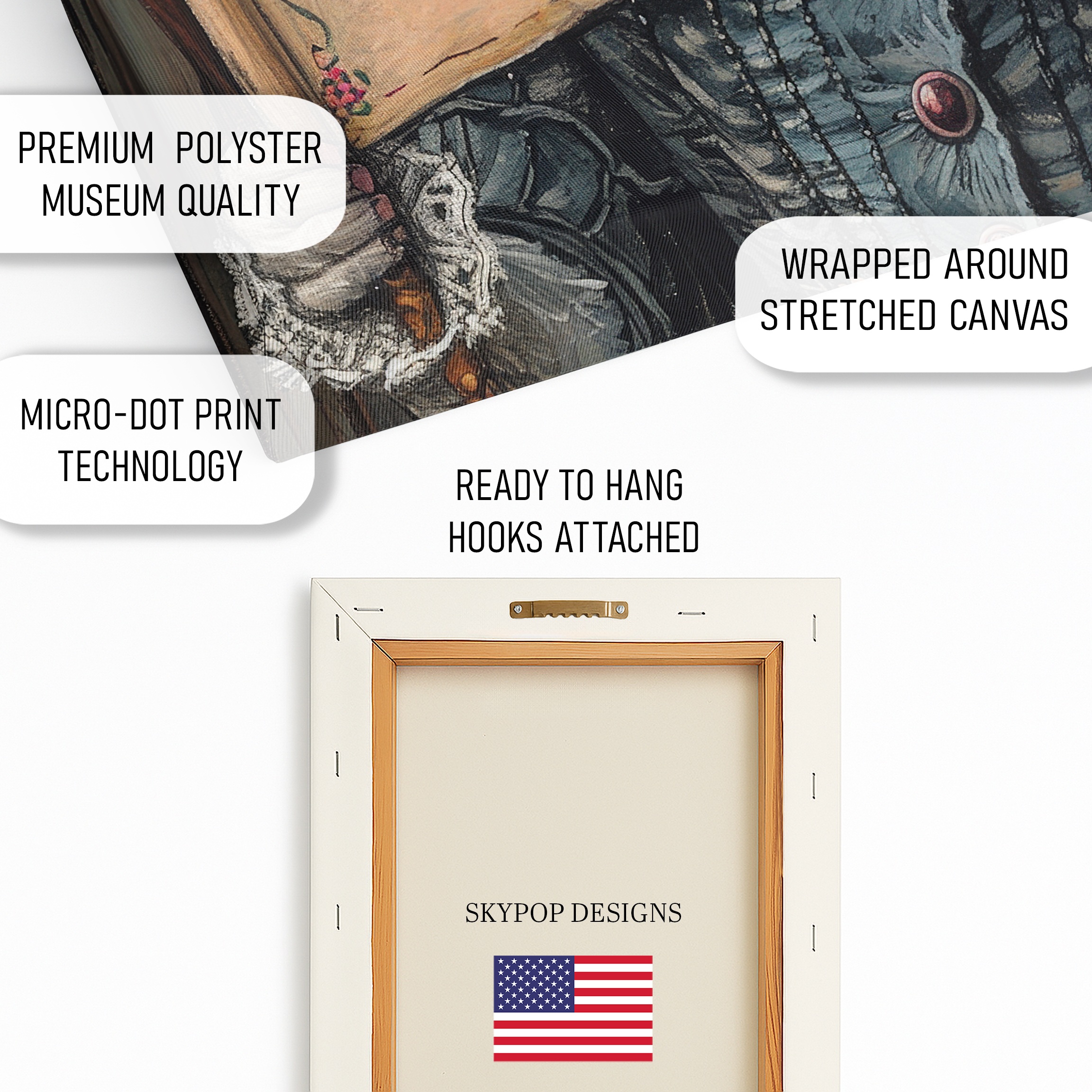 Keywords: Cat Art, Animal Wall Art, Whimsical Art, Vintage Art, Funny Cat Poster, Cat Canvas Print, Bohemian Decor, Traditional Decor, Victorian Decor, Living Room Art, Bedroom Art, Office Decor, Library Art, Brown Art, Multicolor Art, Maroon Art, Black and White Art, Cat Lover Gift, Birthday Gift, Housewarming Gift, Unique Wall Art, Eclectic Decor, Witticisms, Humorous Art, Dignified Cat Art, Period Clothing Art, Floral Accents, Canvas Wall Art, Home Decor, Artistic Wall Decor