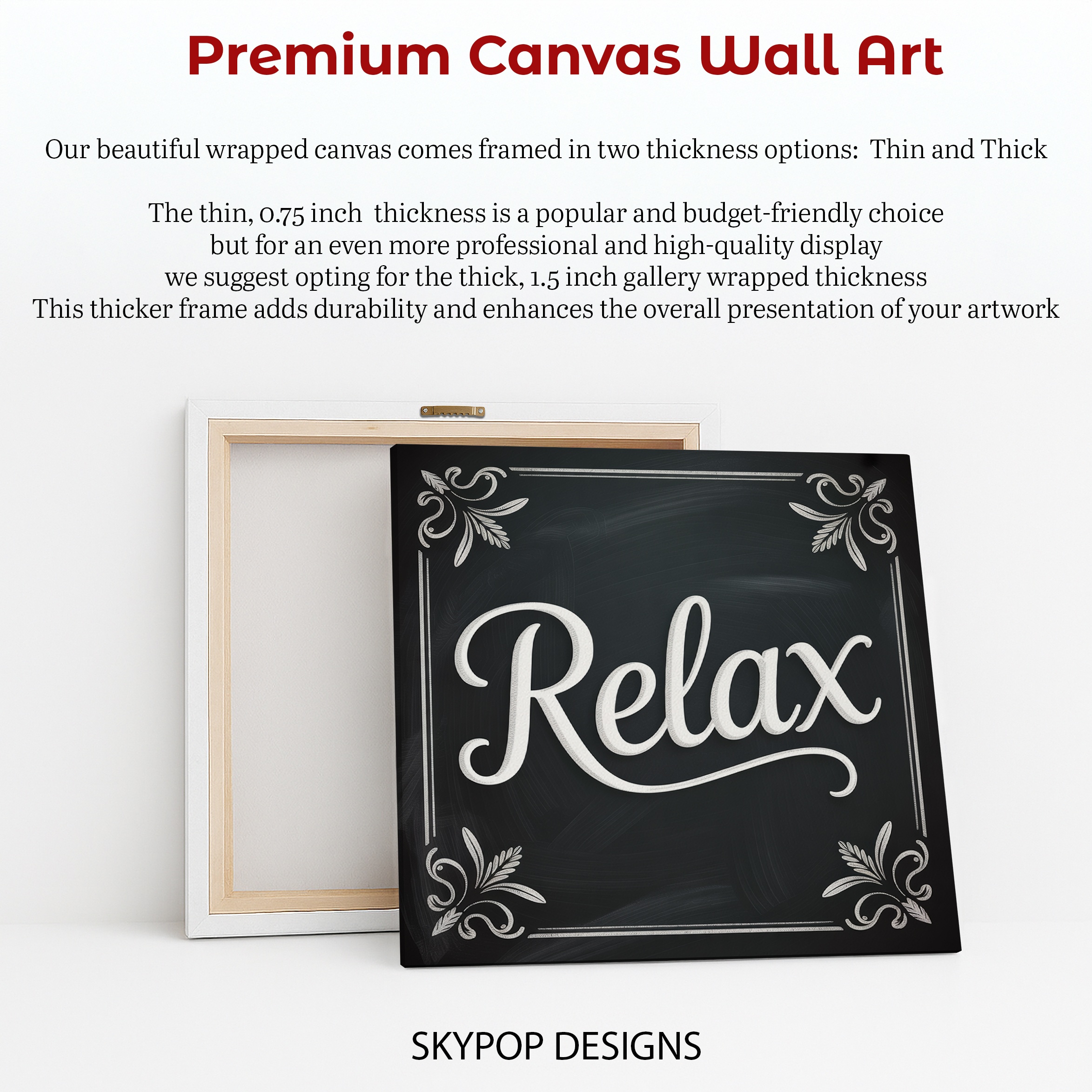 Transform your space with this charming “Relax” canvas wall art, featuring a vintage chalkboard design that instantly adds character to any room. The elegant cursive typography stands out beautifully against the deep charcoal background, creating a striking visual impact. Perfect for rustic farmhouse kitchens or shabby chic living rooms, this poster brings a touch of nostalgia and warmth to your decor. The intricate floral embellishments in each corner add a whimsical flair, softening the overall look and making it versatile enough for bedrooms or dining areas. Ideal for those seeking to create a calming atmosphere, this artwork serves as a gentle reminder to unwind and enjoy life’s simple pleasures. The neutral black and white palette ensures it complements a wide range of color schemes, making it easy to incorporate into existing decor. Whether you’re looking to enhance a cozy reading nook or create a serene focal point in your home office, this canvas art delivers both style and sentiment. Gift it to a friend who needs a little encouragement to slow down, or treat yourself to a daily dose of relaxation. With its timeless appeal and high-quality printing, this “Relax” wall art is sure to become a cherished piece in your home for years to come. Elevate your space today with this captivating blend of vintage charm and modern mindfulness.
