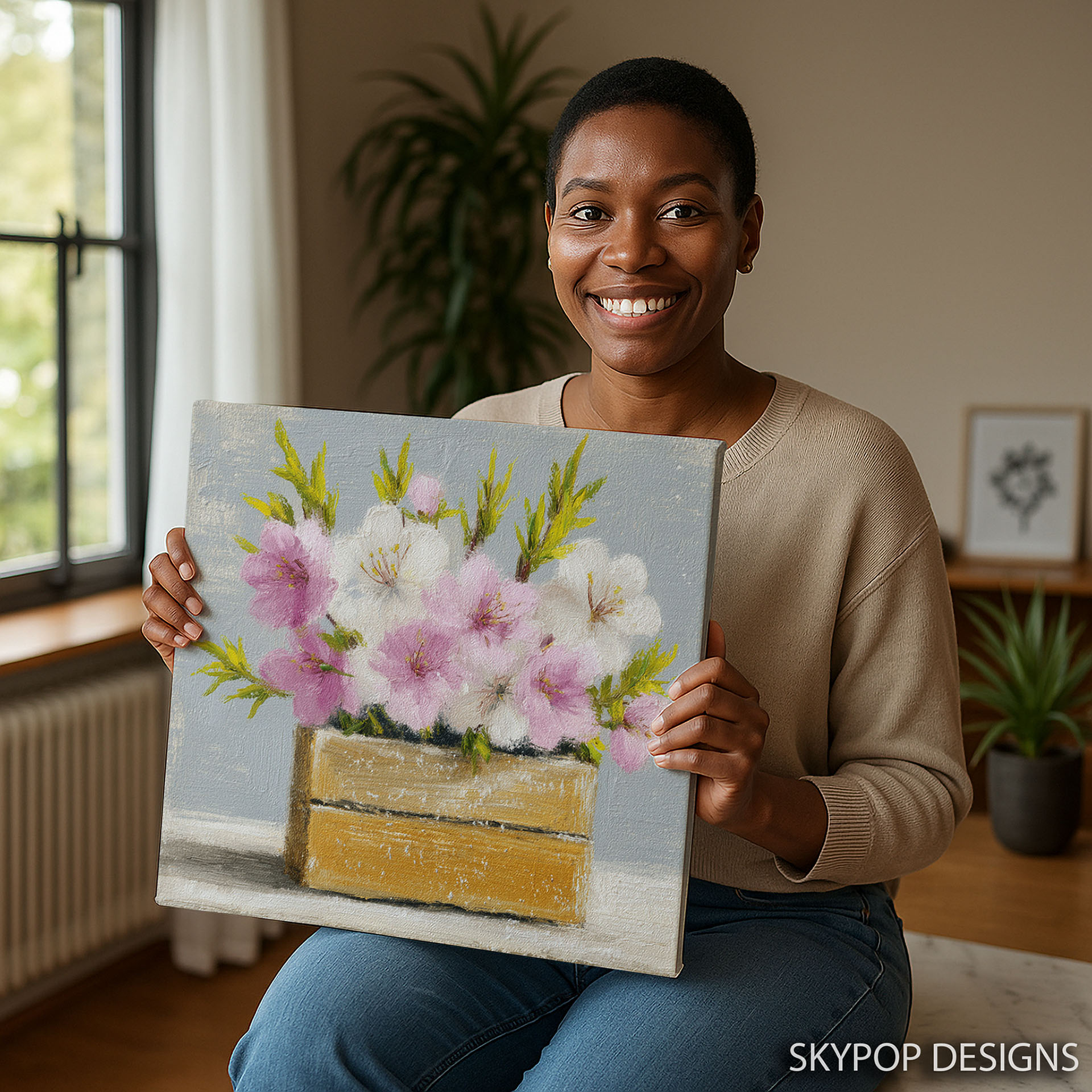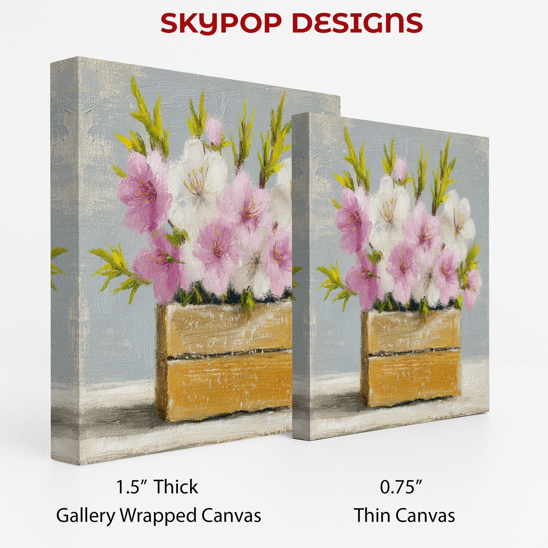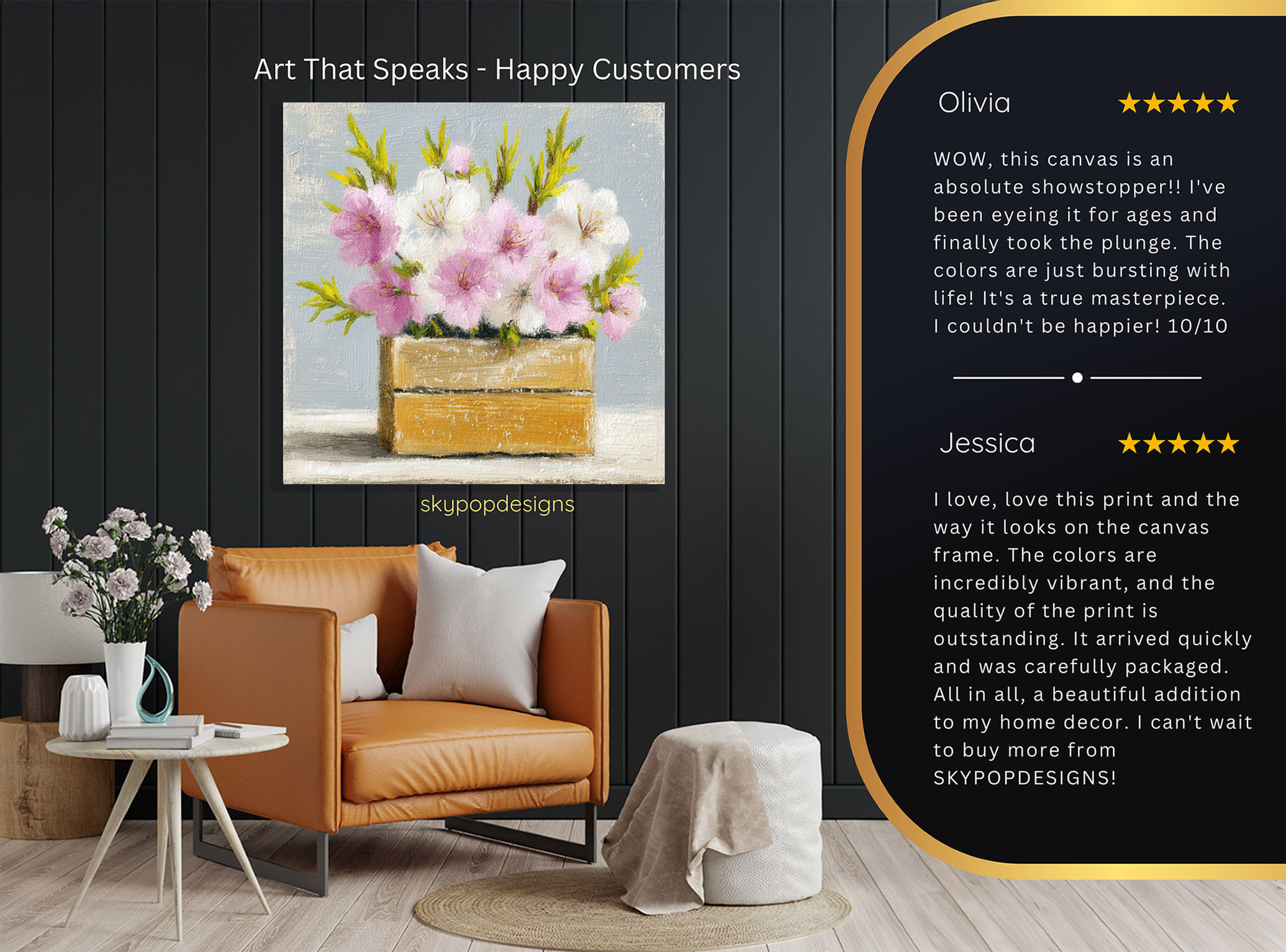 Transform your space with this delightful Cherry Blossom Crate canvas wall art, capturing the soft beauty of blooming flowers in an impressionistic style. This poster or canvas wall art is perfect for creating a fresh and inviting atmosphere in your living room decor, adding a touch of nature to your bedroom, or enhancing your dining room ambiance. The delicate pink and white blossoms, accented by vibrant green leaves, bring a sense of renewal and tranquility. Its rustic wooden crate adds a charming farmhouse or shabby chic touch, making it ideal for bohemian interiors as well. The impressionist brushstrokes lend a soft, dreamy quality to this floral artwork, creating a captivating visual that will be a focal point in any room. High-quality printing ensures the texture and depth of the paint are beautifully preserved on this canvas wall art. This striking piece is perfect for an entryway, welcoming guests with its natural beauty and serene color palette. Celebrate the changing seasons or gift a piece of lasting springtime joy with this versatile wall art, suitable for housewarmings, birthdays, or holidays. The blend of soft pastels and earthy wood tones makes this cherry blossom artwork easy to integrate into a variety of decor styles. Elevate your home with this stunning piece of floral wall art that embodies the simple elegance of nature. Add a touch of Spring to your home today with Cherry Blossom Crate Art.