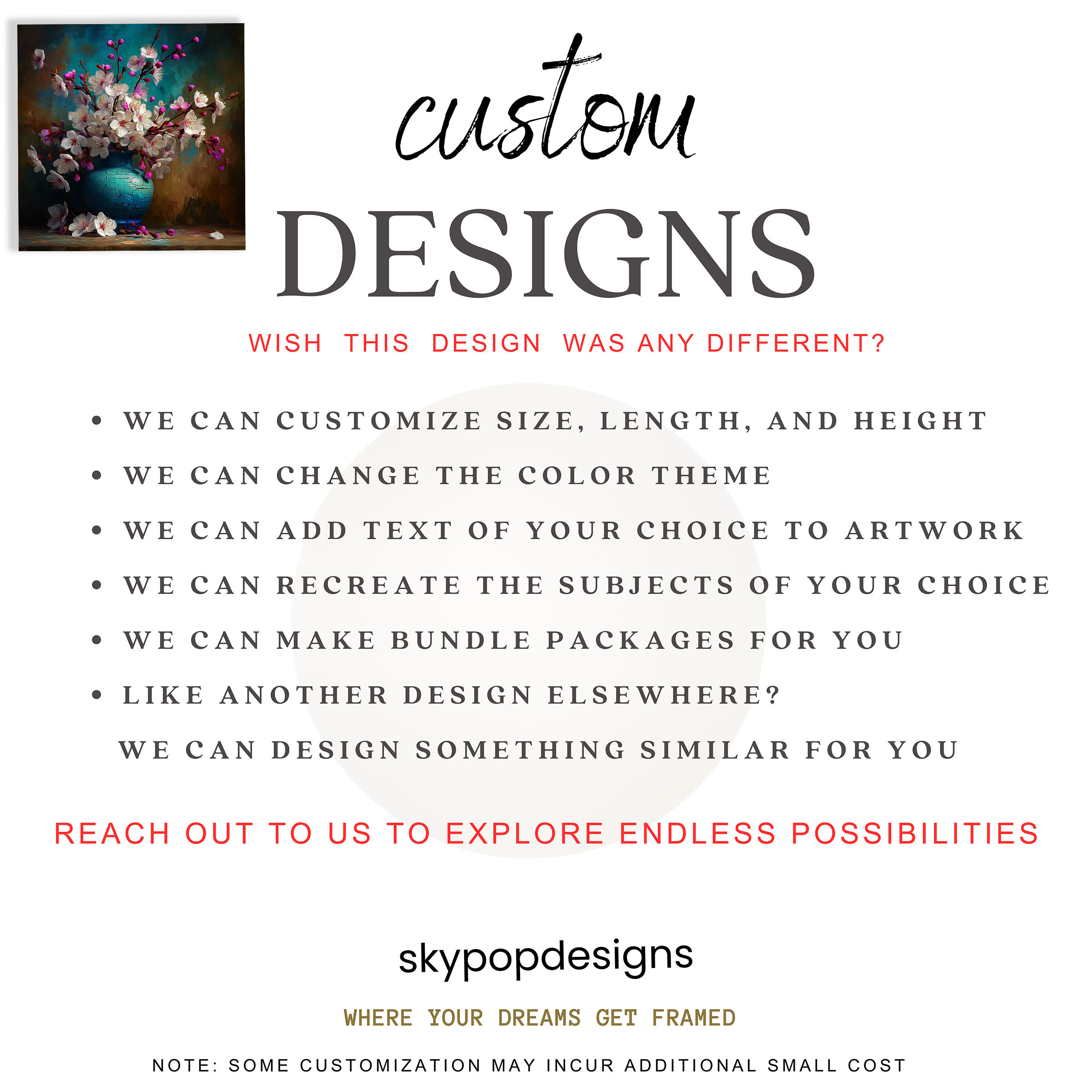 At SKYPOPDESIGNS, we specialize in high-quality canvas and poster prints designed to bring sophistication and style to your space. Please note that our designs are not created with 3D textures or as original oil, acrylic, or watercolor paintings; they are instead HD reproductions of original artwork. This approach allows us to offer these visually stunning pieces at competitive prices, ensuring you receive top-tier, maintenance-free art that’s easy to enjoy.