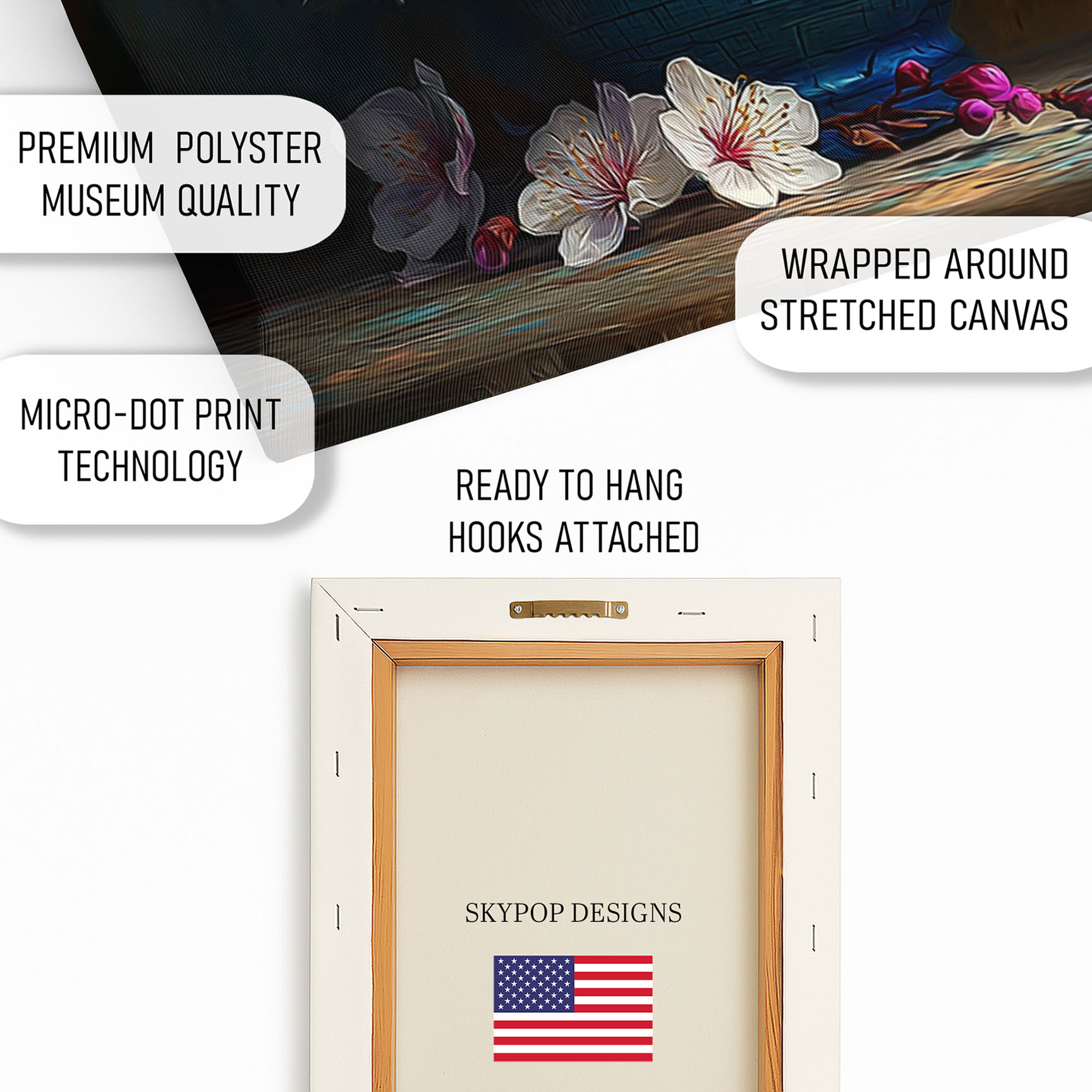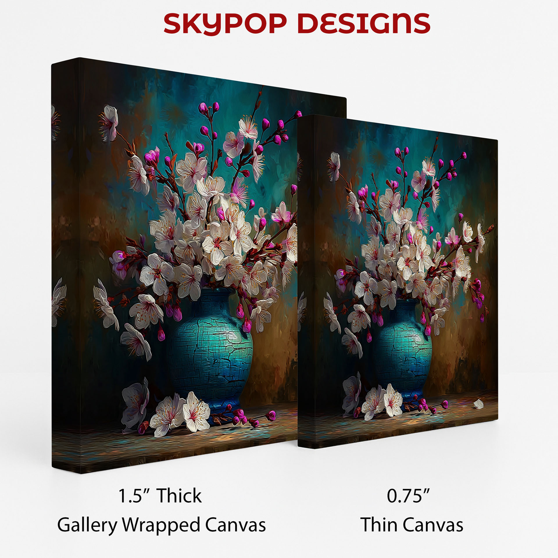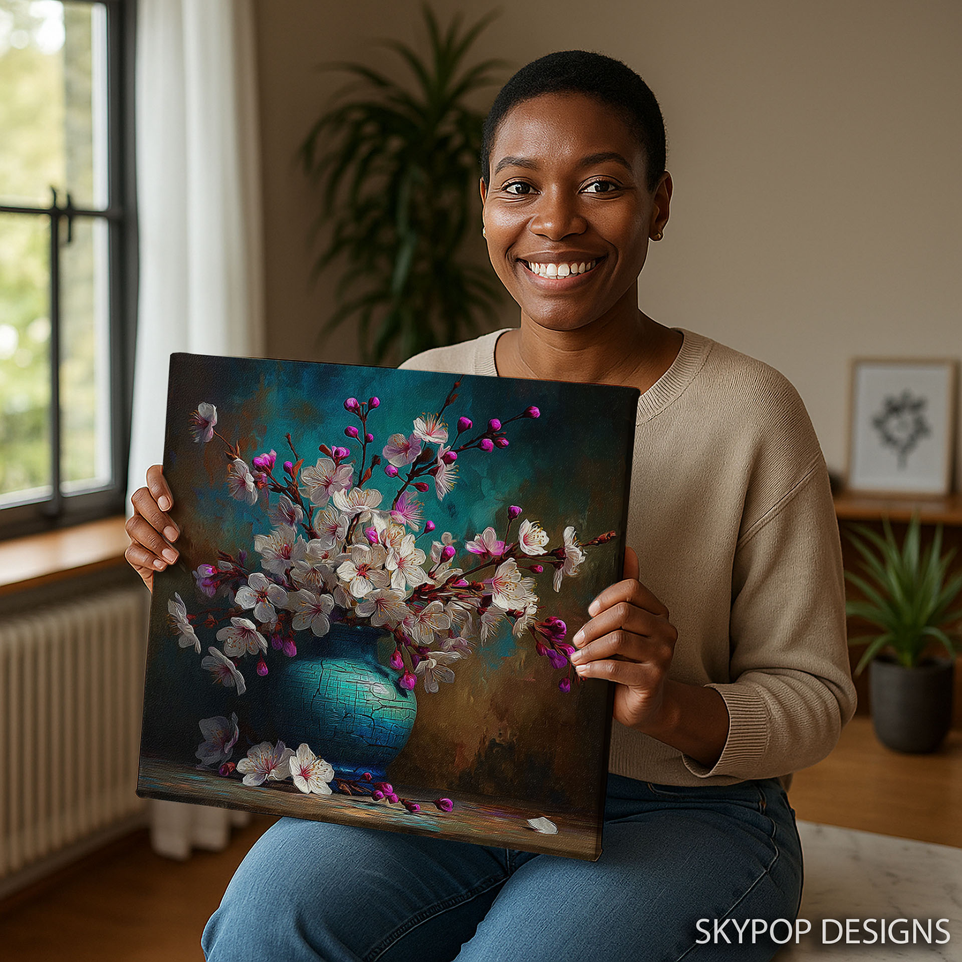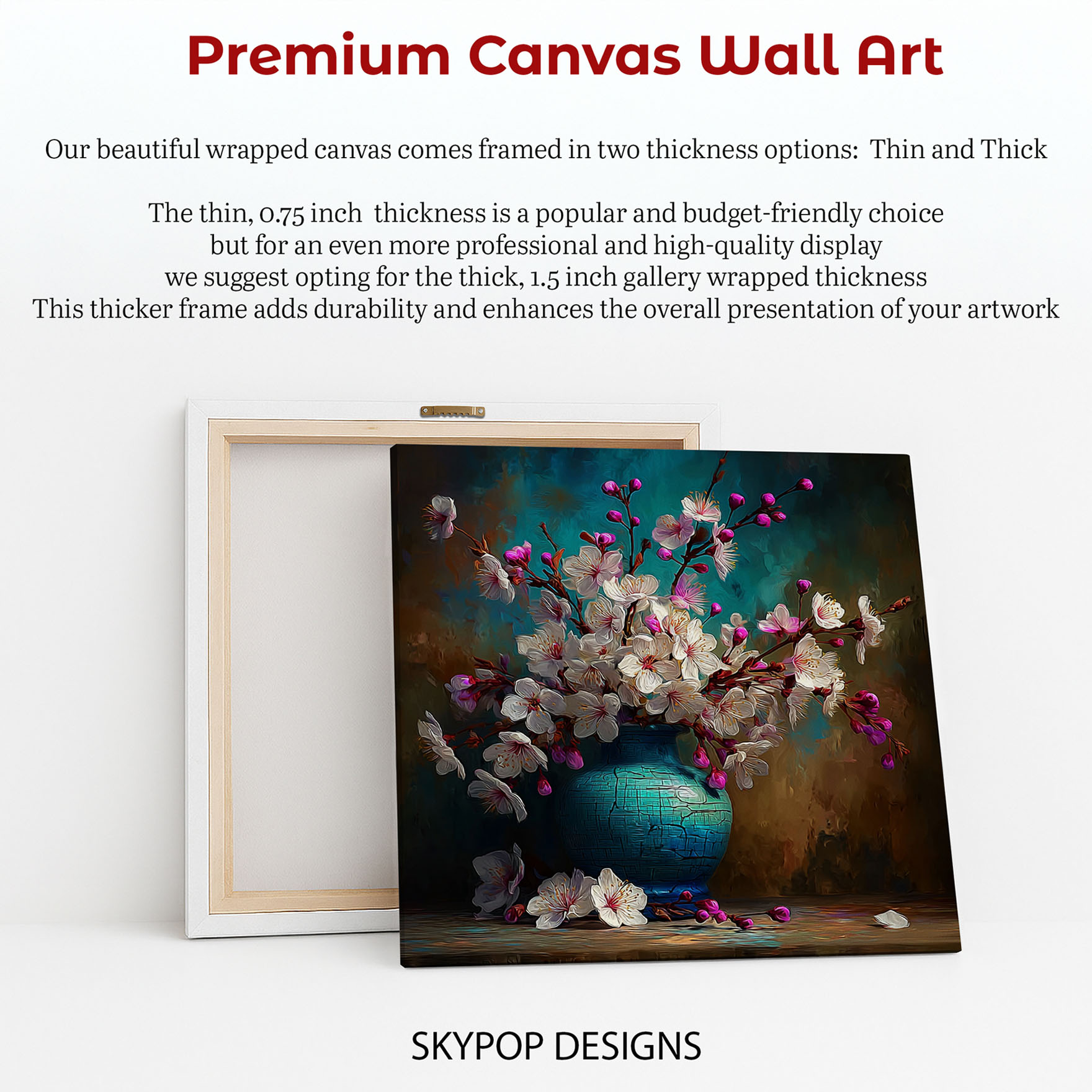 Elevate your home with this stunning Cherry Blossom canvas wall art, a vibrant still life that captures the ephemeral beauty of blooming branches.